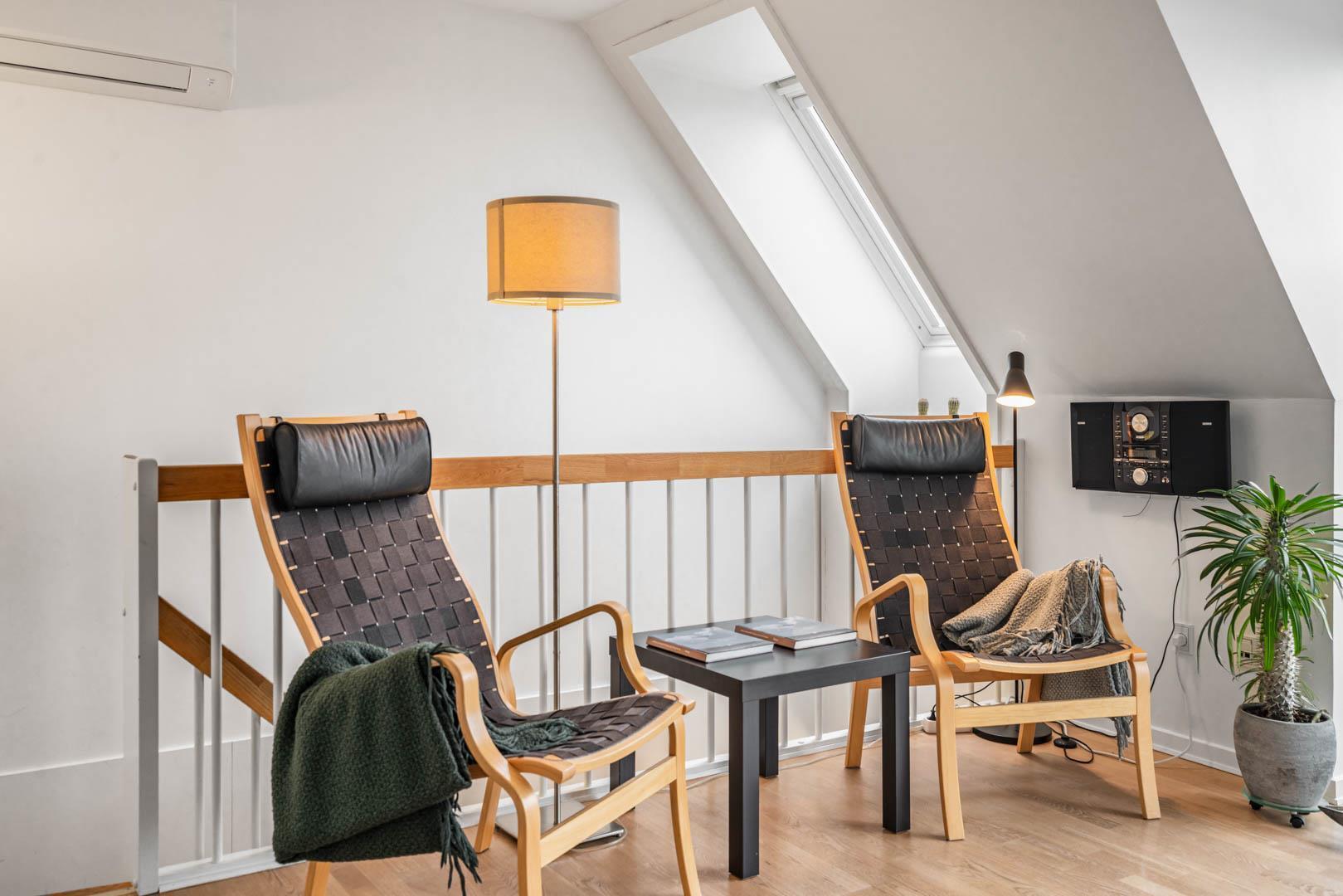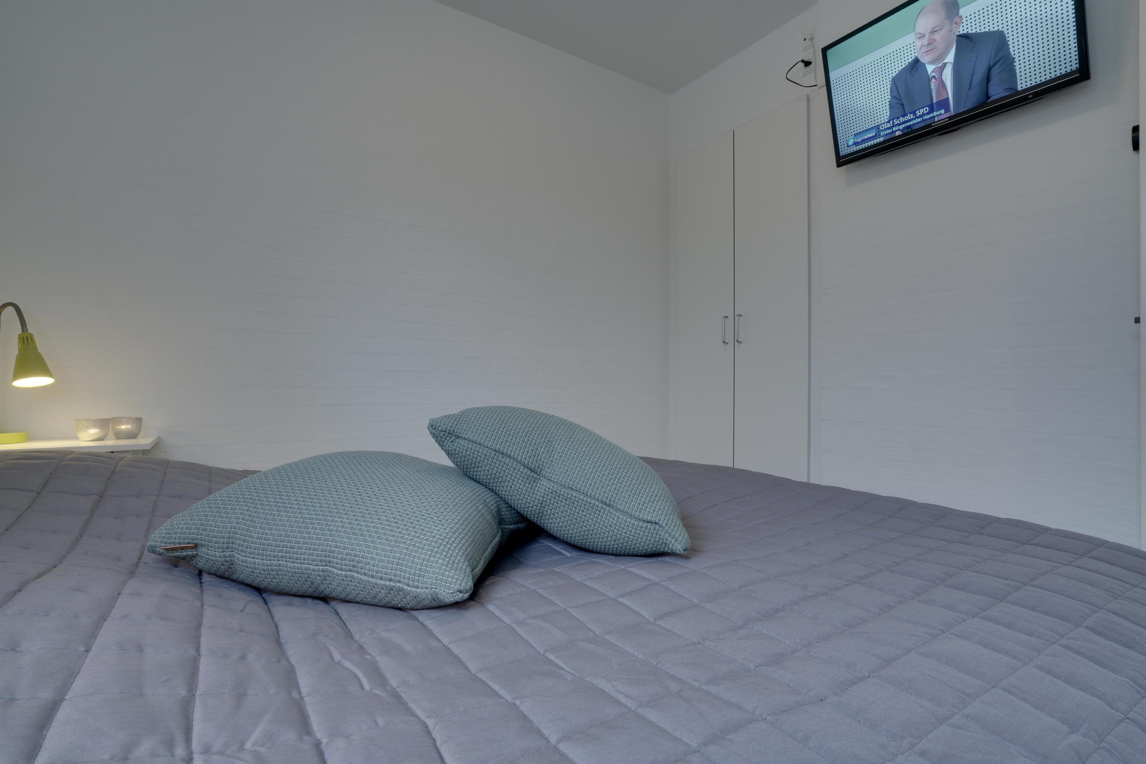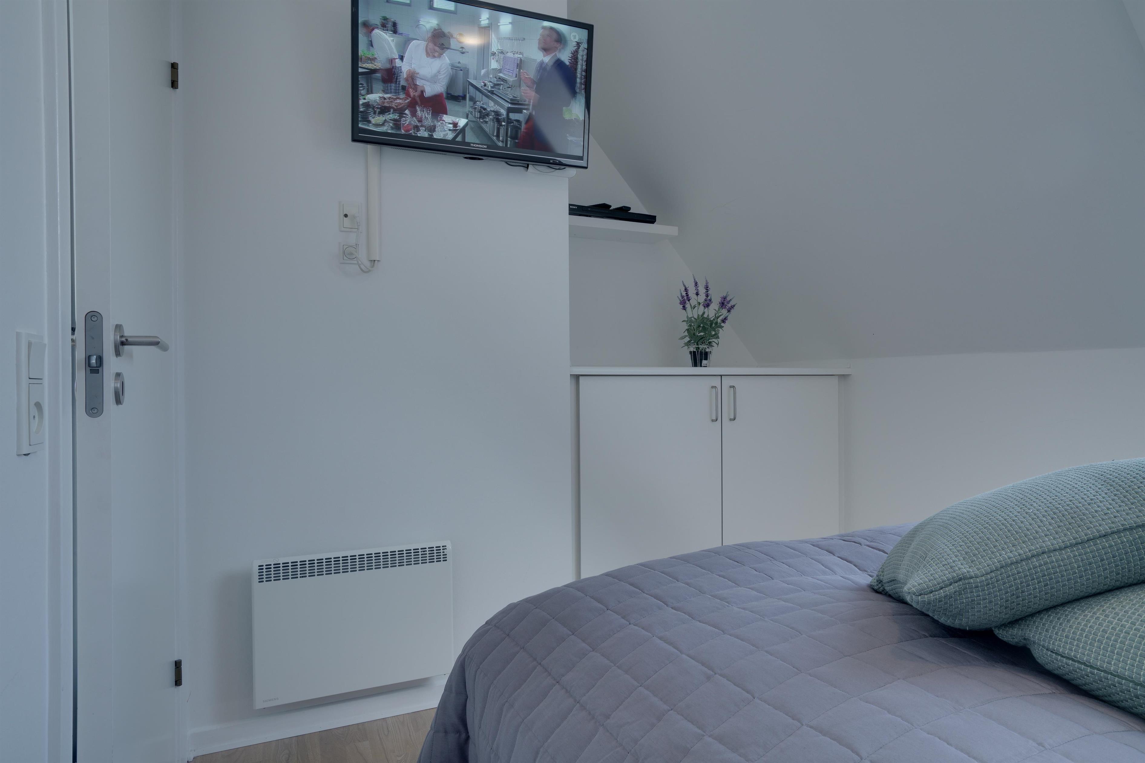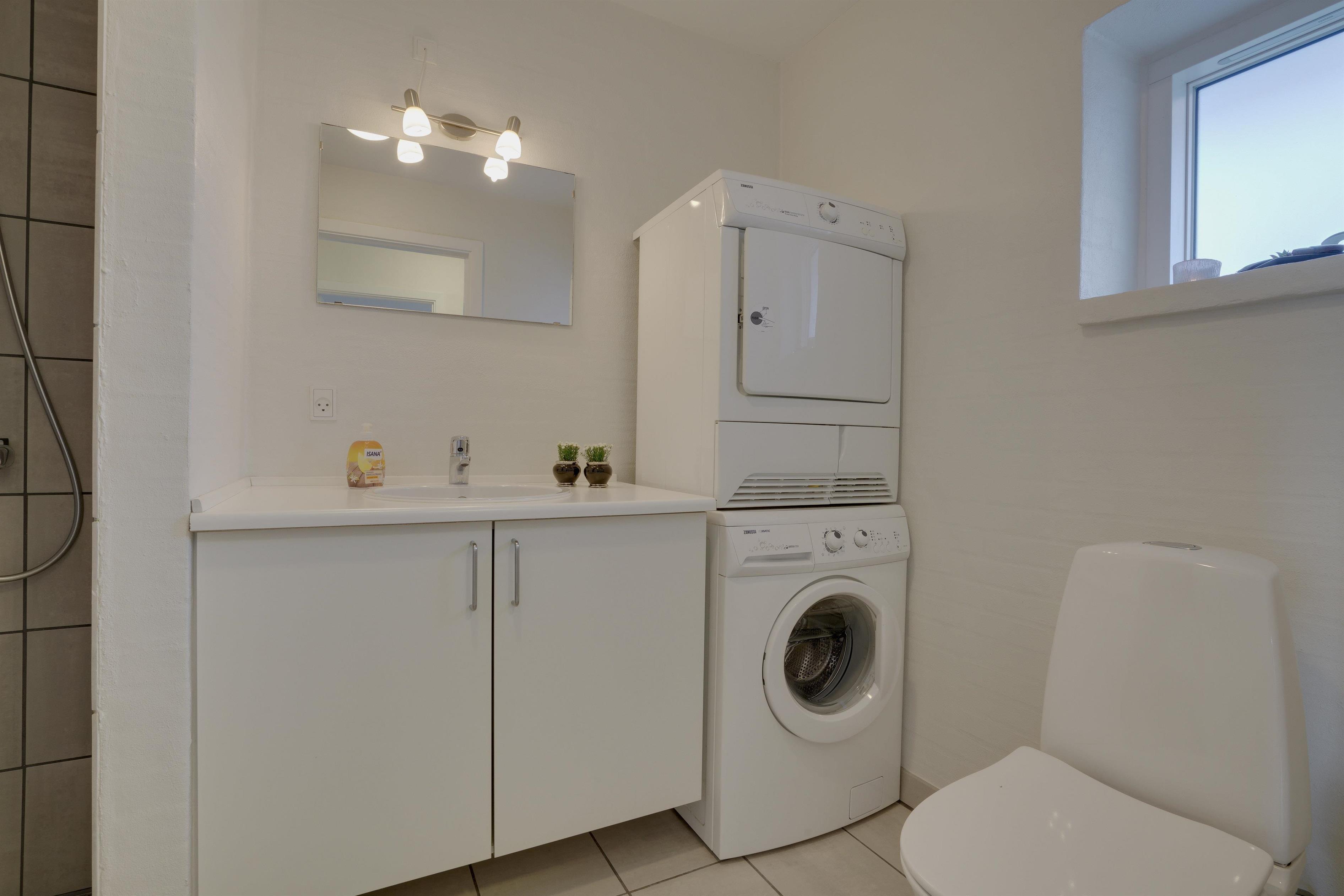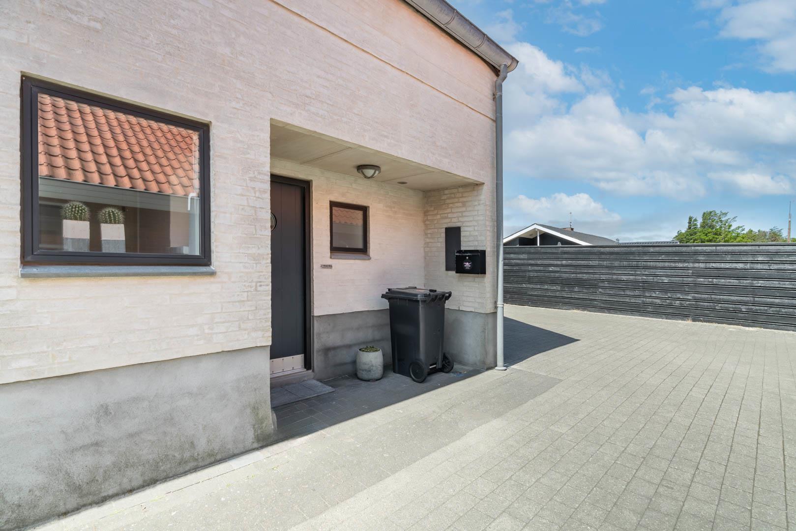 Die mit hoher Qualität gebaute Wohnung befindet sich im Herzen von Henne Strand. Die Wohnung ist überall hell und freundlich und auf einem hohen Qualitätsniveau. Die Wohnung besteht aus 2 Ebenen. In der ersten Ebene ist der Eingang, Schlafzimmer, Wohnzimmer, Bad und eine geschützte Terrasse gegen Westen gerichtet. In der zweiten Ebene befinden sich 2 Schlafzimmer, Wohnzimmer und Balkon. In allen Zimmern sind Flachbildschirme vorhanden. Mit Warmepumpe. Abstellraum für Fahrräder beim Carport.