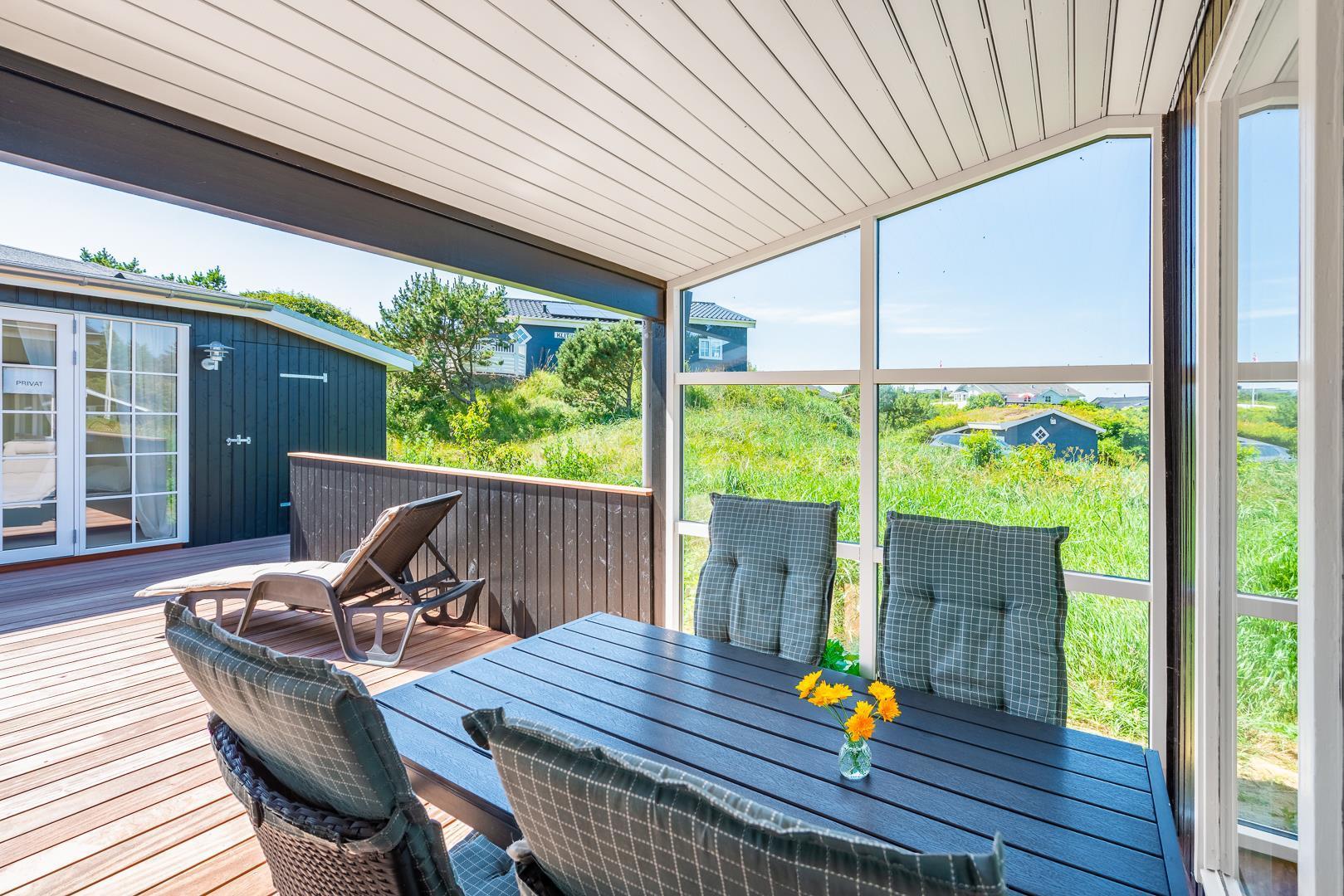 Die teilweise überdachte Terrasse bietet ideale Bedingungen für gemütliche Abende im Freien. Ob beim Frühstück in der Morgensonne oder beim Abendessen mit Blick auf die Dünenlandschaft – hier kommt Urlaubsstimmung auf. Der Außenbereich ist außerdem kinderfreundlich gestaltet und bietet ausreichend Platz zum Spielen und Toben.