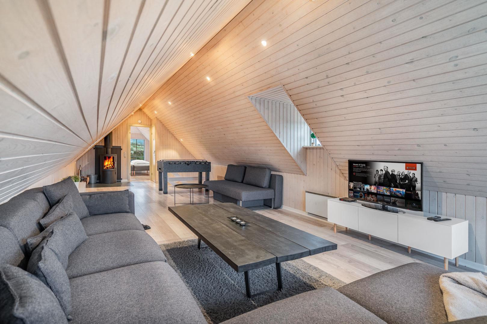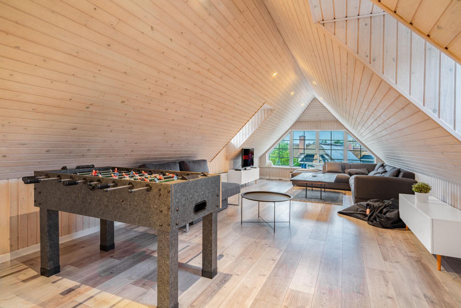 Geschmackvolles und sehr gut eingerichtetes Poolhaus mit Reetdach und mit 70 qm. Große Holzterrasse mit Aussenwhirlpool, gelegen auf einem großen ungestörten hügeligen Dünengrundstück und nur wenige Gehminuten von dem Ort Henne Strand und der rauschenden Nordsee entfernt. Das Ferienhaus ist praktisch eingerichtet mit einer geräumigen Küche / Esszimmer mit Holzofen und Wärmepumpe und von hier aus gelangt man in den 1. Stock mit zusätzlichen Schlafzimmern und einem einzigartigen Panoramablick auf das schöne und ruhige Dünengebiet. Mit Tischkicker. Der Poolbereich ist mit der Küche / dem Familienraum verbunden, von wo aus alle Aktivitäten im Poolraum durch die großen Panoramafenster verfolgt werden können.