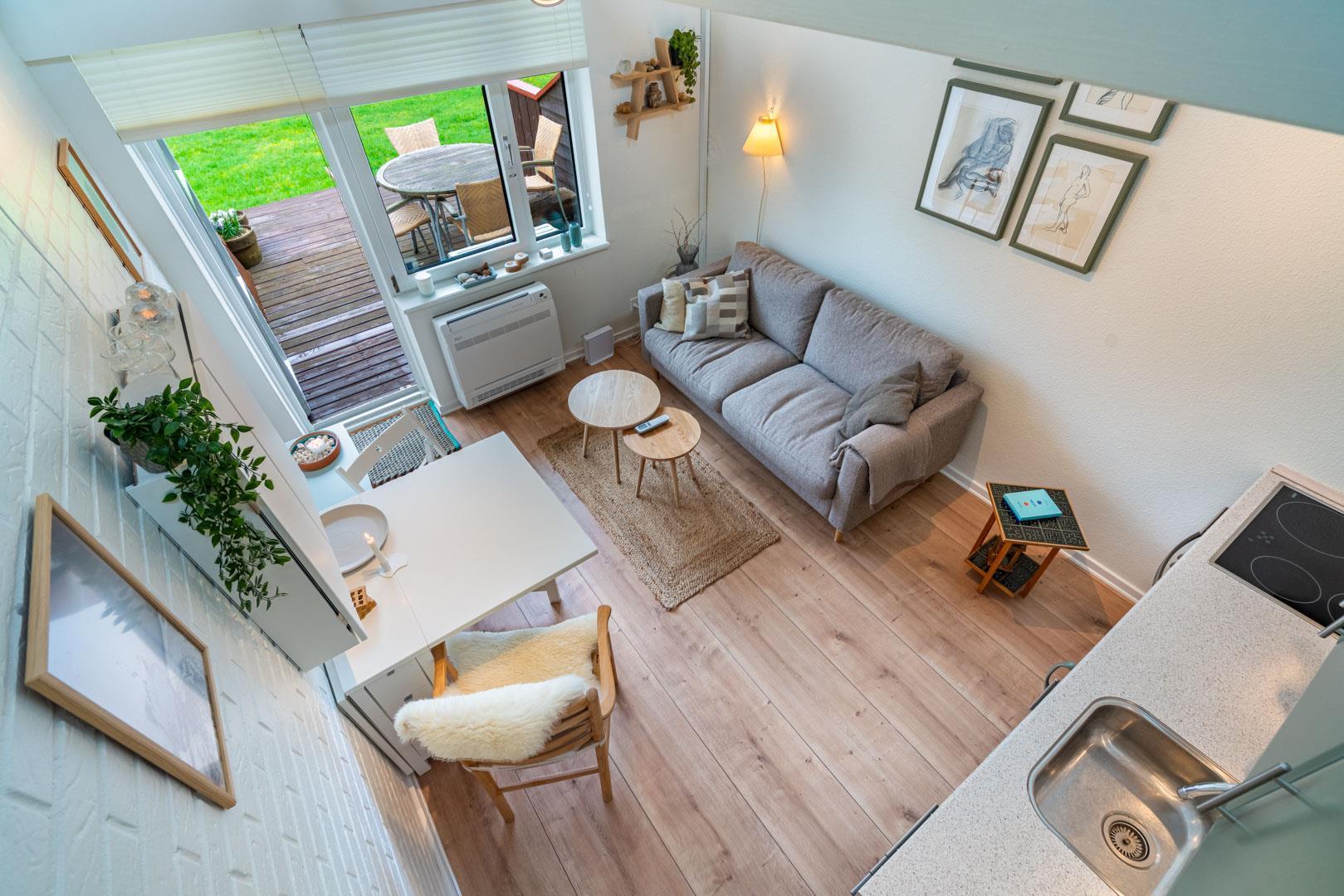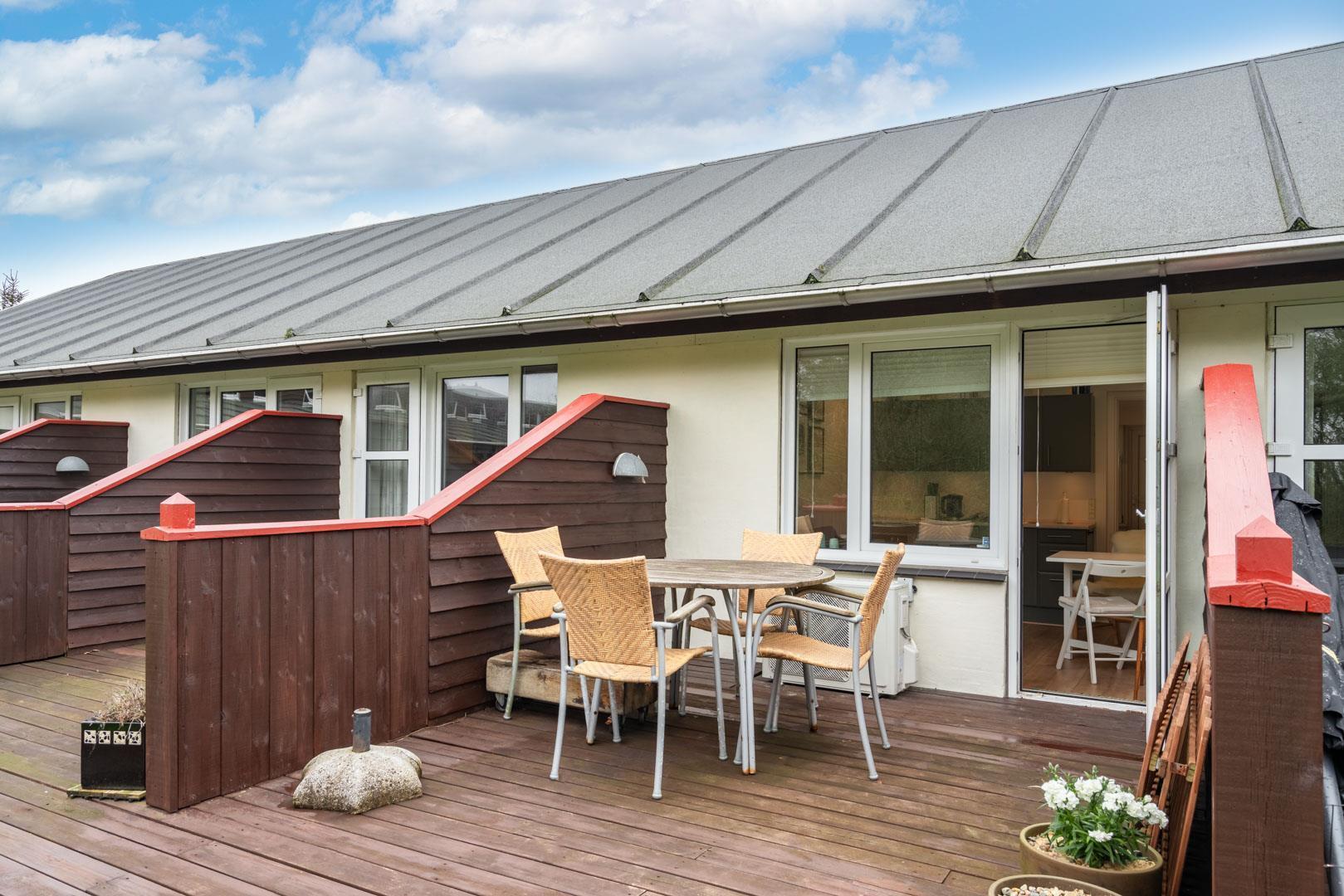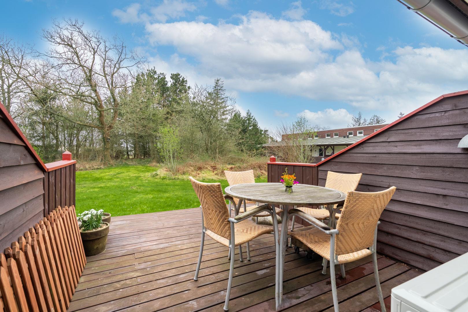 Gemütliche Ferienwohnung in Henne Strand mit Terrasse, Gartenmöbeln und moderner Ausstattung für erholsame Tage.