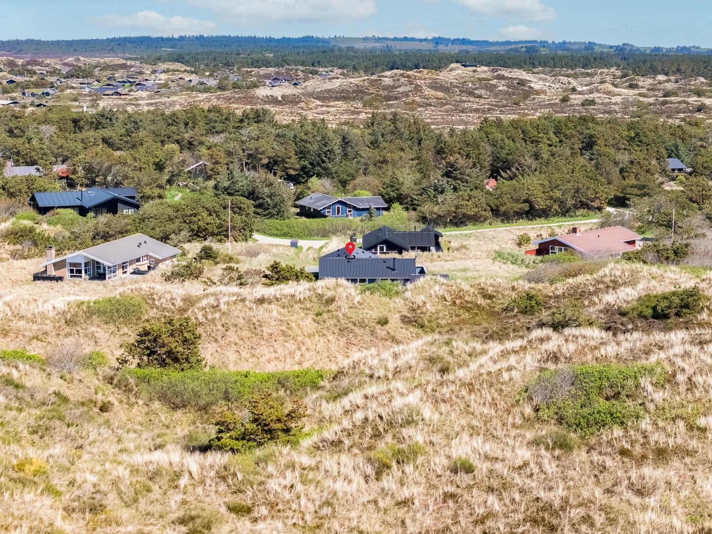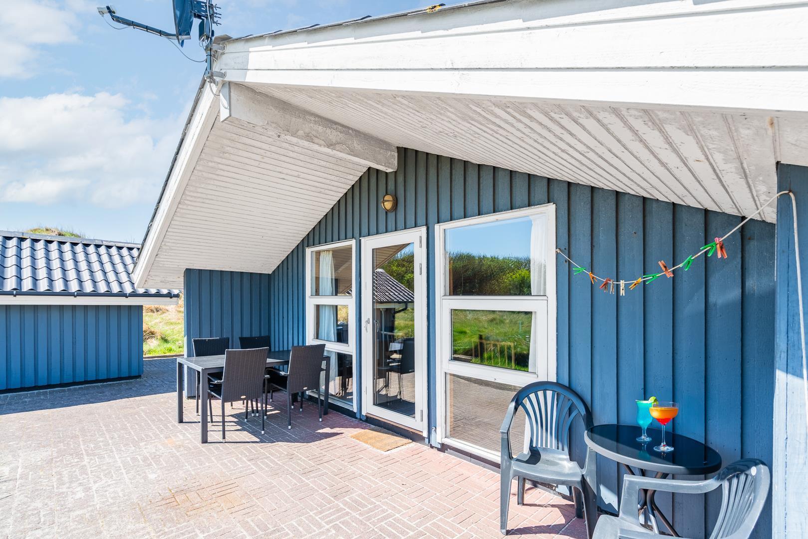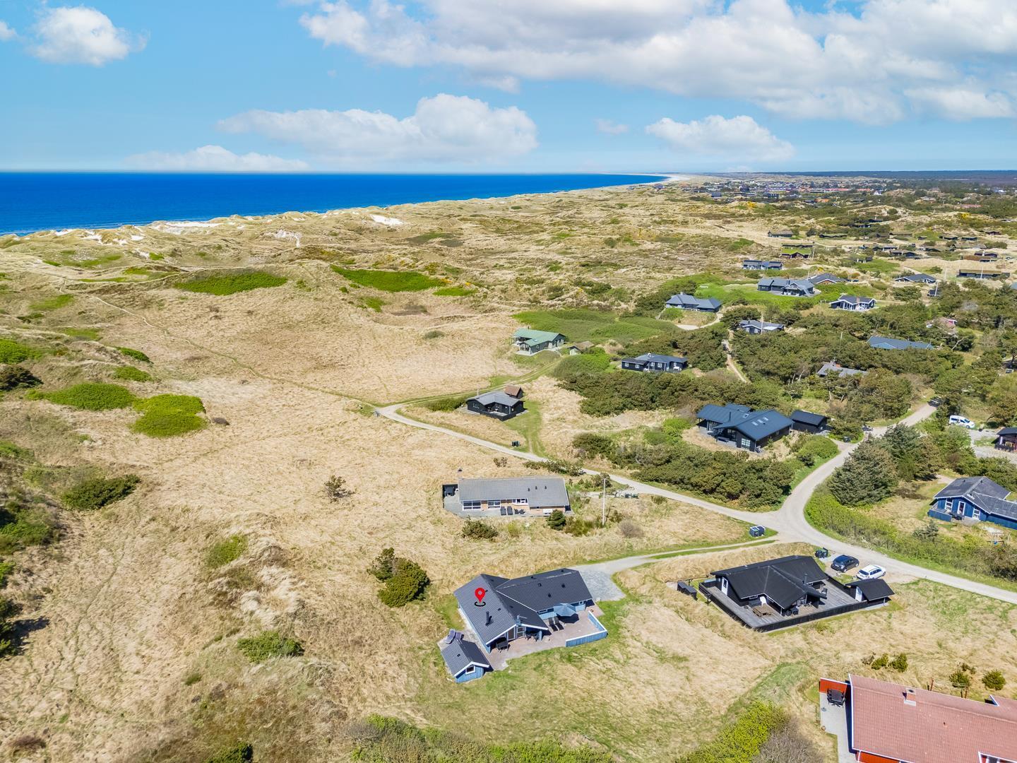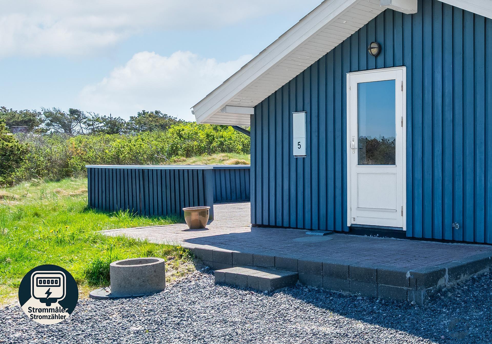 Dieses gemütliche und gepflegte Ferienhaus liegt auf einem prachtvollen, hügeligen Dünengrundstück nahe der Nordsee und dem kleinen Fluss Henne Mølle Å. In 2006 wurden die beiden Badezimmer im Haus erneuert. Eines der Bäder verfügt über einen Whirlpool und eine Sauna. Die große Küche ist mit dem geräumigen Wohnraum kombiniert. Die große, ungestörte und teilweise überdachte Terrasse, von der aus man einen tollen Blick über die Dünen hat, ist vom Wohnbereich aus zugänglich. Auf dem Grundstück befindet sich ein Nebengebäude.