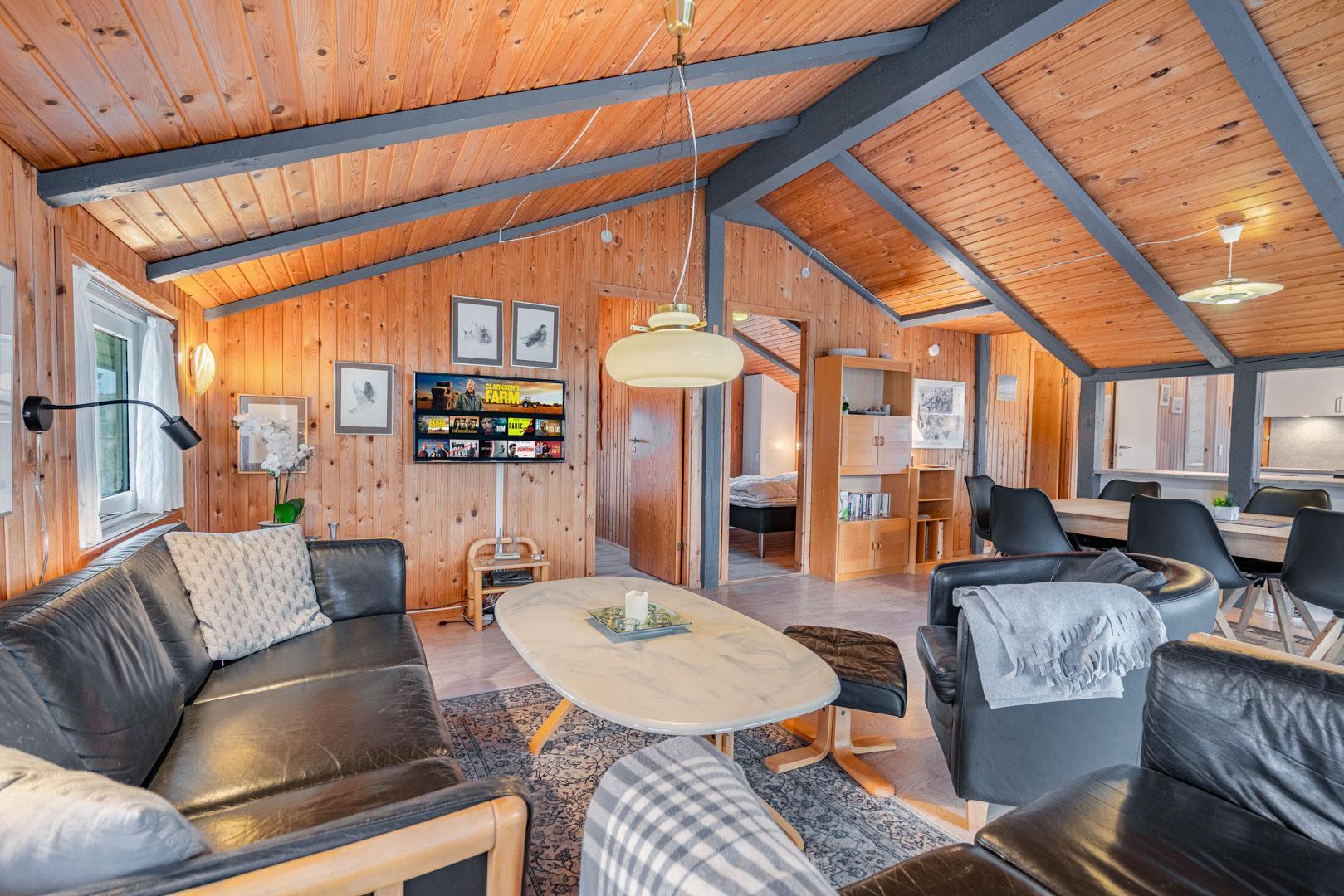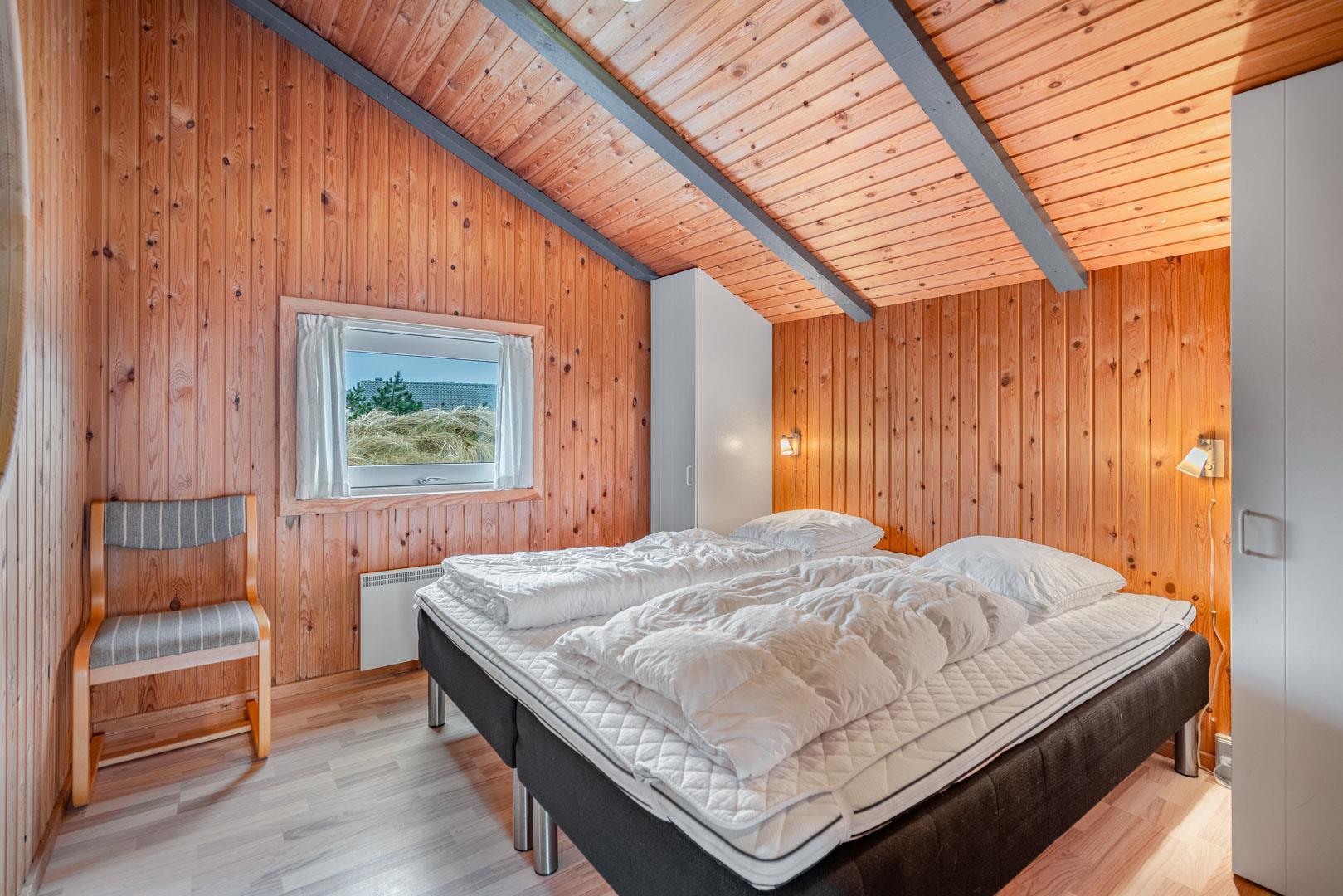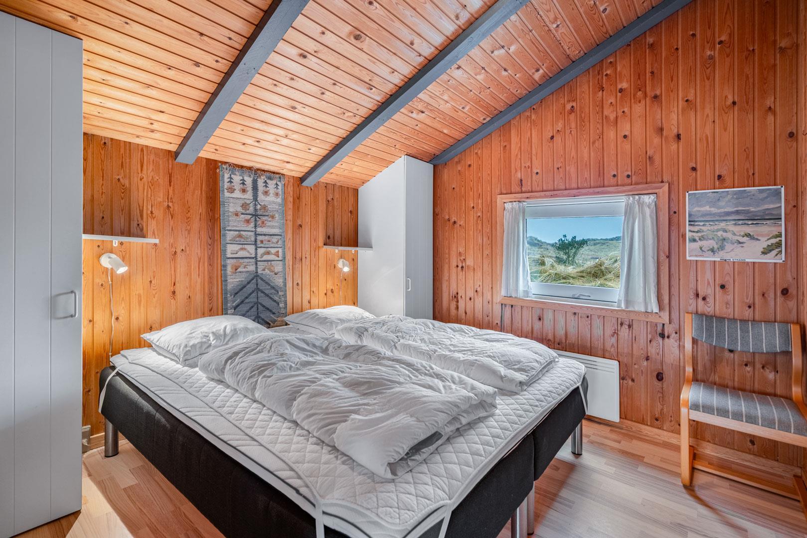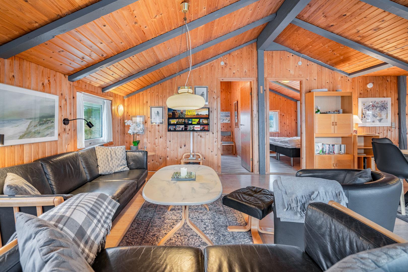 Dieses gemütliche und gepflegte Ferienhaus liegt auf einem prachtvollen, hügeligen Dünengrundstück nahe der Nordsee und dem kleinen Fluss Henne Mølle Å. In 2006 wurden die beiden Badezimmer im Haus erneuert. Eines der Bäder verfügt über einen Whirlpool und eine Sauna. Die große Küche ist mit dem geräumigen Wohnraum kombiniert. Die große, ungestörte und teilweise überdachte Terrasse, von der aus man einen tollen Blick über die Dünen hat, ist vom Wohnbereich aus zugänglich. Auf dem Grundstück befindet sich ein Nebengebäude.