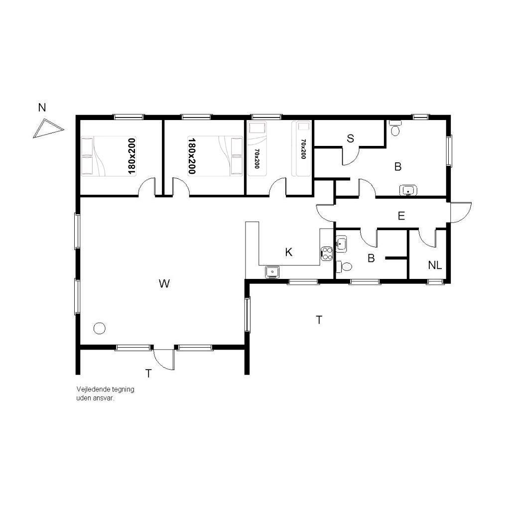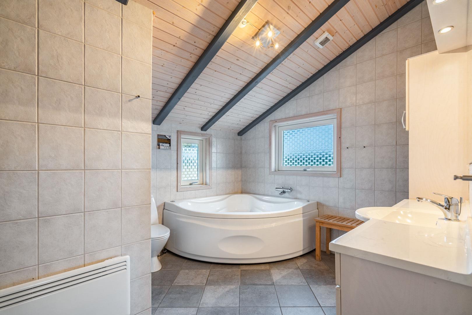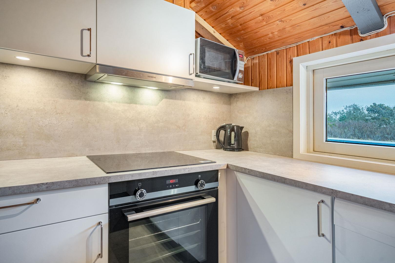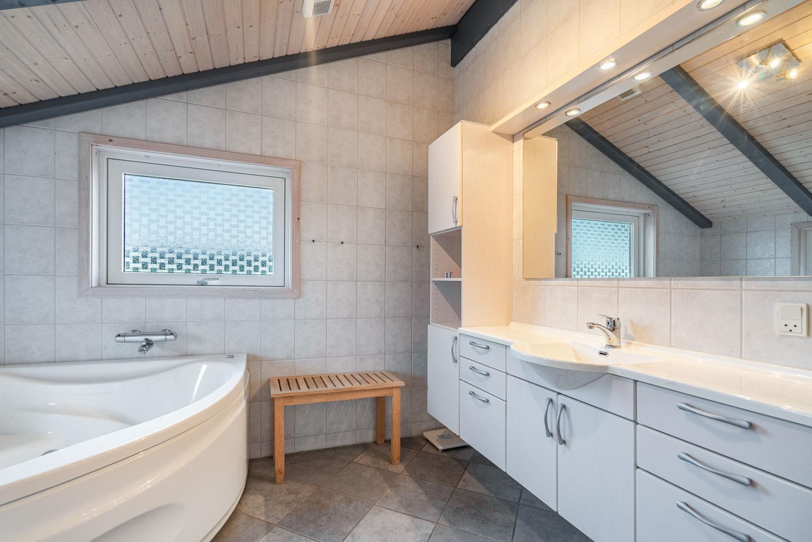 Dieses gemütliche und gepflegte Ferienhaus liegt auf einem prachtvollen, hügeligen Dünengrundstück nahe der Nordsee und dem kleinen Fluss Henne Mølle Å. In 2006 wurden die beiden Badezimmer im Haus erneuert. Eines der Bäder verfügt über einen Whirlpool und eine Sauna. Die große Küche ist mit dem geräumigen Wohnraum kombiniert. Die große, ungestörte und teilweise überdachte Terrasse, von der aus man einen tollen Blick über die Dünen hat, ist vom Wohnbereich aus zugänglich. Auf dem Grundstück befindet sich ein Nebengebäude.