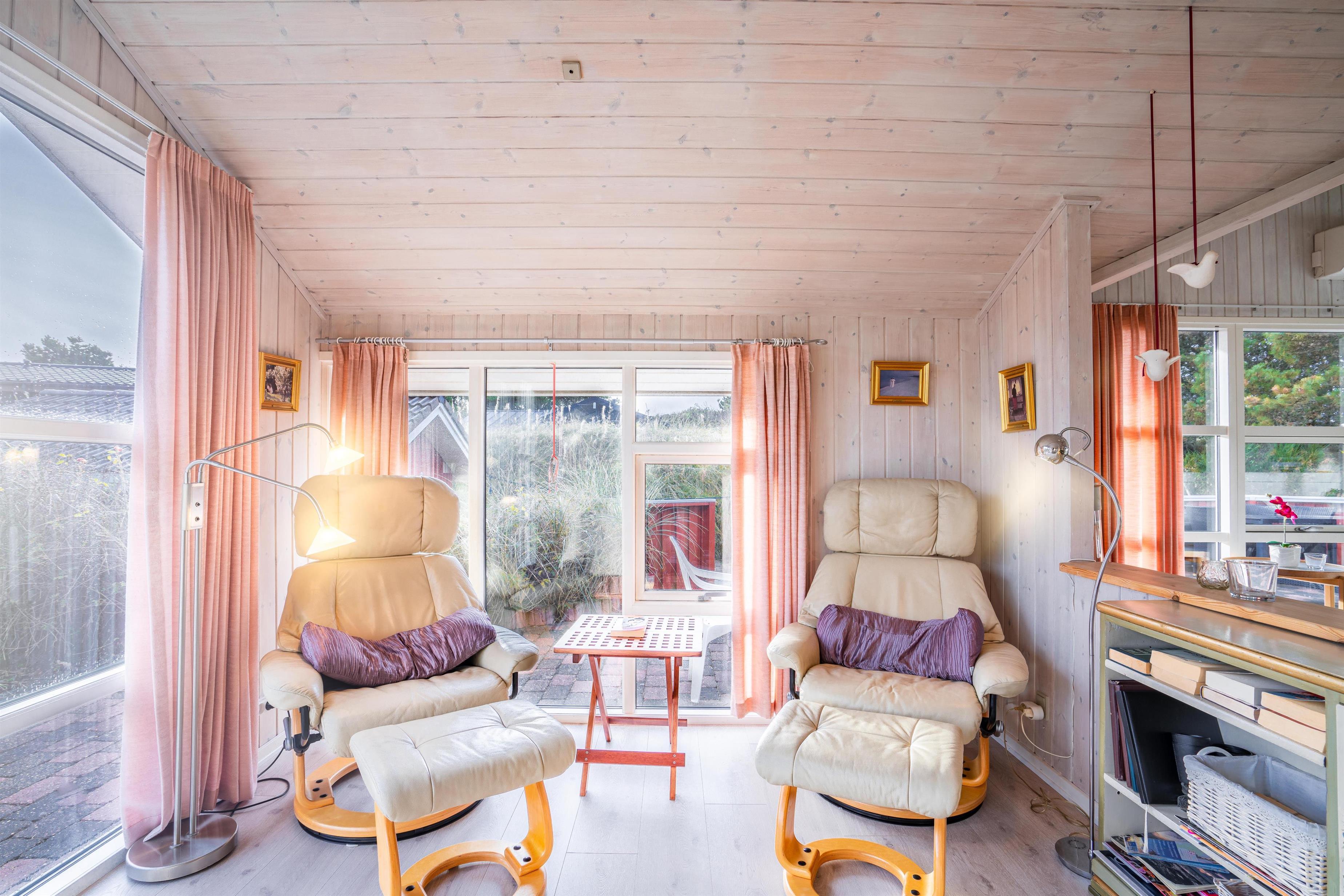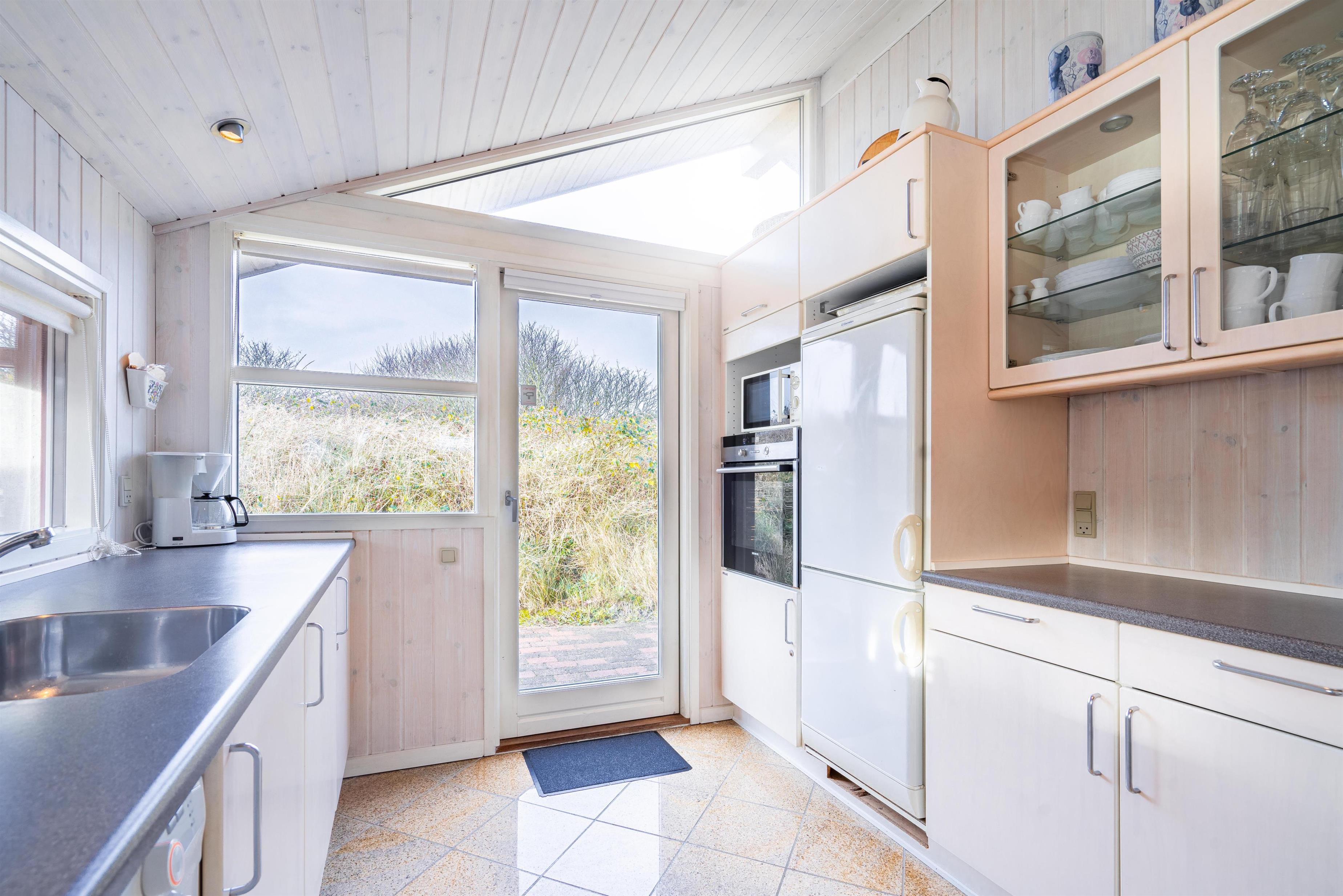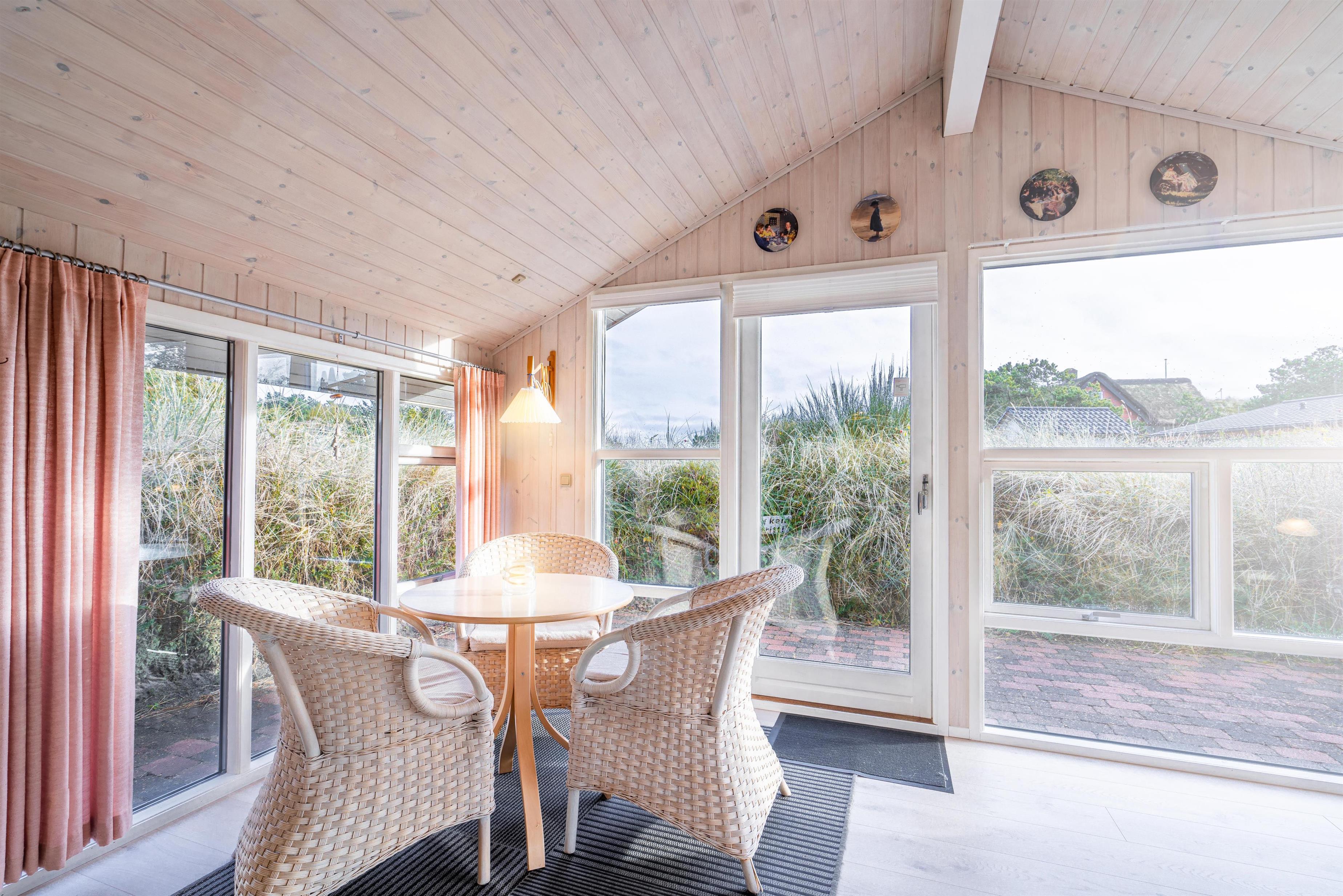Auf einem hügeligen Dünengrundstück liegt dieses schöne und persönlich eingerichtete Ferienhaus mit Veranda. Das Haus ist sehr gepflegt und befindet sich in einem sehr guten Zustand. Es ist mit netten und bequemen Möbeln eingerichtet. Zum Haus gehört ein hübsches Badezimmer mit Whirlpool und Sauna. Von Küche, Wohnbereich und Veranda aus hat man Zugang zum großen Terrassenareal, das das gesamte Haus umschließt. Hierdurch haben die Urlauber immer die Möglichkeit eine geschützte Ecke zu finden von der aus man die schöne Natur und die Sonne genießen kann.