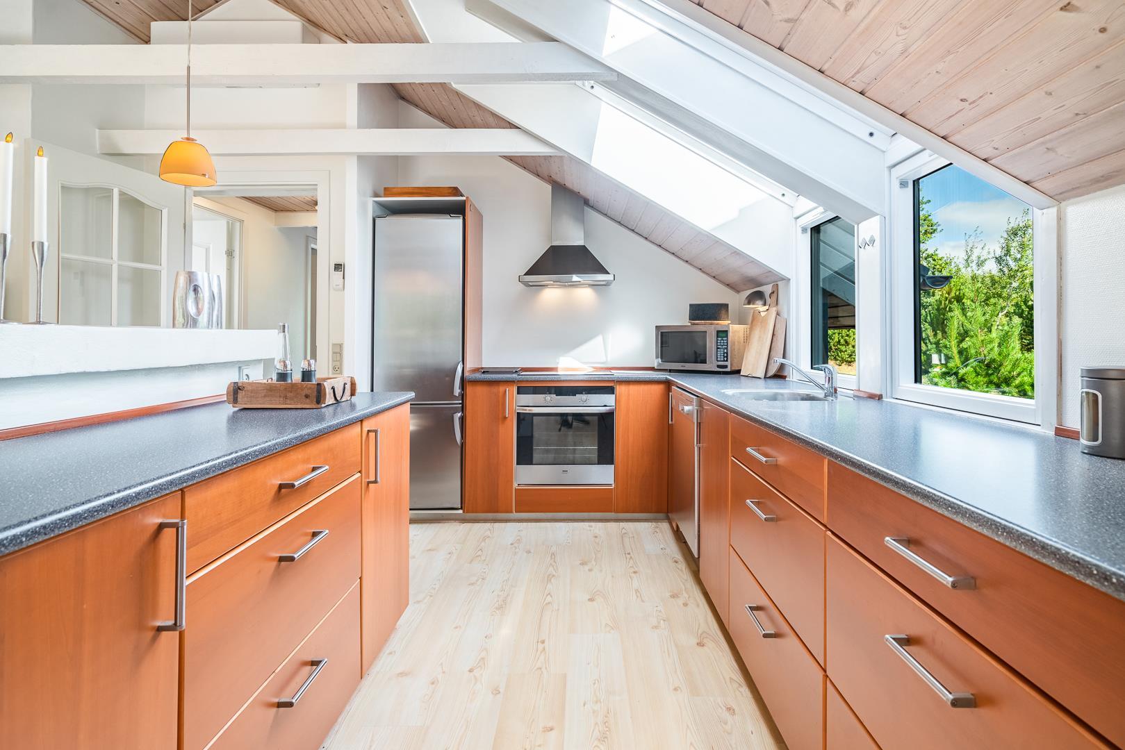 Von den Holzterrassen können Sie weiter in den Garten hinein gehen. Er ist umgeben von wunderschön gewachsenen Pflanzen mit Bäumen und Sträuchern, so dass es viele schöne Ecken gibt, in denen Sie das dänische Sommerwetter ungestört genießen können.