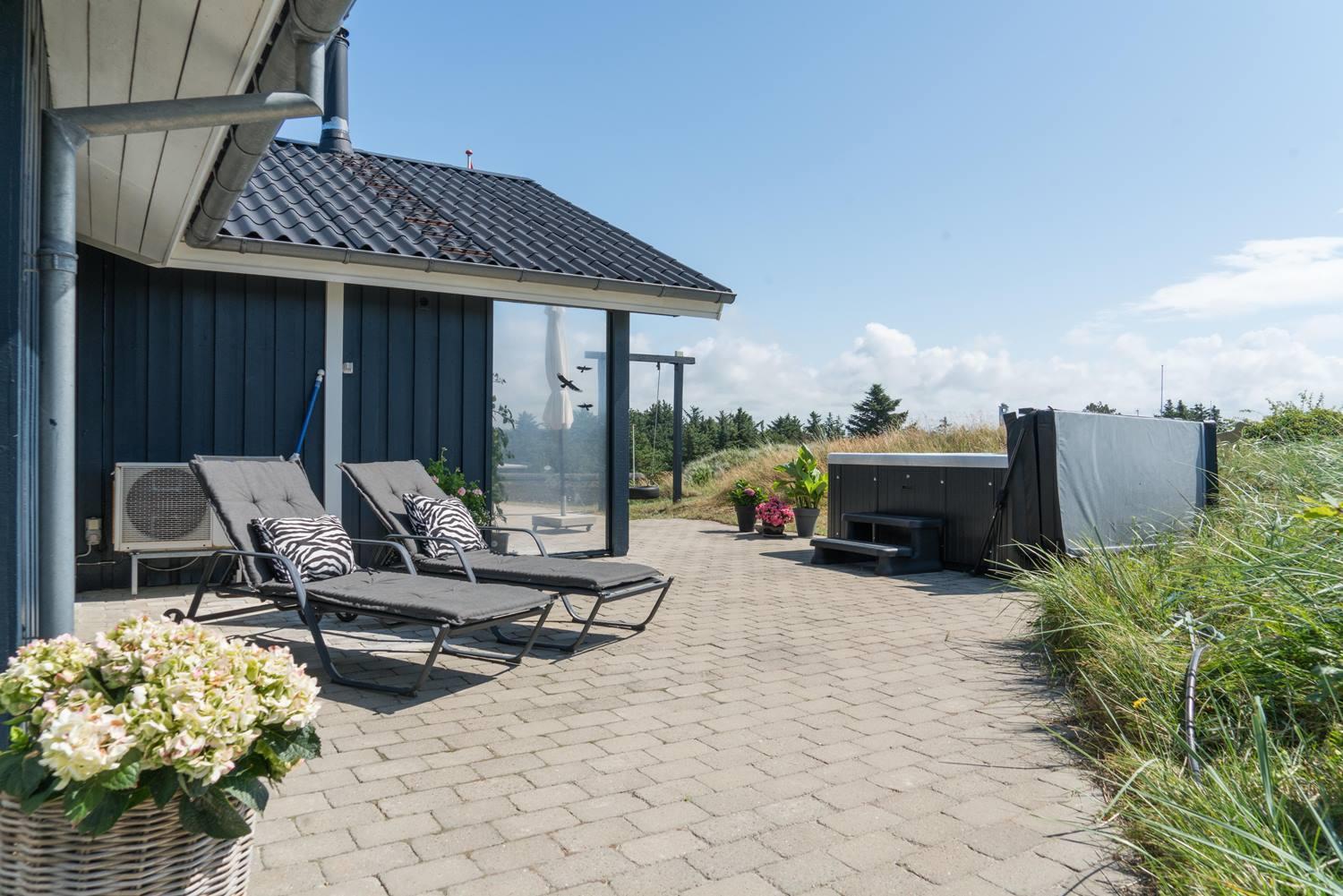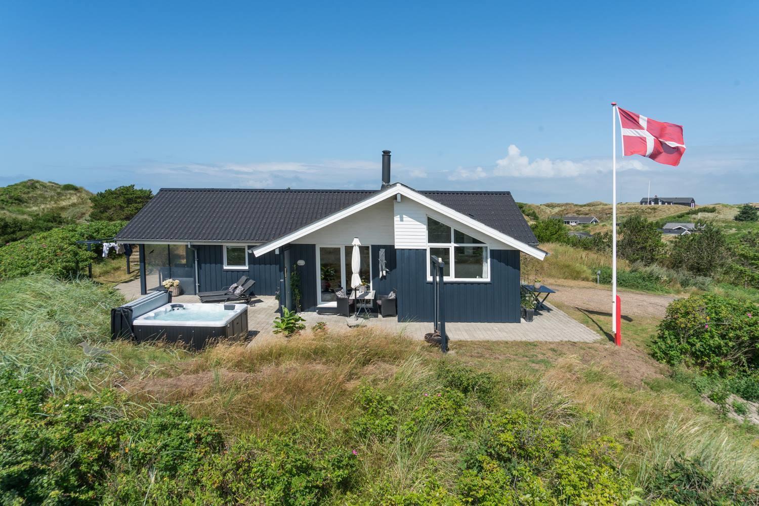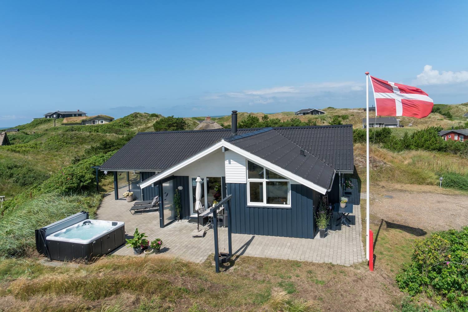 Schönes Ferienhaus in Henne Strand mit Whirlpool, Sauna, Kaminofen und traumhaftem Düneblick.