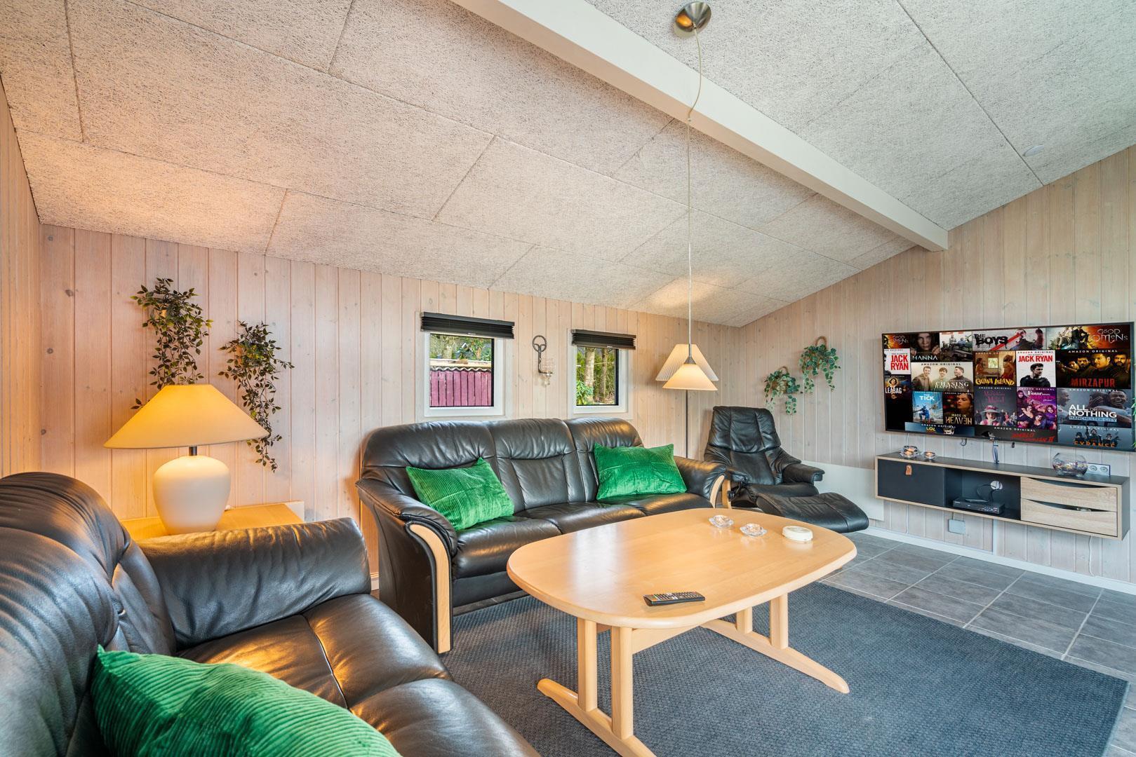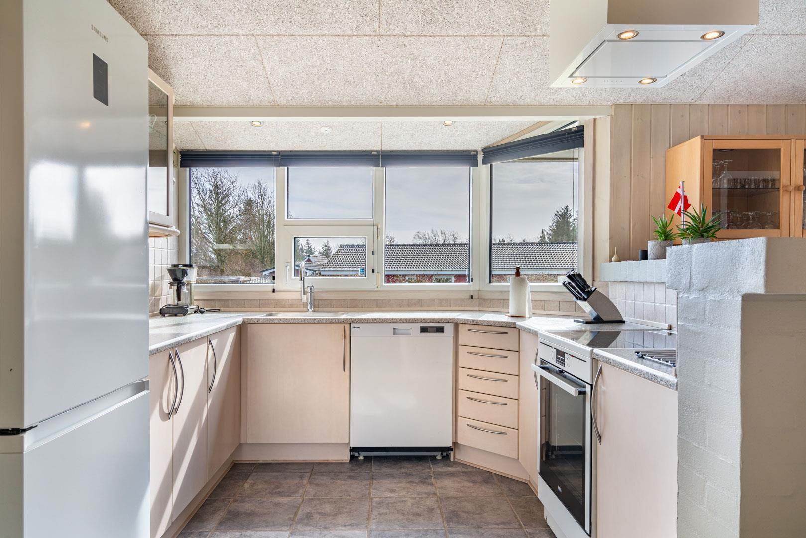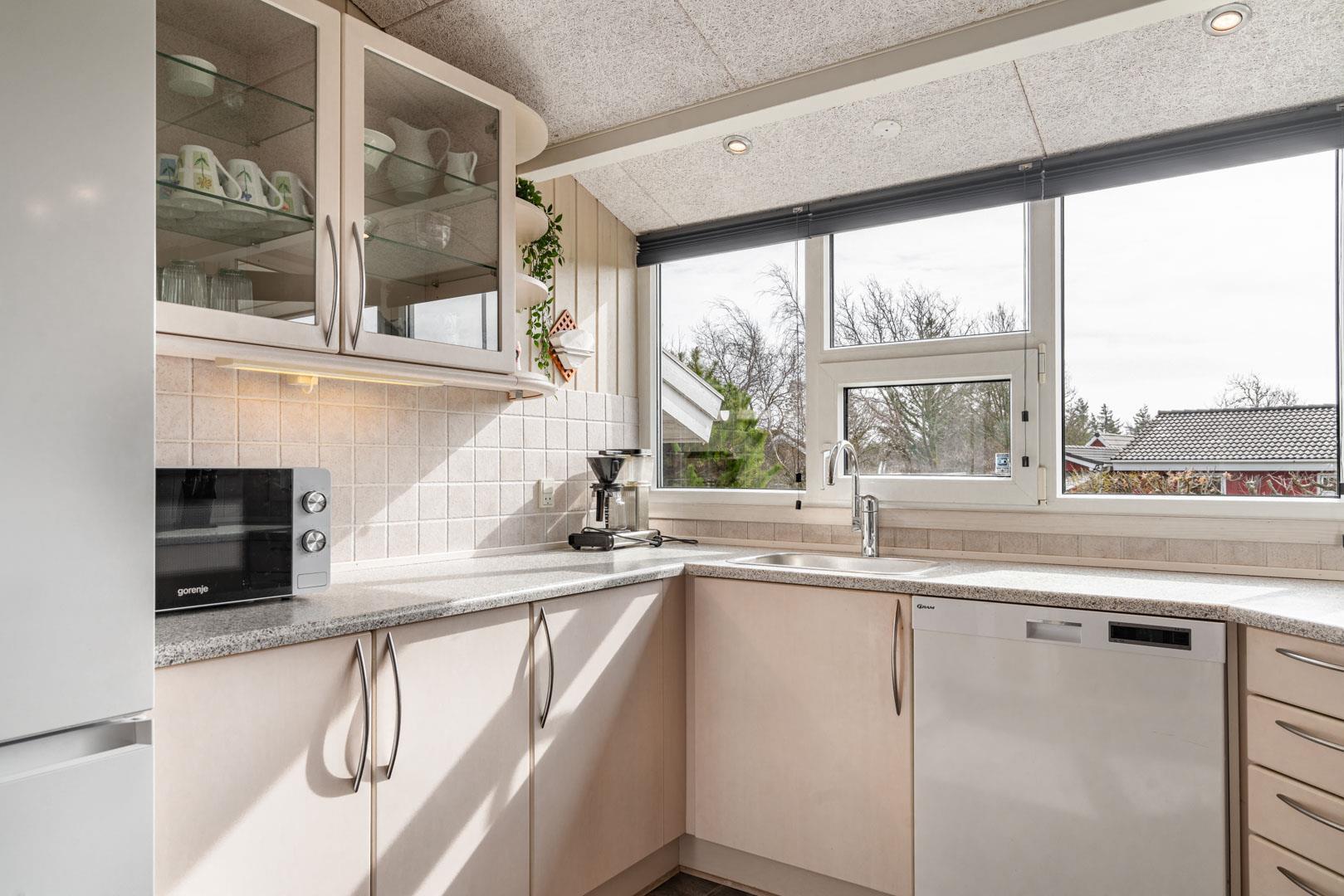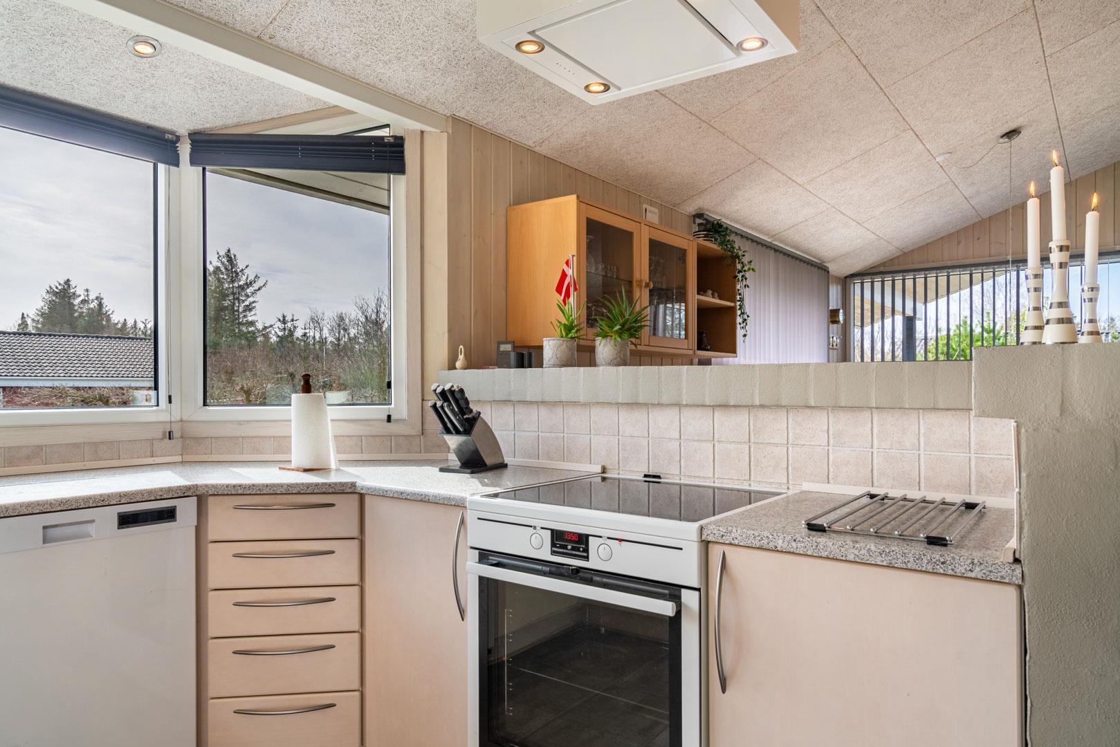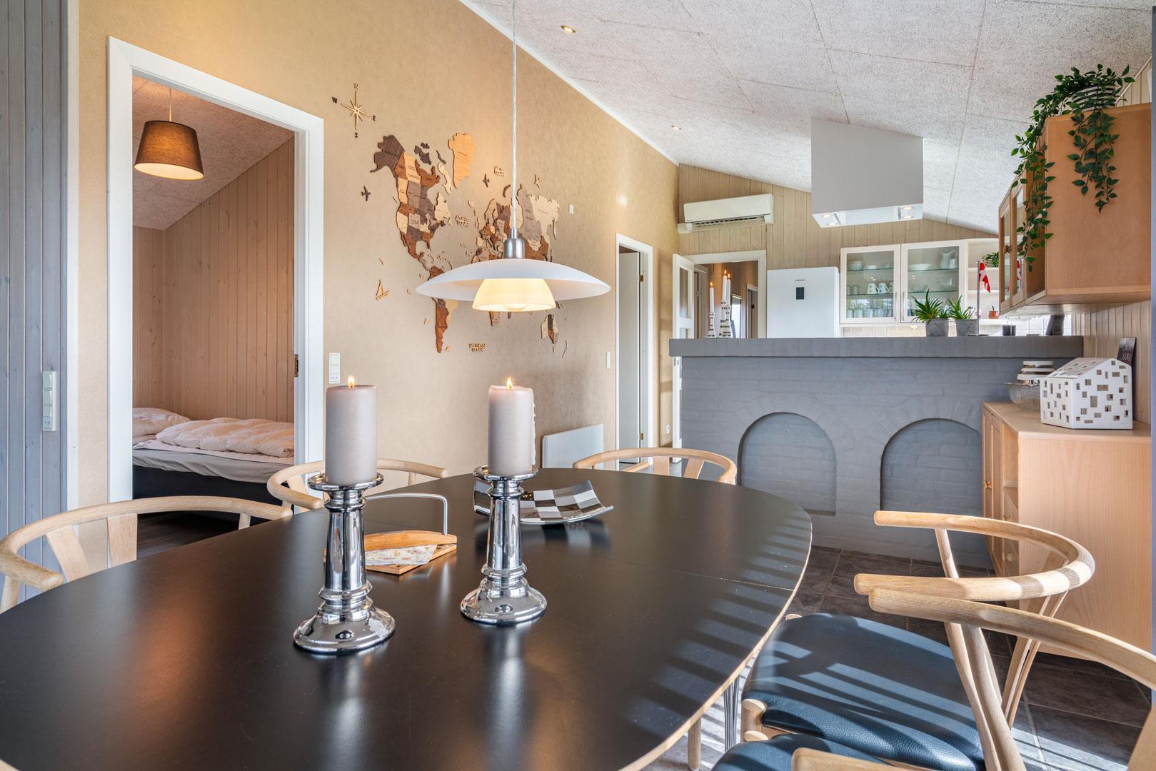 Das Haus ist hell und funktional eingerichtet mit einer offenen Küche und einem gemütlichen Wohn-/Essbereich, ausgestattet mit allen modernen Annehmlichkeiten. Vom Wohnraum aus gelangt man direkt auf die geflieste Terrasse – perfekt für das Leben im Freien.