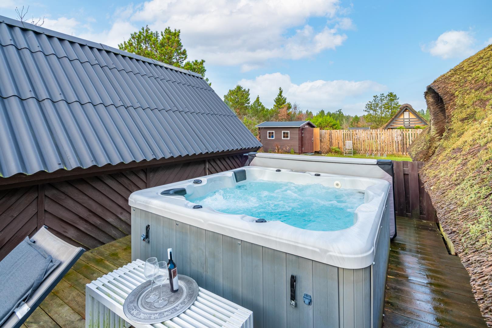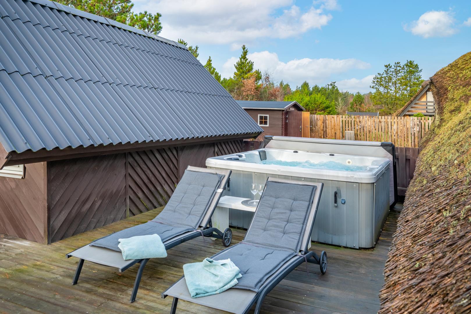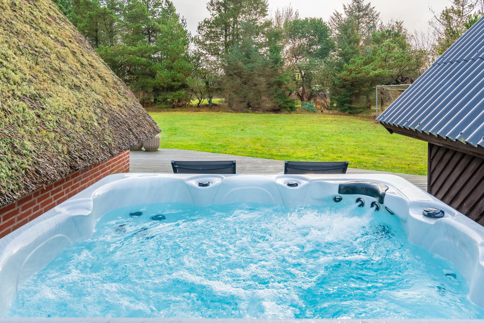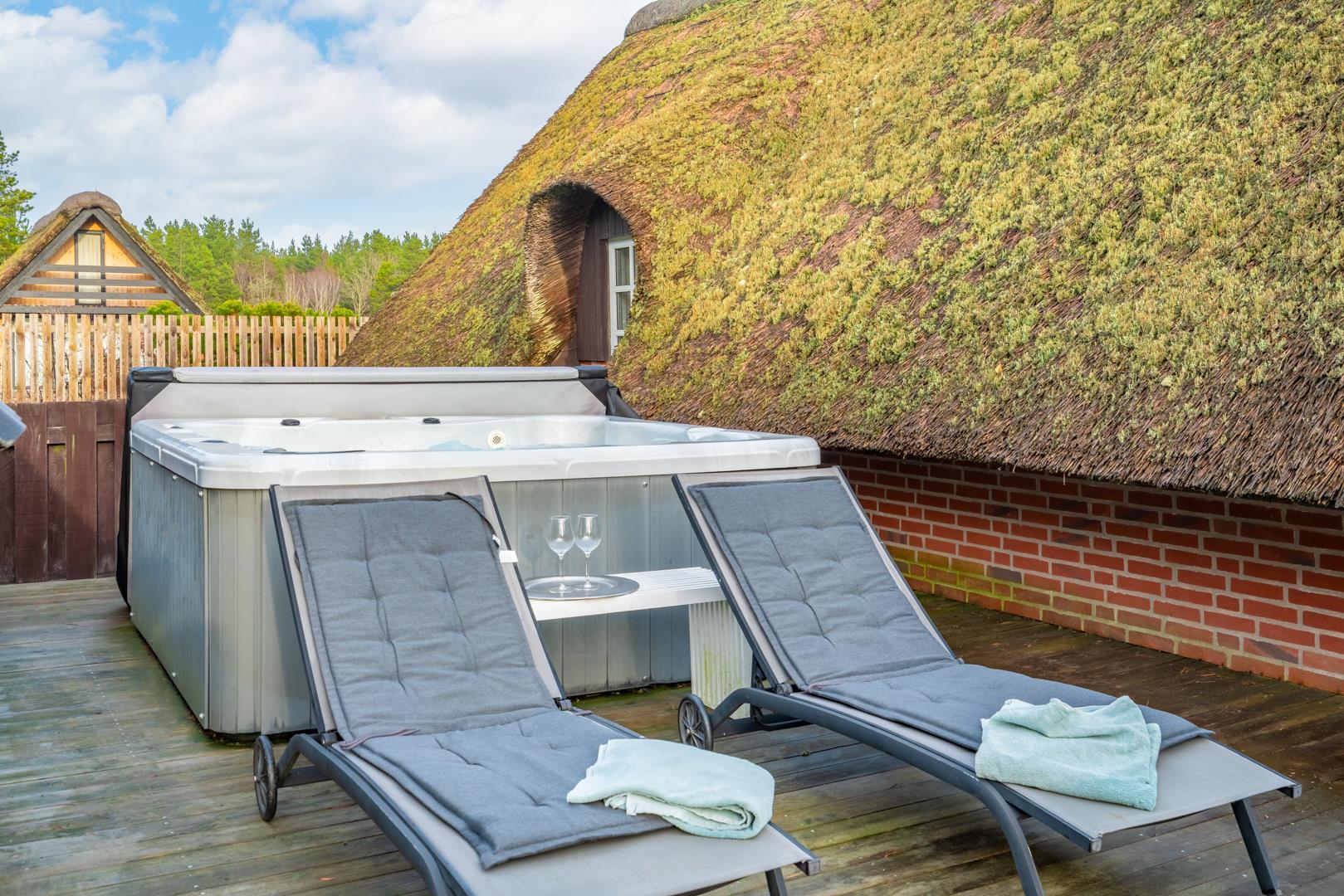 Der Außen-Whirlpool liegt geschützt auf der Terasse, sodass Sie ungestört relaxen können. Es gibt mehrere schöne Terrassen rund um das Haus, von denen aus Sie den Blick über das große Grundstück genießen und die Natur erleben können. Hinweis: Das separate Annexgebäude ist privat. Abschließbarer Abstellraum für Fahrräder.