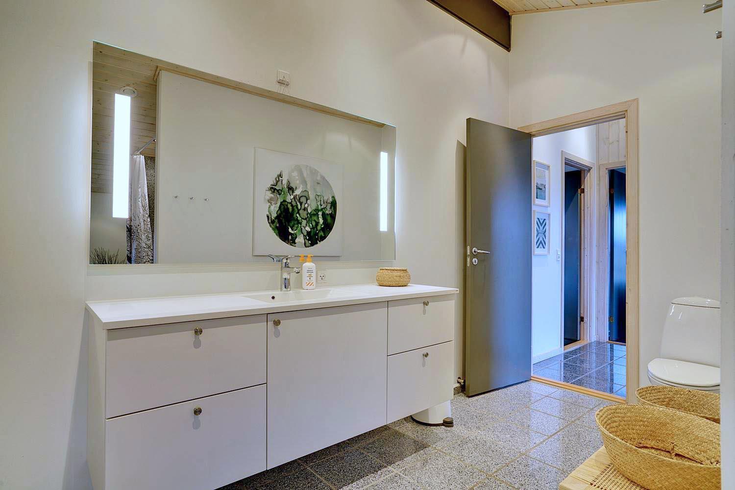 Auf einem herrlichen und abgeschiedenen Grundstück mit kurzer Entfernung zum Strand und der Stadt liegt dieses herrliche und geschmackvoll eingerichtete Ferienhaus. Das Haus ist von einer großen, gefliesten und teilweise überdachten Terrasse umgeben, wo Sie die Aussicht und die Sonne genießen können. Das Haus ist mit 3 großen Schlafzimmern und gutem Schrankplatz ausgestattet.