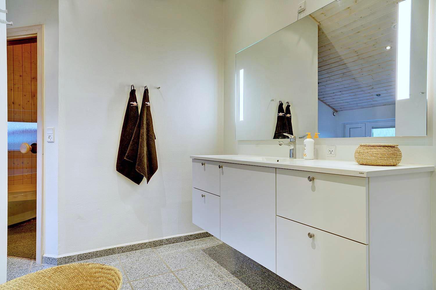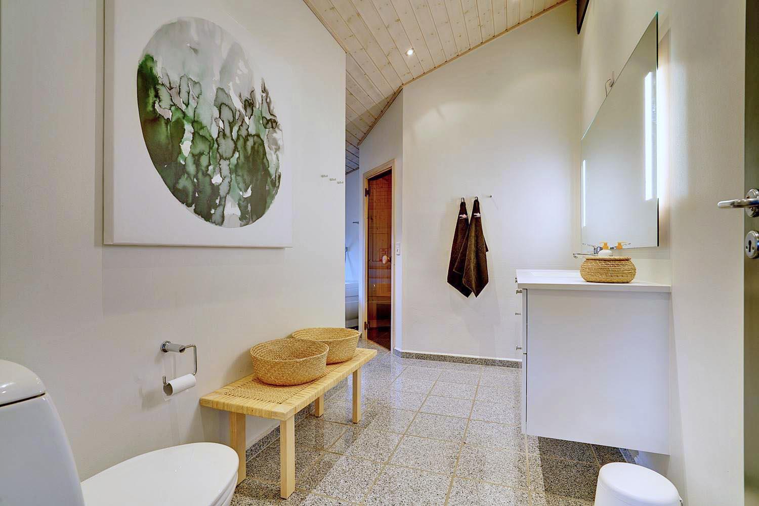 Großes, schönes Badezimmer mit Whirlpool und Sauna sowie ein zusätzliches WC.
