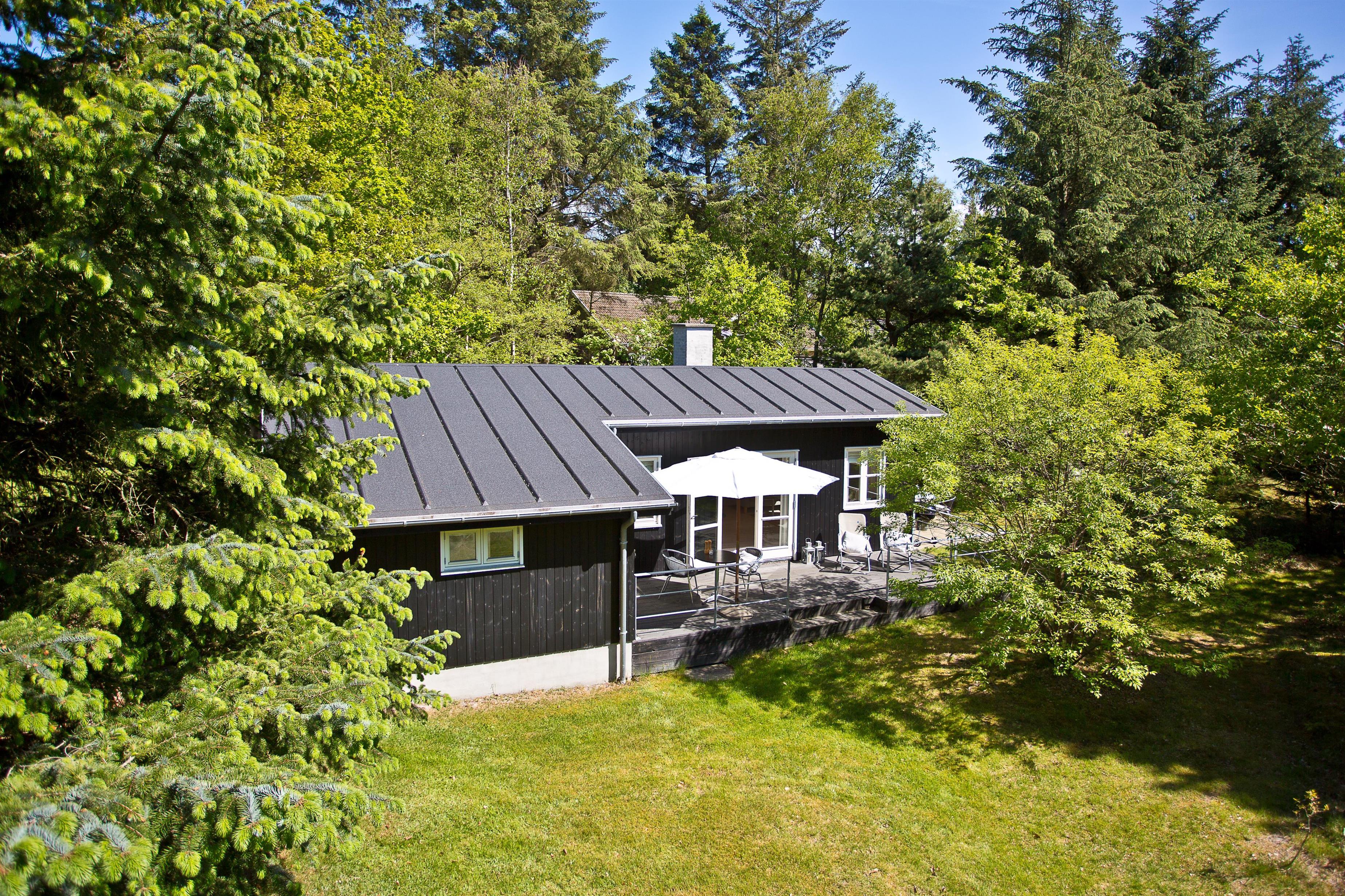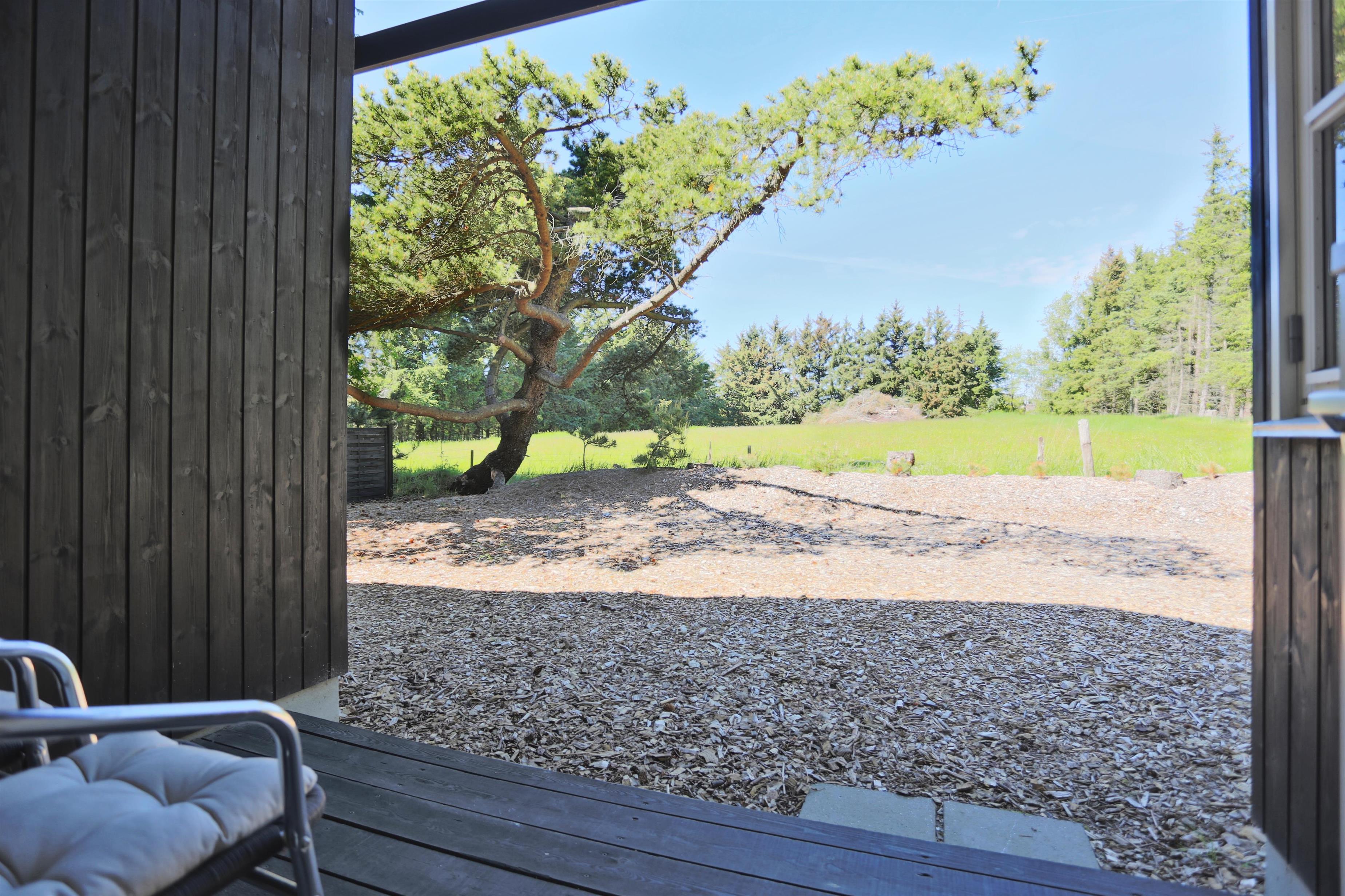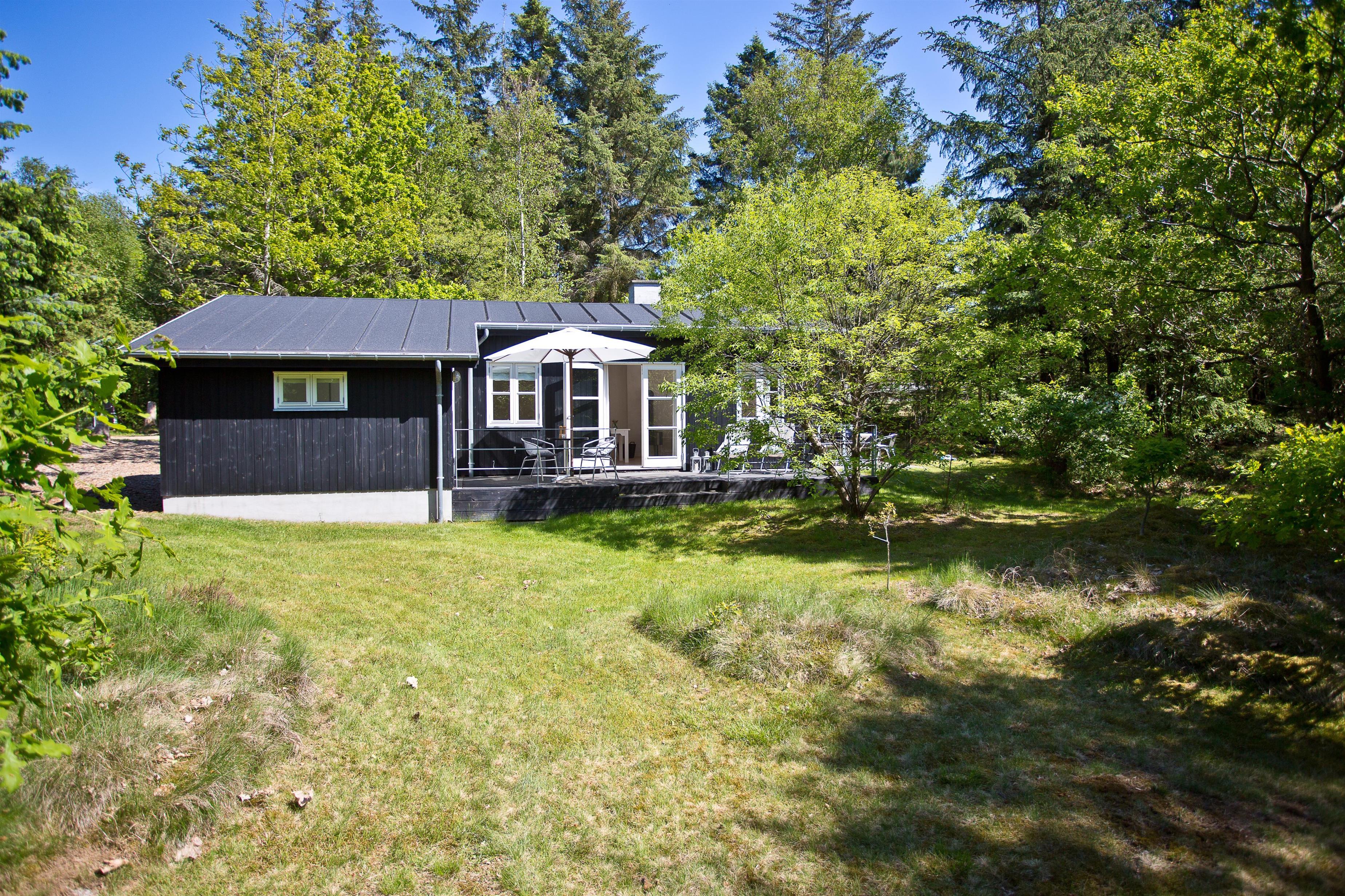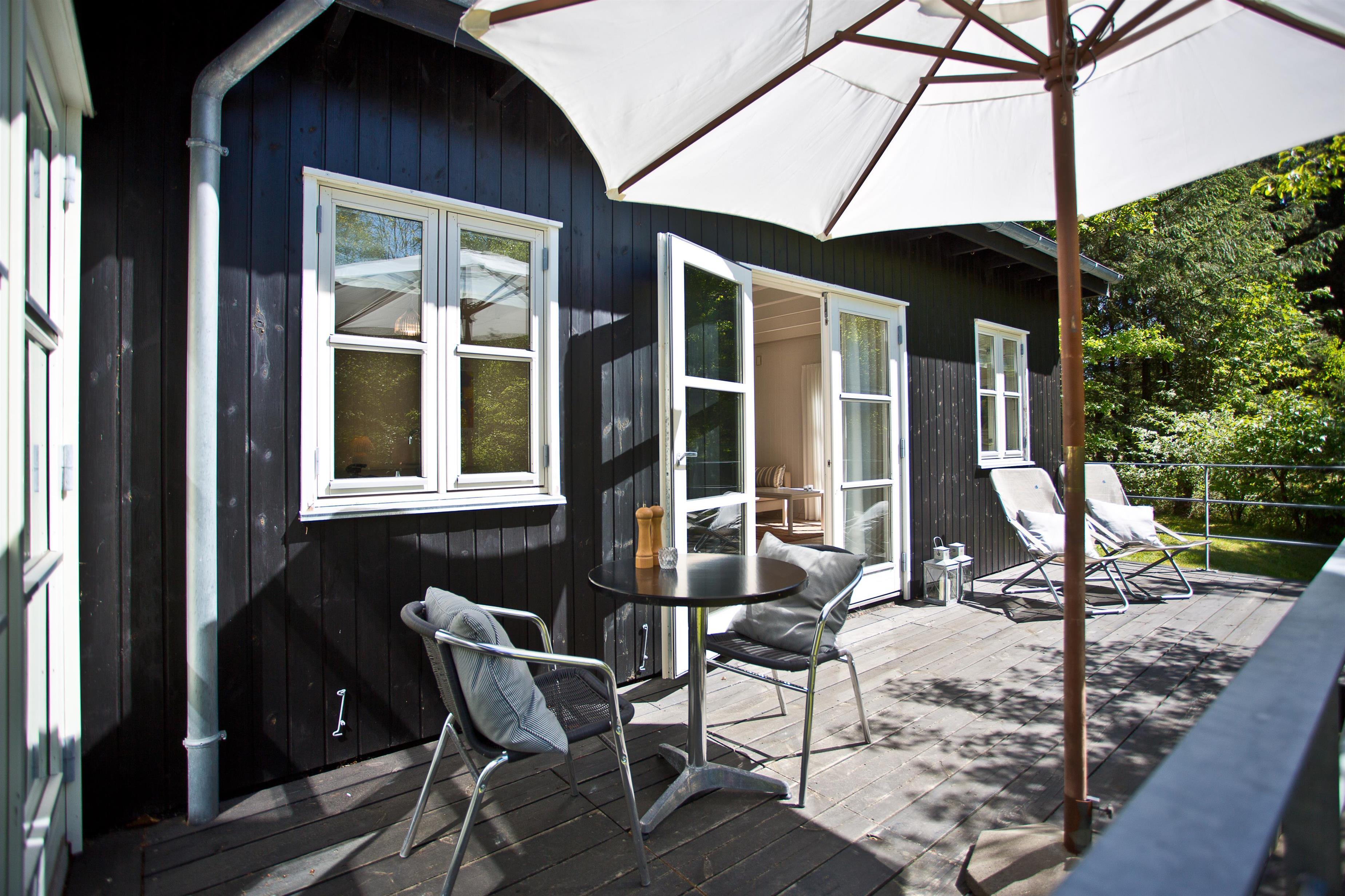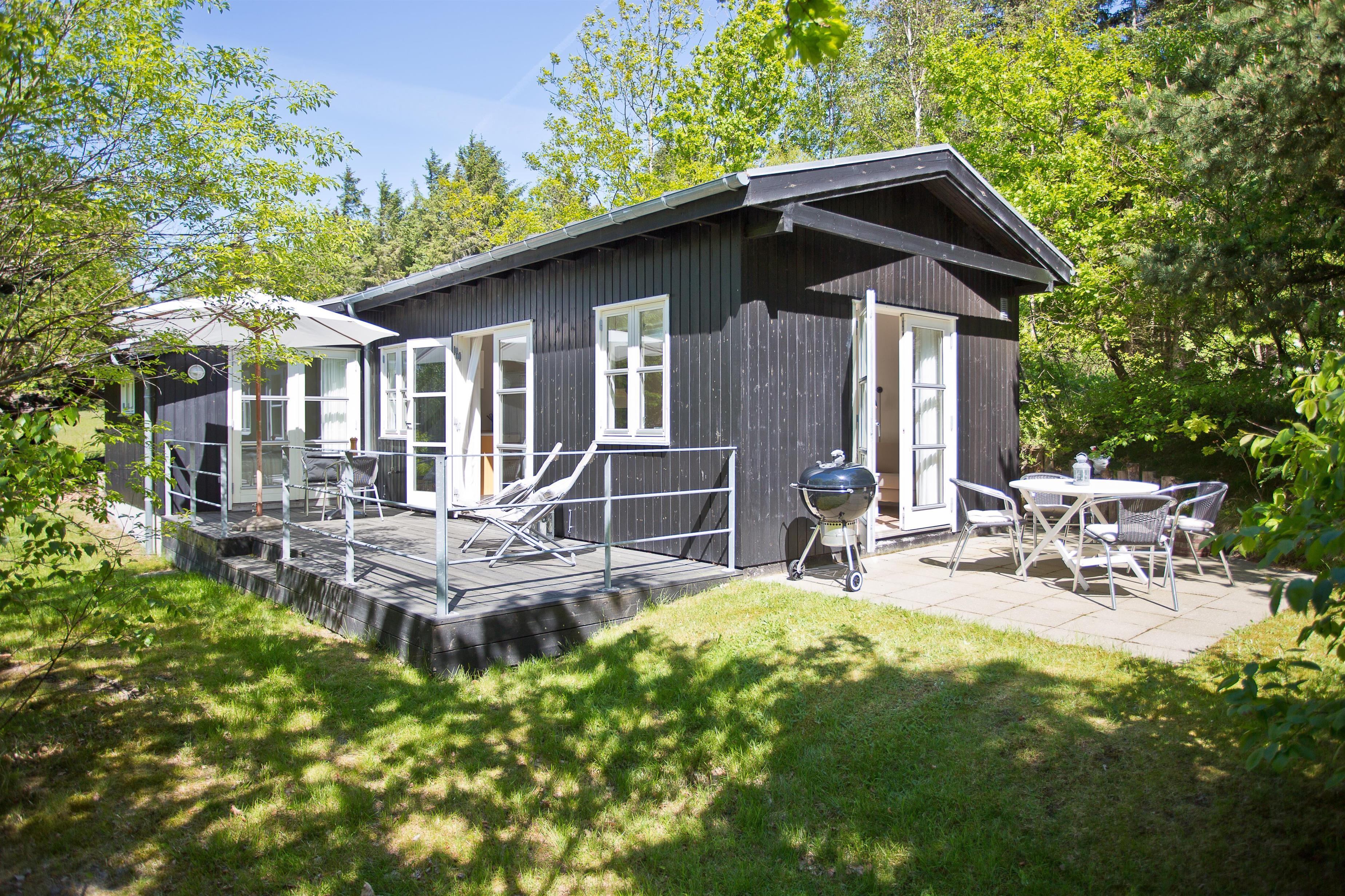 Das Ferienhaus liegt auf einem Naturgrundstück, auf dem Sie ungestört die schöne Umgebung genießen können. Eine Terrasse umgibt das Haus. Außerdem stehen Ihnen Gartenmöbel und Grill zur Verfügung. Am Eingang befindet sich eine kleine überdachte Terrasse mit Gartenstühlen.