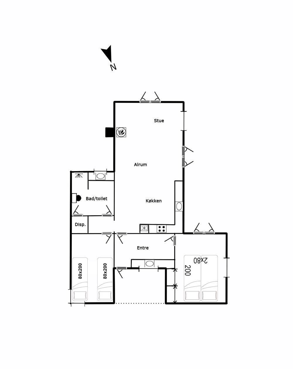 Bettengrösse: 1 Doppelbett mit je 2 Matratzen á 80 x 200 cm + 2 Einzelbetten 80 x 200 cm