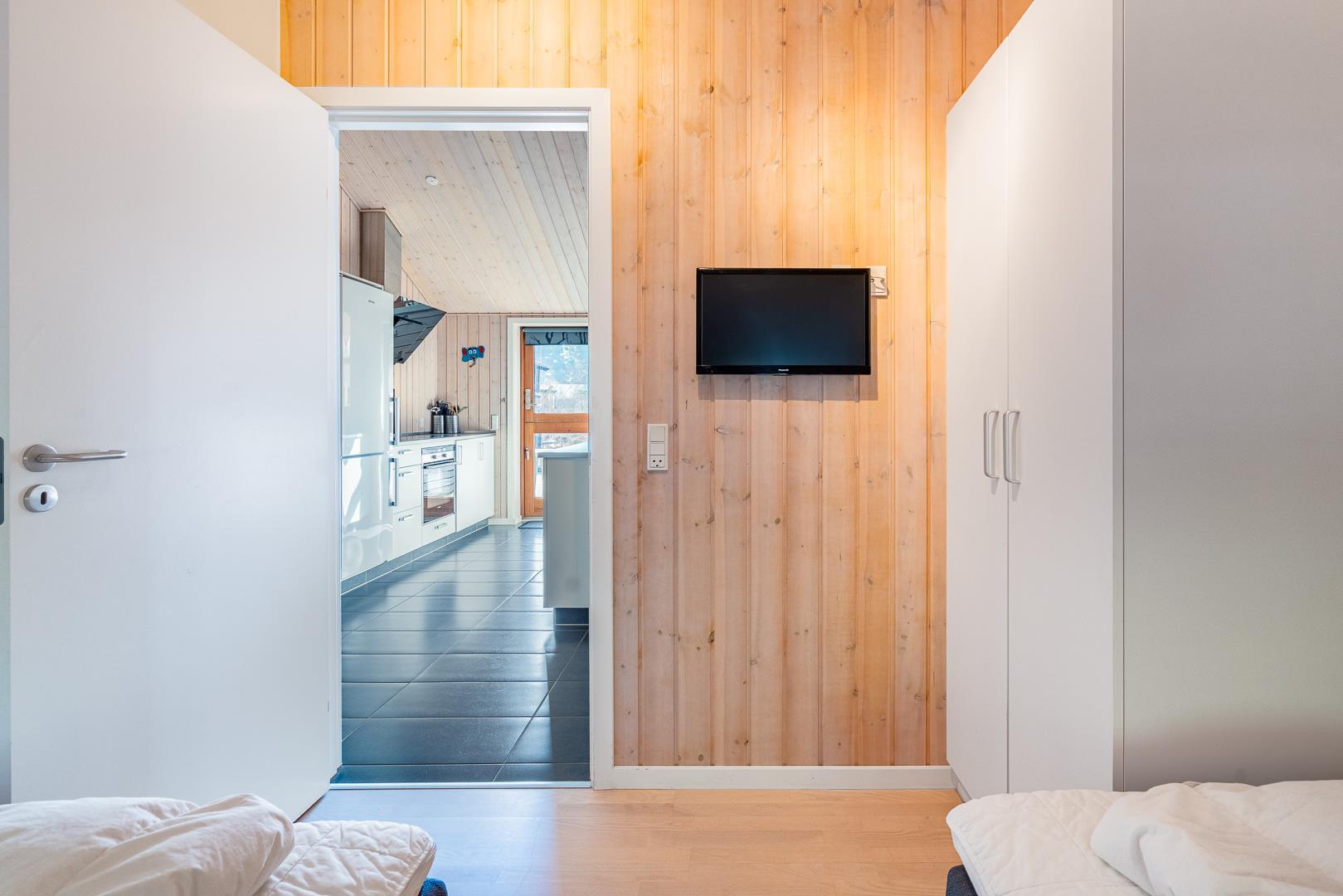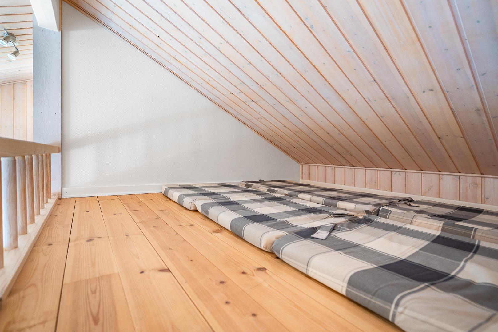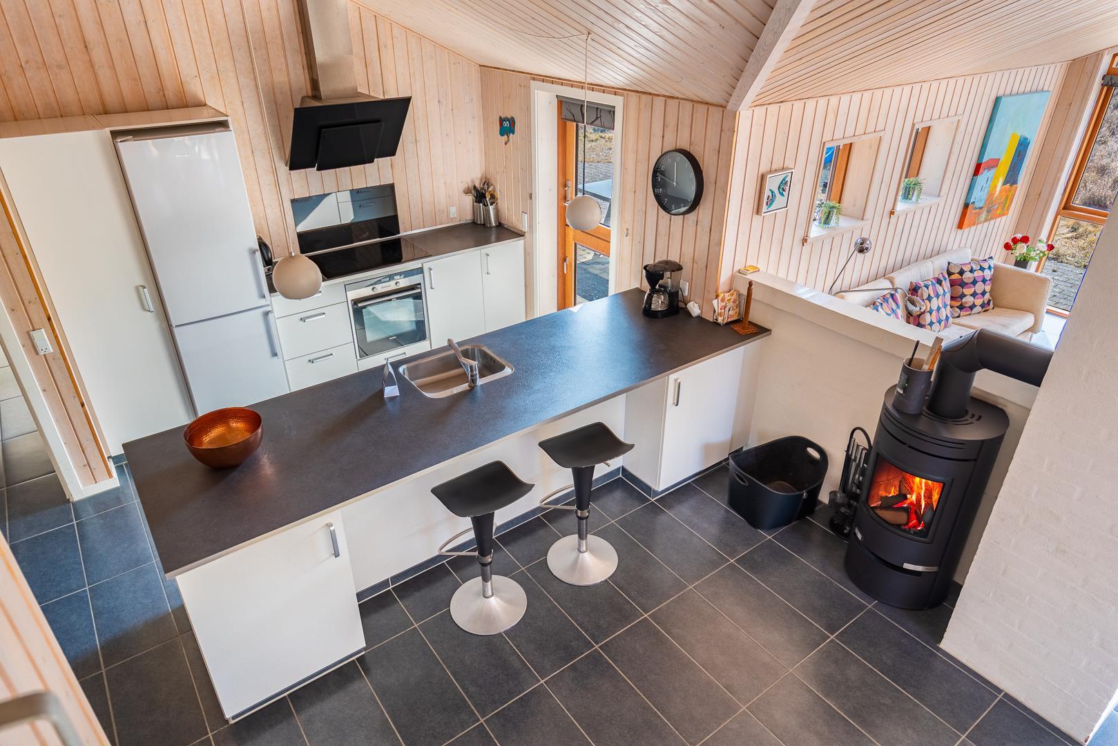 Das Haus liegt auf einer Lichtung zwischen Nadelbäumen und immergrüner Vegetation. Im Inneren wurde für eine gemütliche Atmosphäre gesorgt, ohne den modernen Komfort zu beeinträchtigen. Die Decken sind firsthoch und große Fensterfronten Richtung Süden lassen ein schönes Licht ein. Der Wohnbereich bietet eine zeitlose Küche und einen gemütlichen Bereich mit Esstisch und Sofaecke. Es gibt auch Zugang zu einem Schlafboden, auf dem die Kinder Piraten und Prinzessinnen spielen können. Das Haus ist mit TV in allen Schlafzimmern, zwei Hochstühlen, Kinderbett und Waschmaschine ausgestattet.