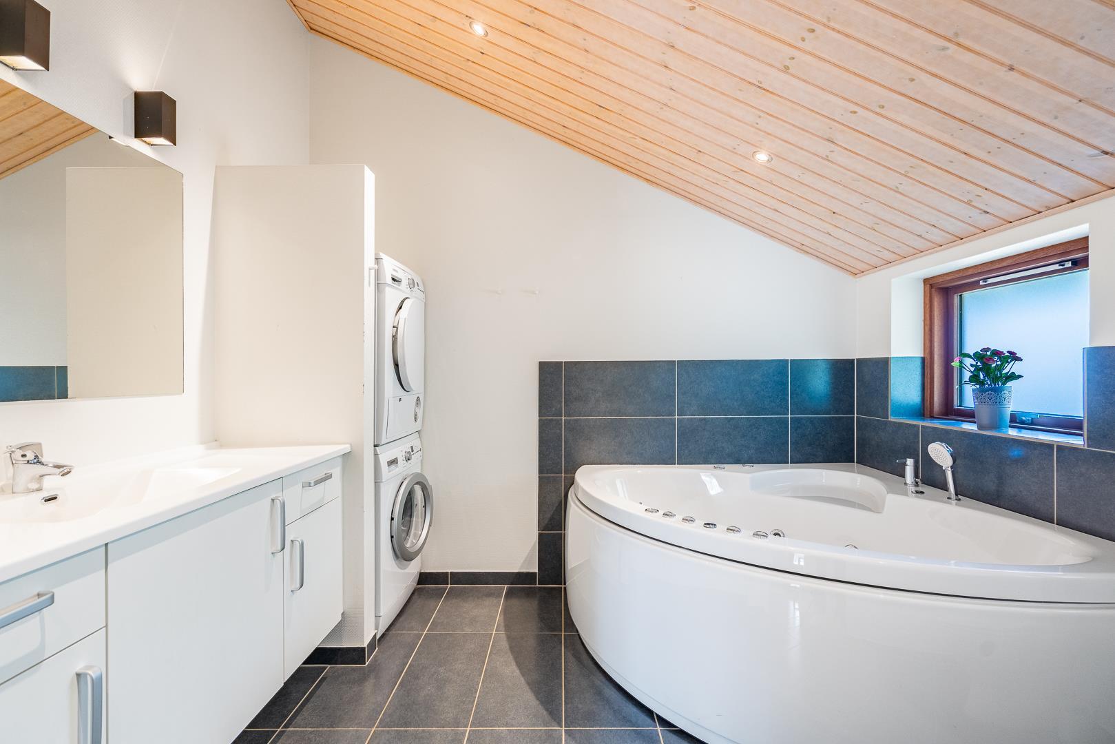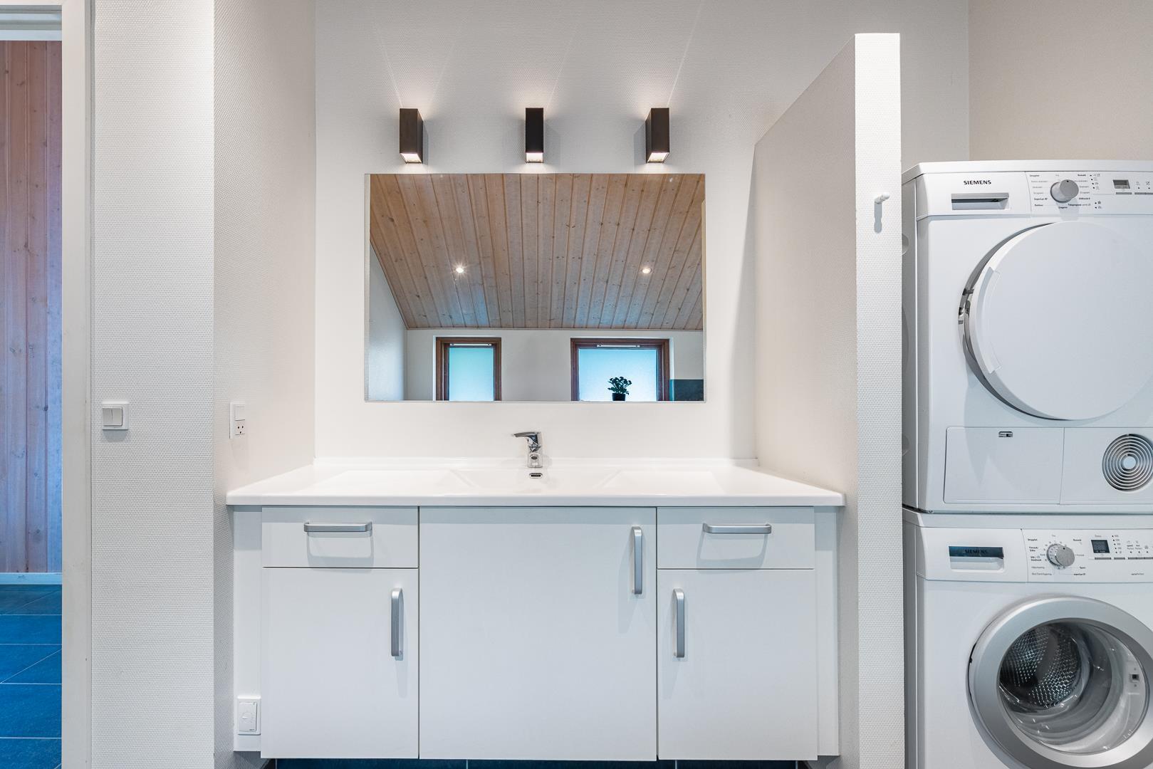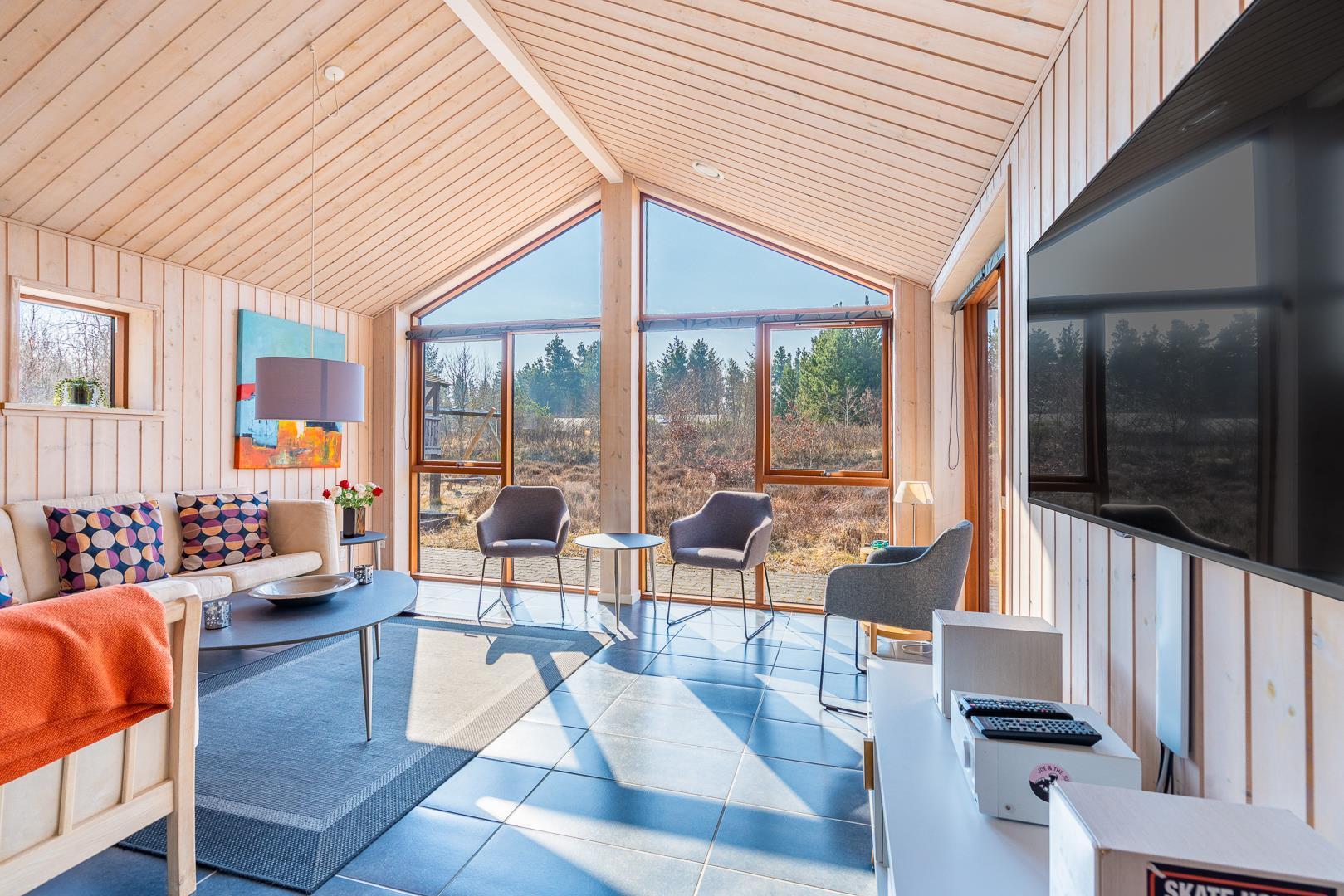 Das Haus liegt auf einer Lichtung zwischen Nadelbäumen und immergrüner Vegetation. Im Inneren wurde für eine gemütliche Atmosphäre gesorgt, ohne den modernen Komfort zu beeinträchtigen. Die Decken sind firsthoch und große Fensterfronten Richtung Süden lassen ein schönes Licht ein. Der Wohnbereich bietet eine zeitlose Küche und einen gemütlichen Bereich mit Esstisch und Sofaecke. Es gibt auch Zugang zu einem Schlafboden, auf dem die Kinder Piraten und Prinzessinnen spielen können. Das Haus ist mit TV in allen Schlafzimmern, zwei Hochstühlen, Kinderbett und Waschmaschine ausgestattet.
