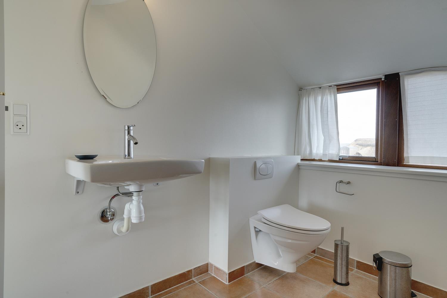 Zugang zum Schlafzimmer vom Eingang aus, von wo man auch zum Badezimmer gelangt. Das Schlafzimmer ist gut entfernt von der Aufenthaltsstube und wenn man ins Bett geht, kann man das Badezimmer benutzen ohne durch die Aufenthaltsräume zu gehen. Auf der 1.Etage gibt es 2 Schlafzimmer das eine Richtung Norden und das andere Richtung Süden, dazwischen ein Badezimmer mit Dusche, sowie eine Aussichtsstube Richtung Westen, von wo man den Sonnenuntergang über dem Meer genießen kann.
