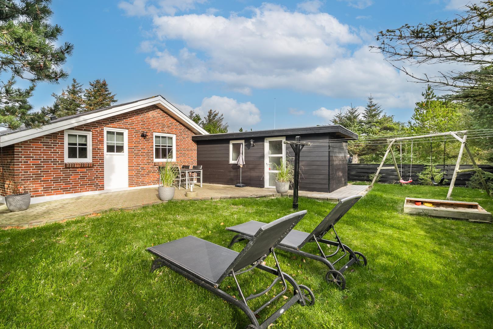 Dieses schöne, ansprechende Ferienhaus befindet sich auf einem schönen, teilweise bewachsenen Naturgrundstück nur wenige Gehminuten vom Ortskern entfernt. Das tolle Badezimmer, die Küche und die großen Schlafzimmer sind neueren Datums. Der Whirlpool kann gegen einen Aufpreis von dkk 350,00 pro Woche benutzt werden. Schöne, ungestörte Terrasse.