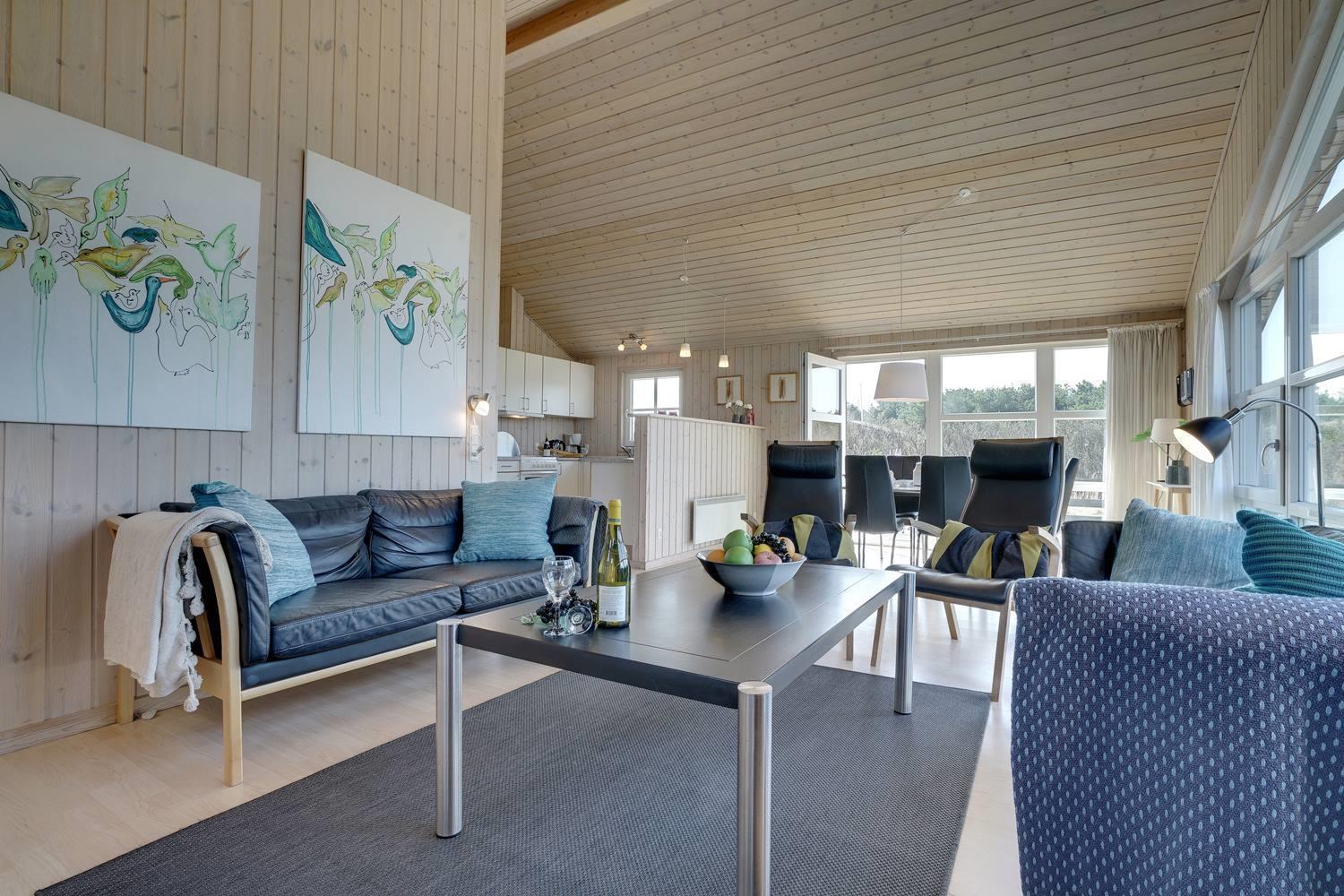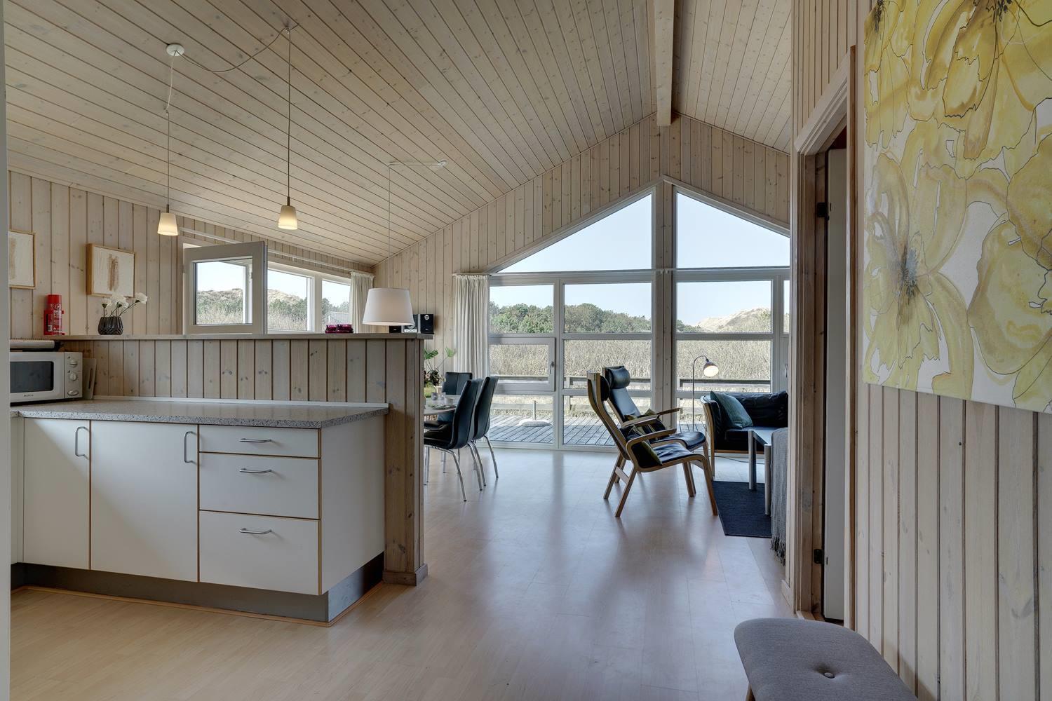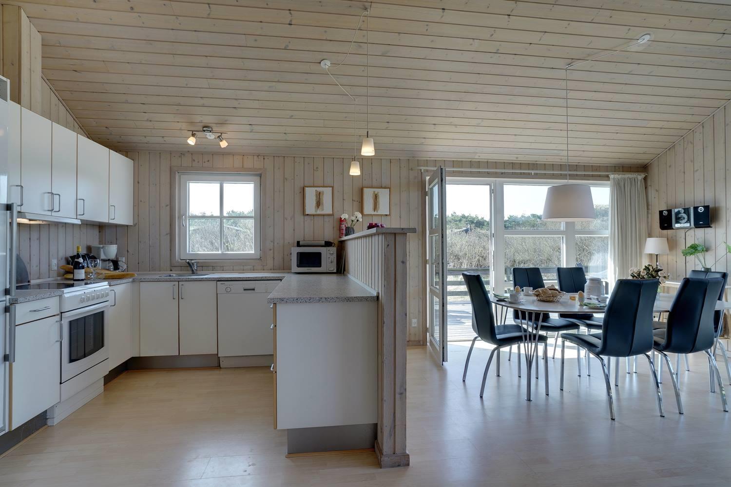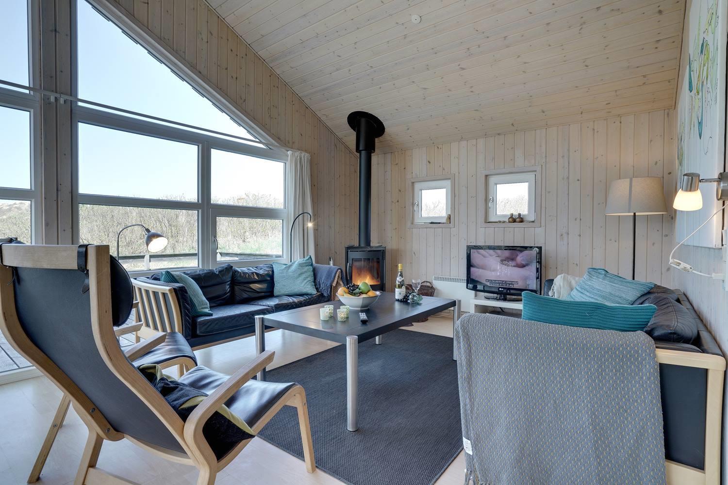 Auf einem wunderschönem, leicht hügeligen Naturgrundstück liegt dieses hübsche Ferienhaus. Von der umzäunten Holzterrasse, die drei Seiten des Hauses umgibt, hat man einen schönen Blick über die Dünen. Im großzügigem Eingangsbereich mit einem 20 qm Hems ist ausreichend Platz für z. Bsp. Jacken und Schuhe. Die Küche ist mit dem stilvoll eingerichteten Wohnbereich verbunden, der mit einem Kamin ausgestattet ist. Eines der beiden Duschbäder verfügt zusätzlich über einen Whirlpool und eine Sauna. Alle Böden im Haus sind mit Holz ausgelegt. Kostenloses WLAN.
