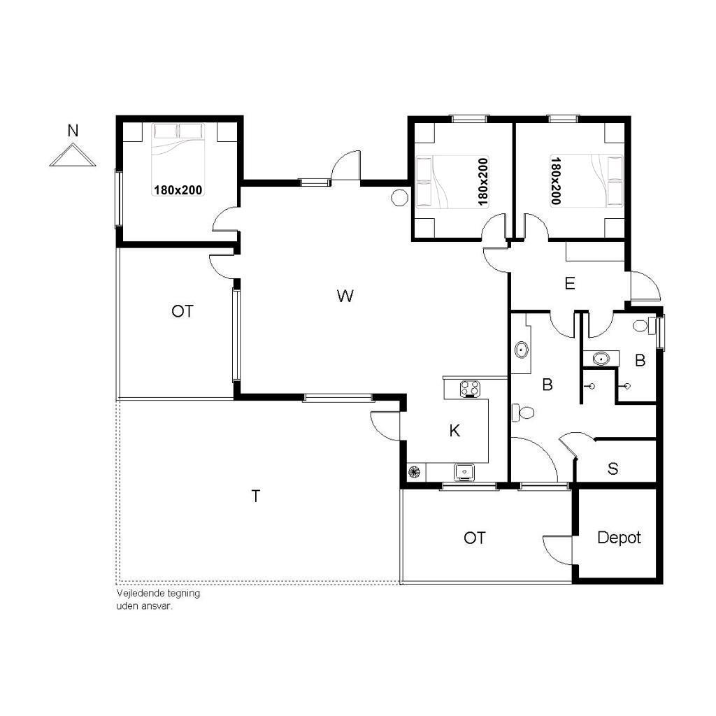 Bettengrösse: 3 Doppelbetten 180 x 200 cm.