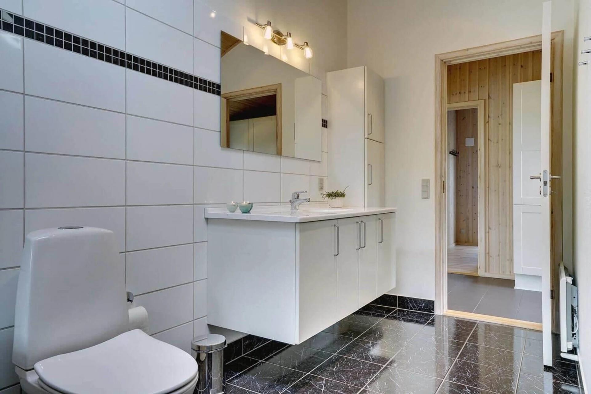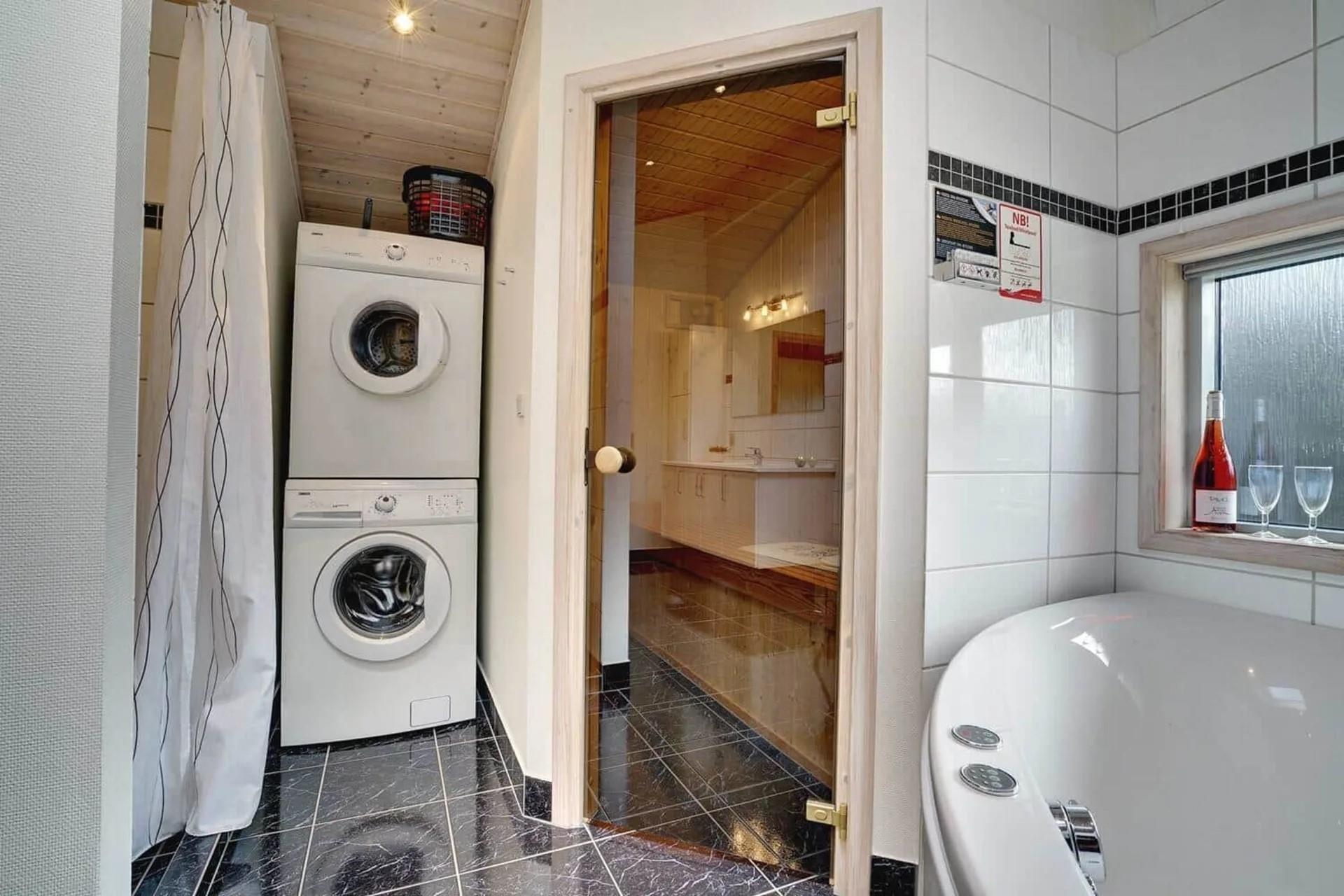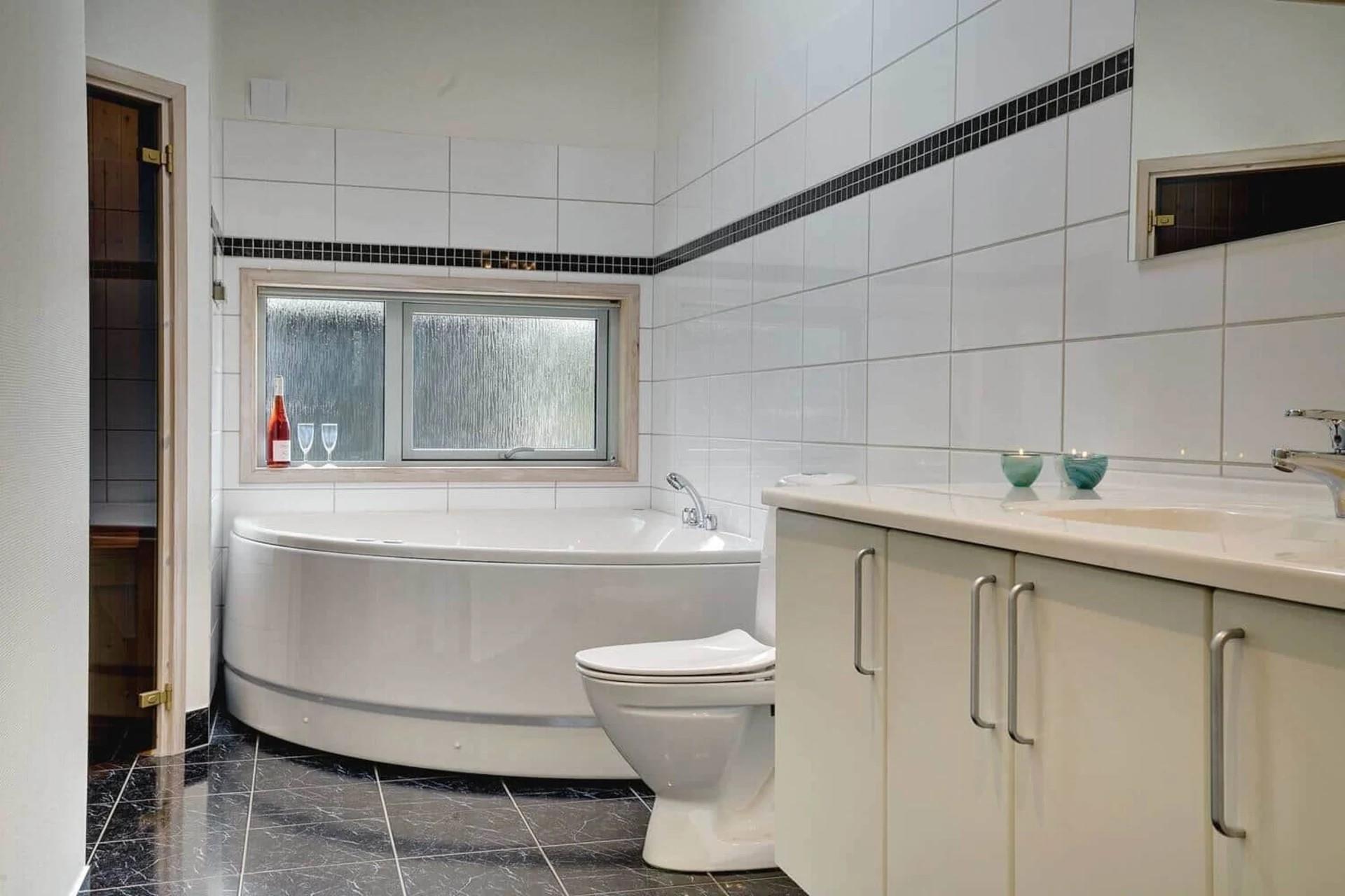 Das große Badezimmer verfügt über Sauna und Whirlpool.