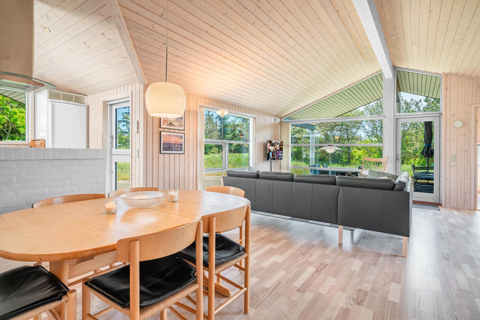 Das Haus ist besonders hell und freundlich und hat hohe Holzdecken.