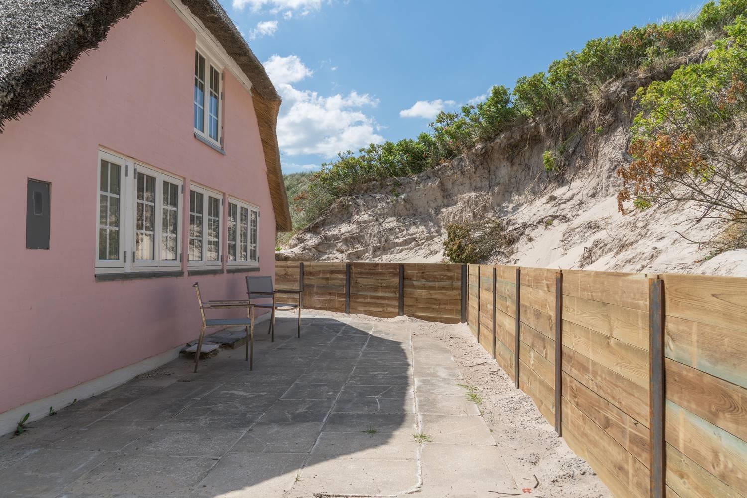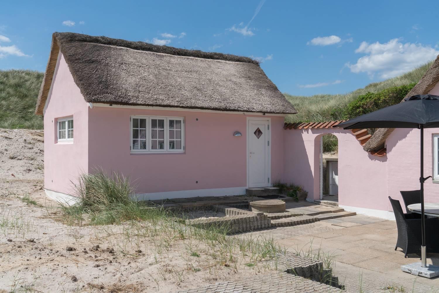 Mit seiner ungewöhnlichen rosa Fassade ist es ein echter Hingucker und zugleich ein echter Geheimtipp: versteckt hinter einer hohen Düne genießt ihr hier absolute Privatsphäre – und seid dennoch in wenigen Minuten direkt am Strand.