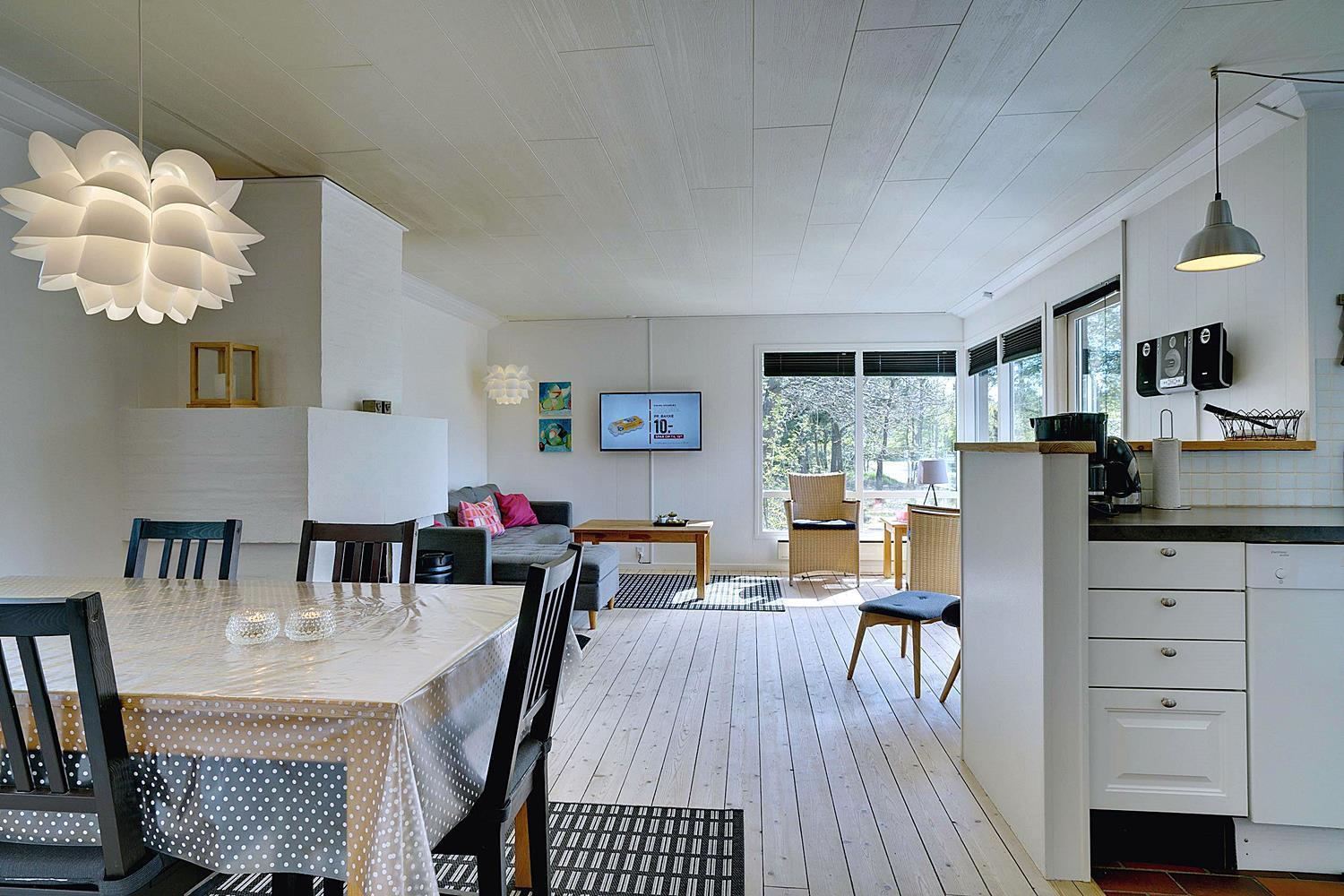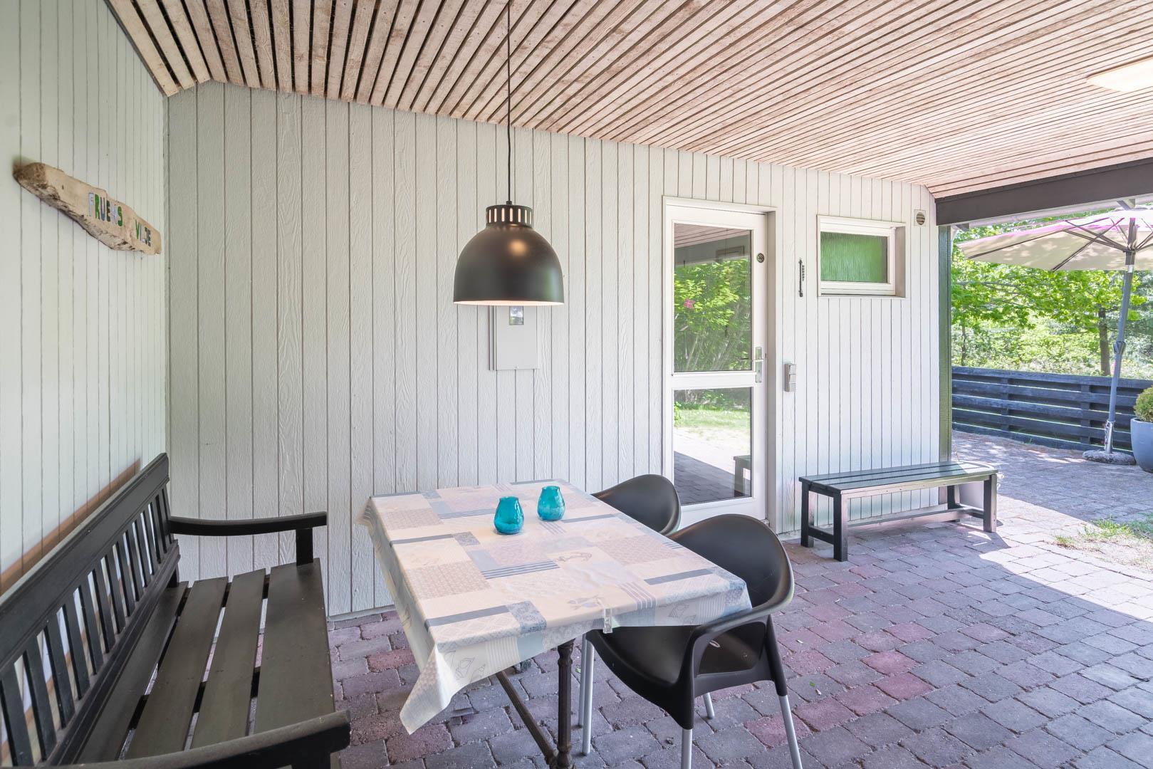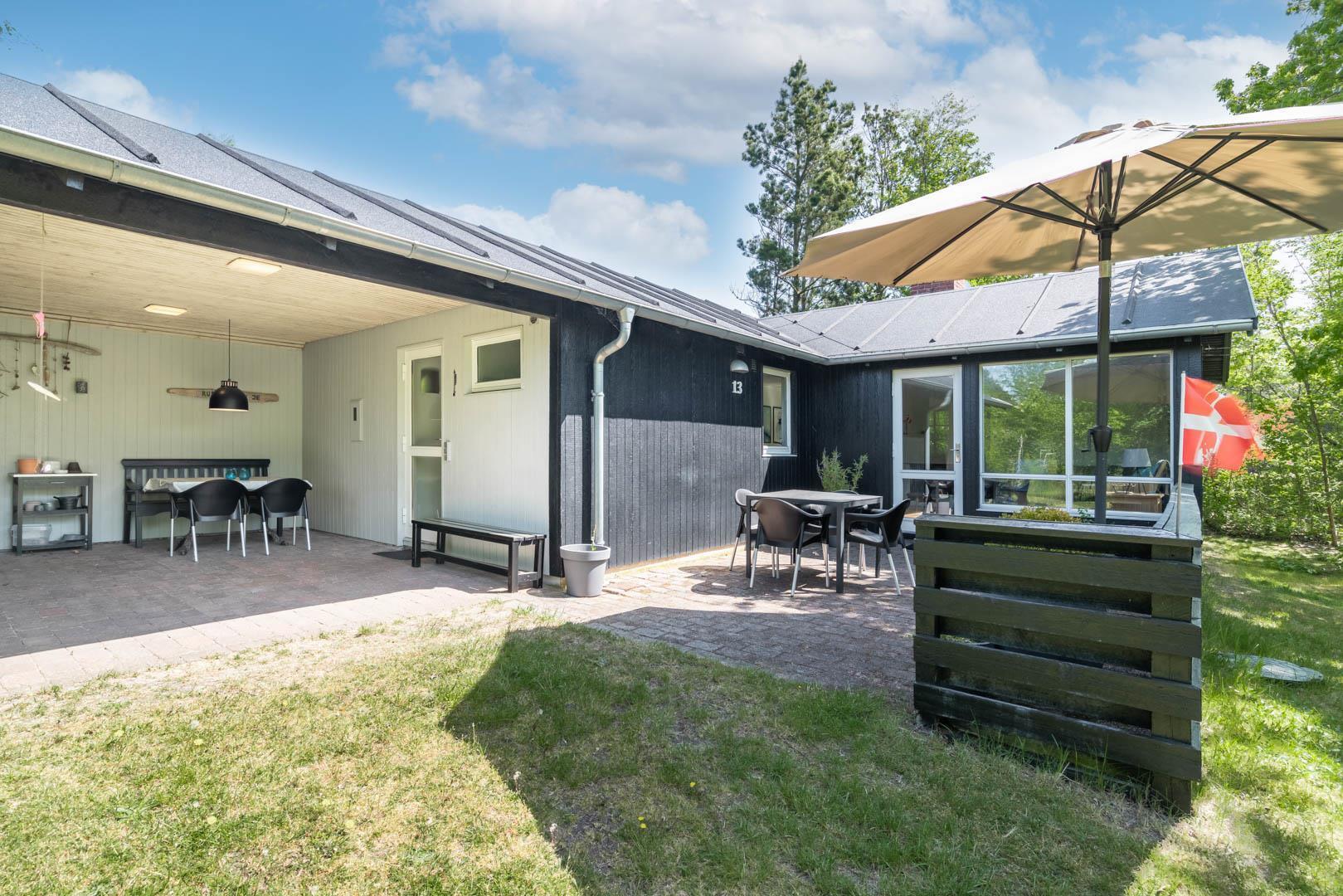 Auf einem schönen Naturgrundstück liegt dieses charmante und gemütliche Ferienhaus. Im Haus mit 3 Schlafzimmern herrscht eine schöne Ferienhausatmosphäre. Küche und Essbereich liegen in offener Verbindung zum gemütlichen Wohnzimmer mit Kamin. Großer Hauswirtschaftsraum mit Platz zum Lagern, mit Waschmaschine und Trockner und Zugang zur Außendusche mit heißem Wasser. Das Haus verfügt über mehrere Terrassen, auf denen Sie den ganzen Tag die Sonne genießen können, sowie über gemütliche überdachte Außenbereiche. Es gibt eine Petanque-Bahn auf dem Grundstück und einen Schuppen. Ebenso gibt es eine energiesparende Wärmepumpe im Haus.