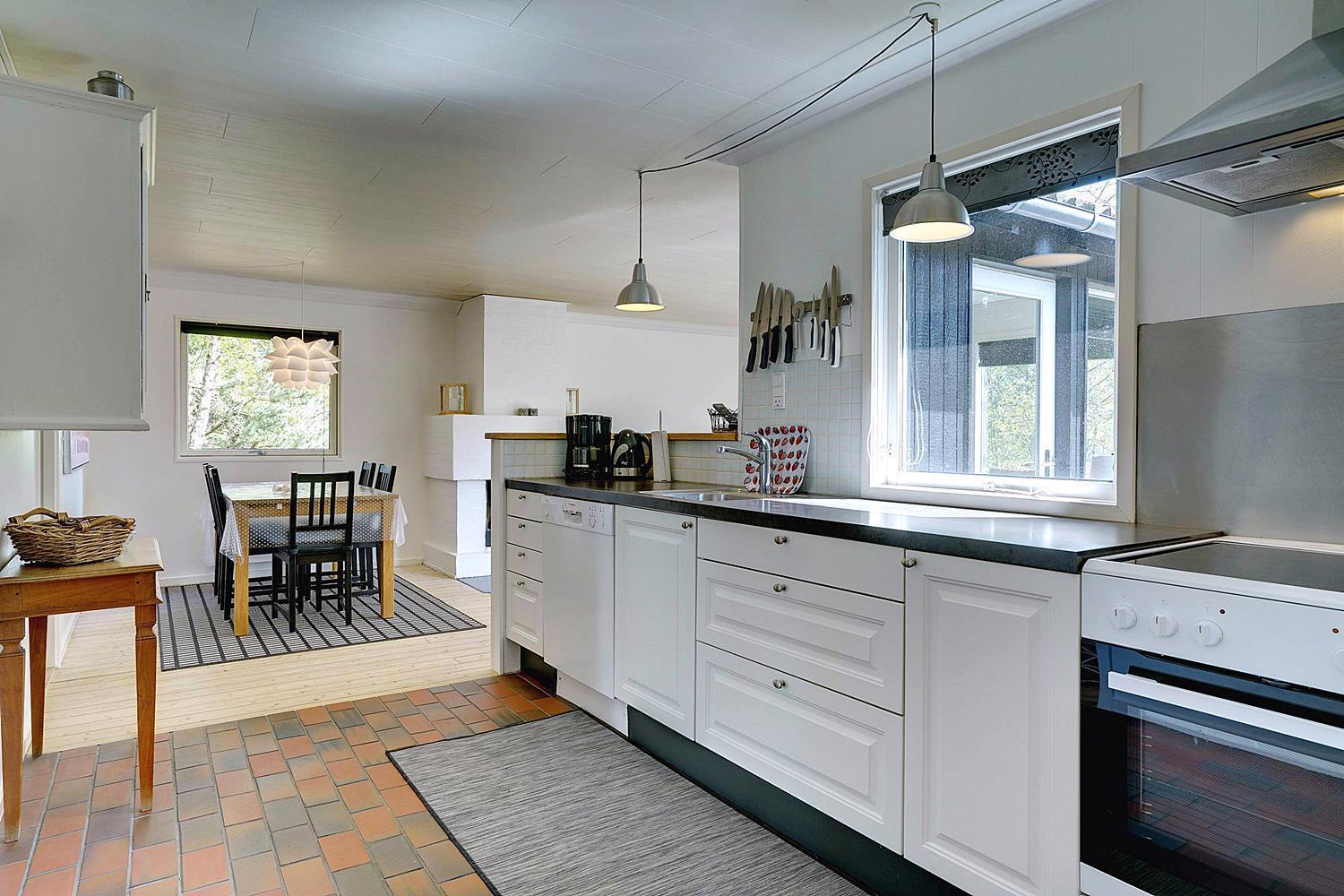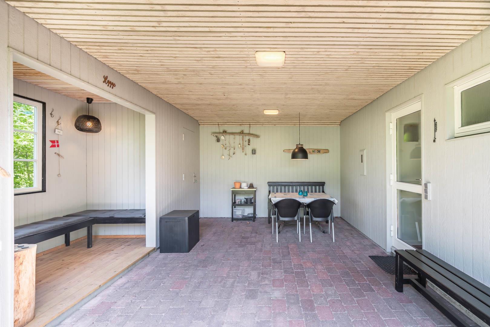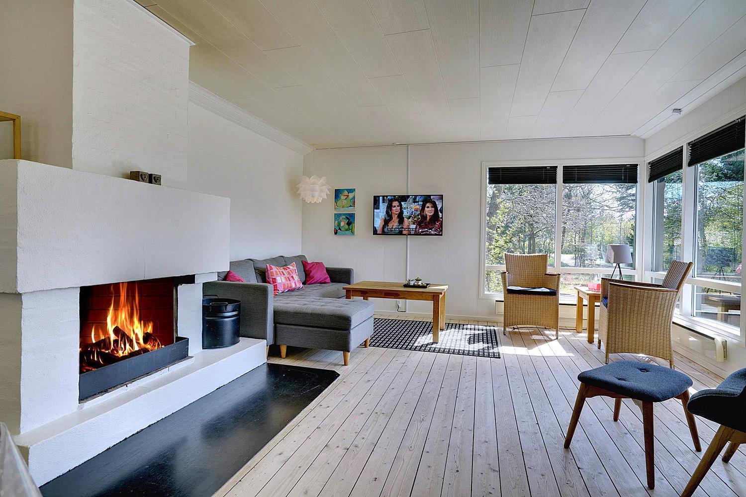 Auf einem schönen Naturgrundstück liegt dieses charmante und gemütliche Ferienhaus. Im Haus mit 3 Schlafzimmern herrscht eine schöne Ferienhausatmosphäre. Küche und Essbereich liegen in offener Verbindung zum gemütlichen Wohnzimmer mit Kamin. Großer Hauswirtschaftsraum mit Platz zum Lagern, mit Waschmaschine und Trockner und Zugang zur Außendusche mit heißem Wasser. Das Haus verfügt über mehrere Terrassen, auf denen Sie den ganzen Tag die Sonne genießen können, sowie über gemütliche überdachte Außenbereiche. Es gibt eine Petanque-Bahn auf dem Grundstück und einen Schuppen. Ebenso gibt es eine energiesparende Wärmepumpe im Haus.