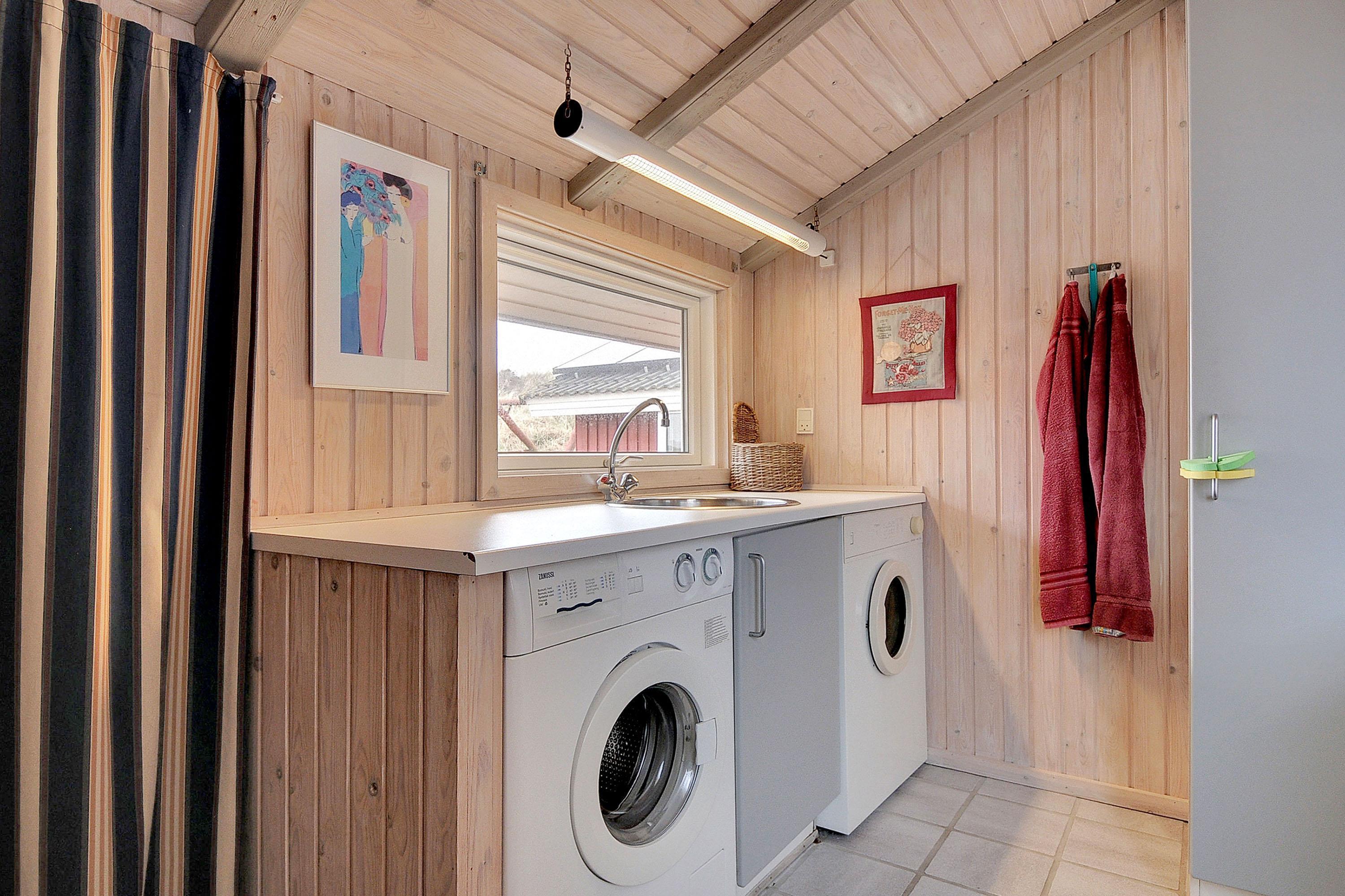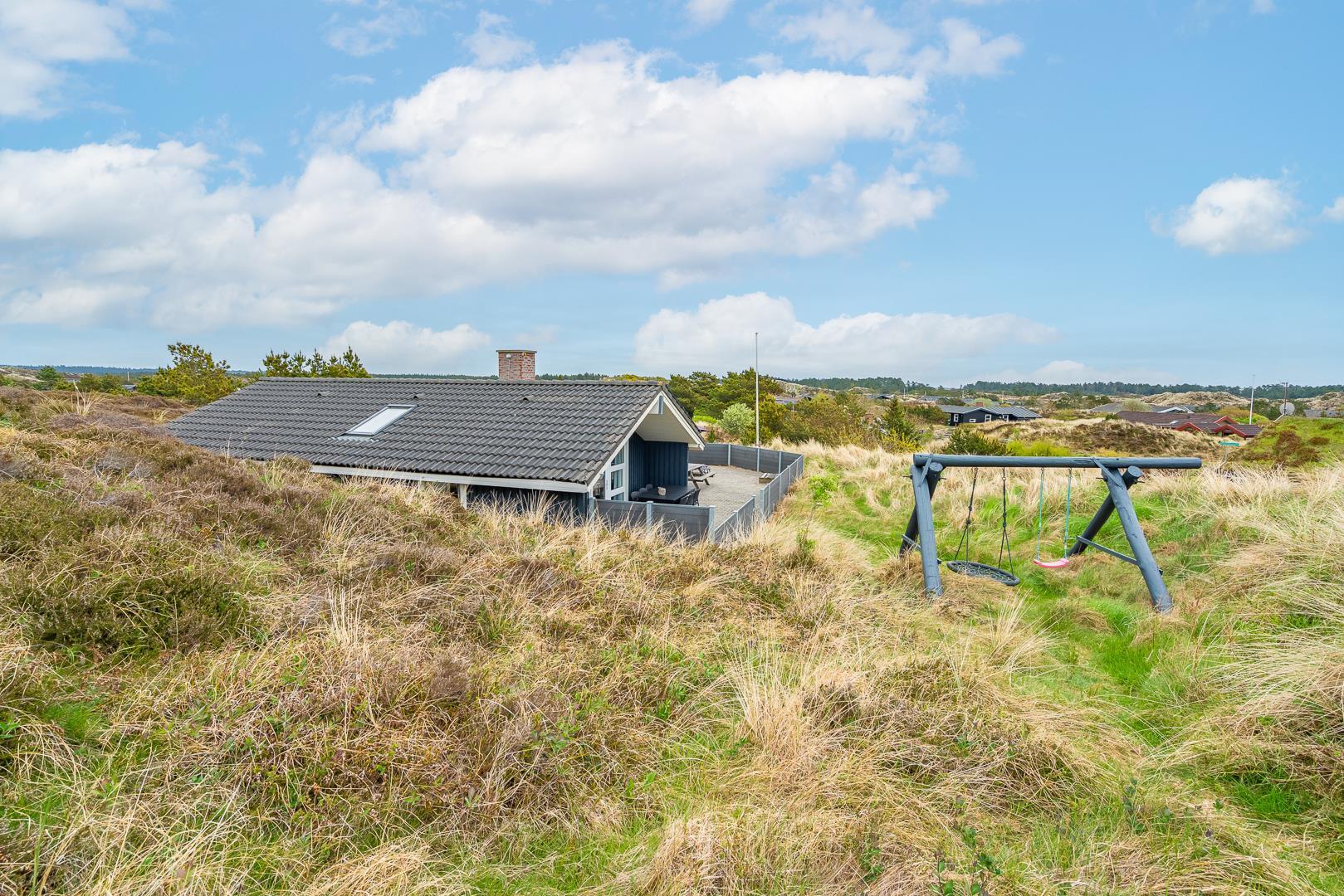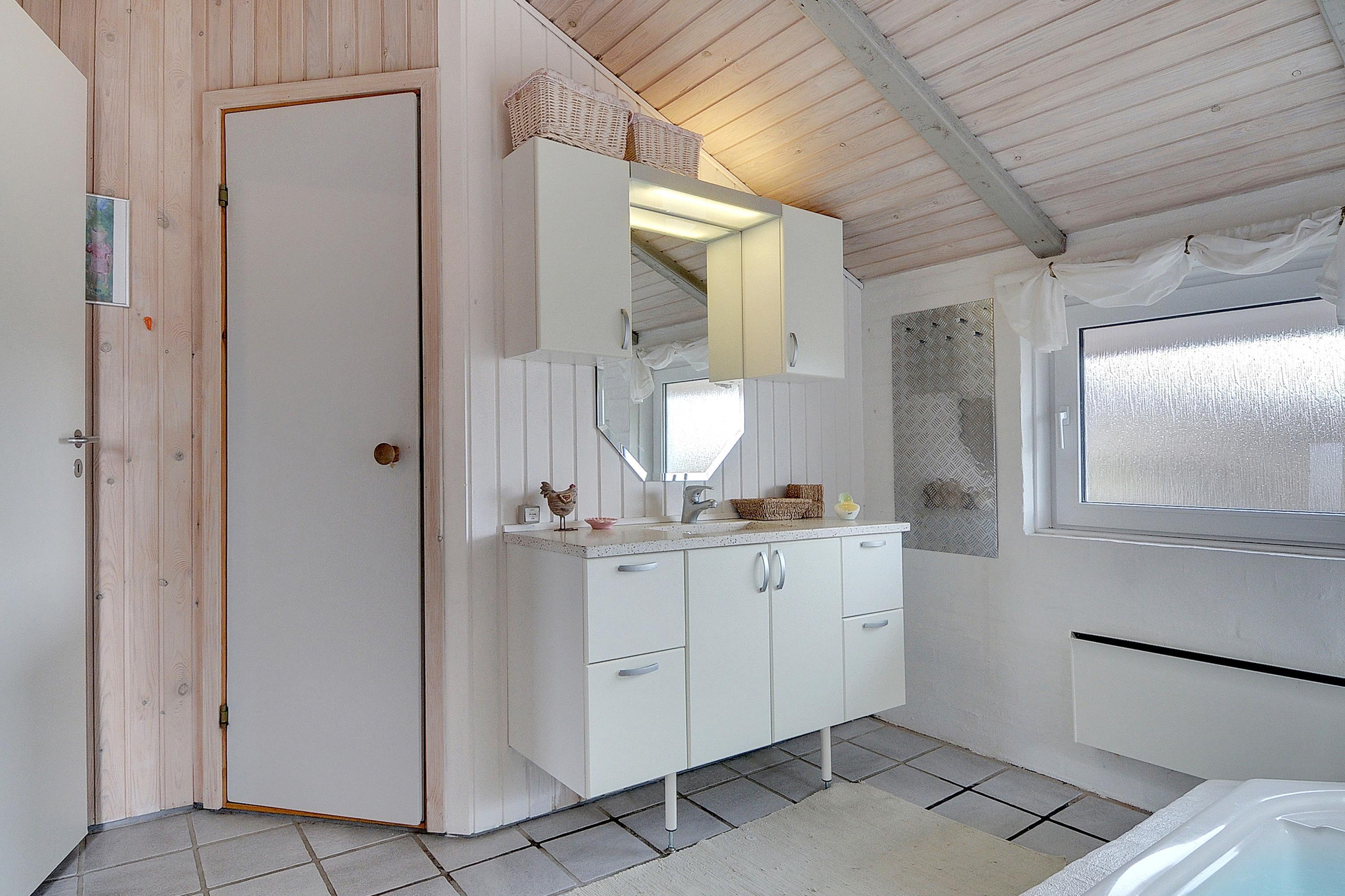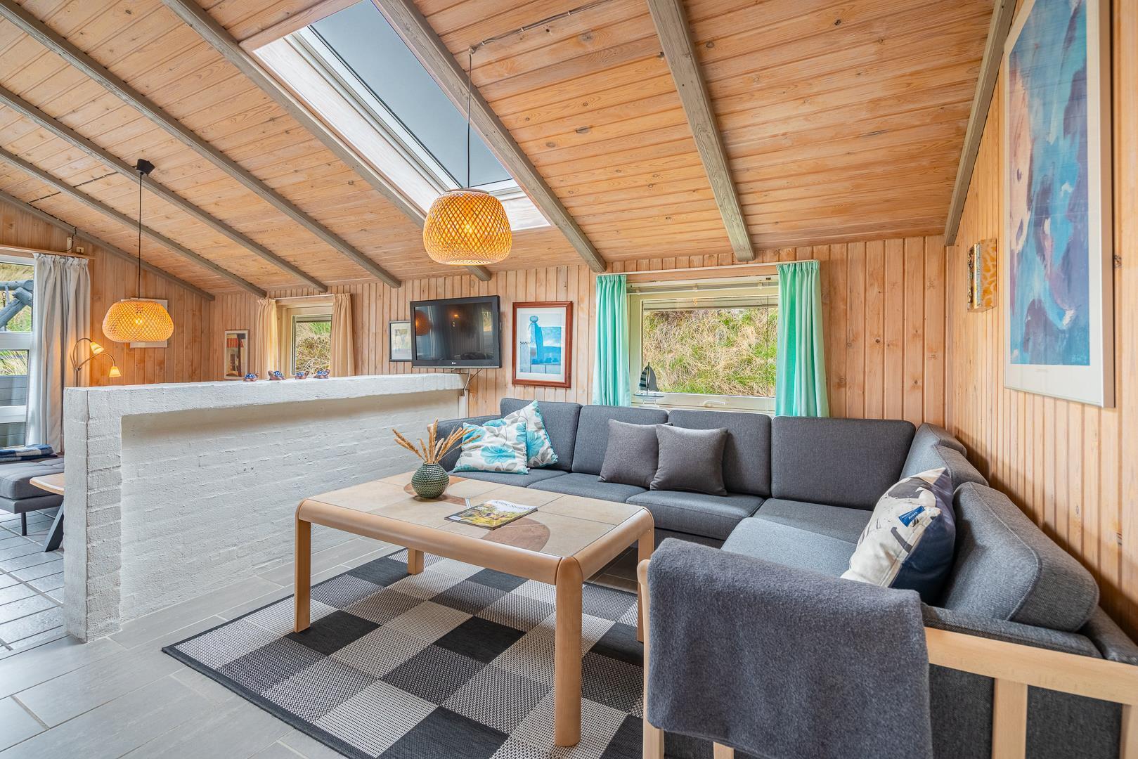 Dieses gemütliche Ferienhaus ist hoch gelegen und hat eine schöne Aussicht über das Sommerhausgebiet. Am Haus befindet sich eine schöne, große, Terrasse in Richtung Süden. Die schöne Küche mit viel Arbeitsfläche ist mit dem Wohn- und Essbereich kombiniert. In diesem Teil des Wohnbereichs befindet sich auch der Fernseher. Über eine Stufe gelangt man in einen weiteren Teil des Wohnbereichs hinunter, wo man vom Ecksofa aus wunderbar die Flammen im großen Brennofen mit Glasscheibe betrachten kann. Von hier aus besteht ebenfalls Zugang zur Terrasse. Im Haus befinden sich ein großes Badezimmer mit großem 4-Pers-Whirlpool und Sauna sowie ein zusätzliches WC. Im Hauswirtschaftsraum stehen eine Waschmaschine und ein Trockner zur Verfügung. Ein Safe ist ebenfalls vorhanden.