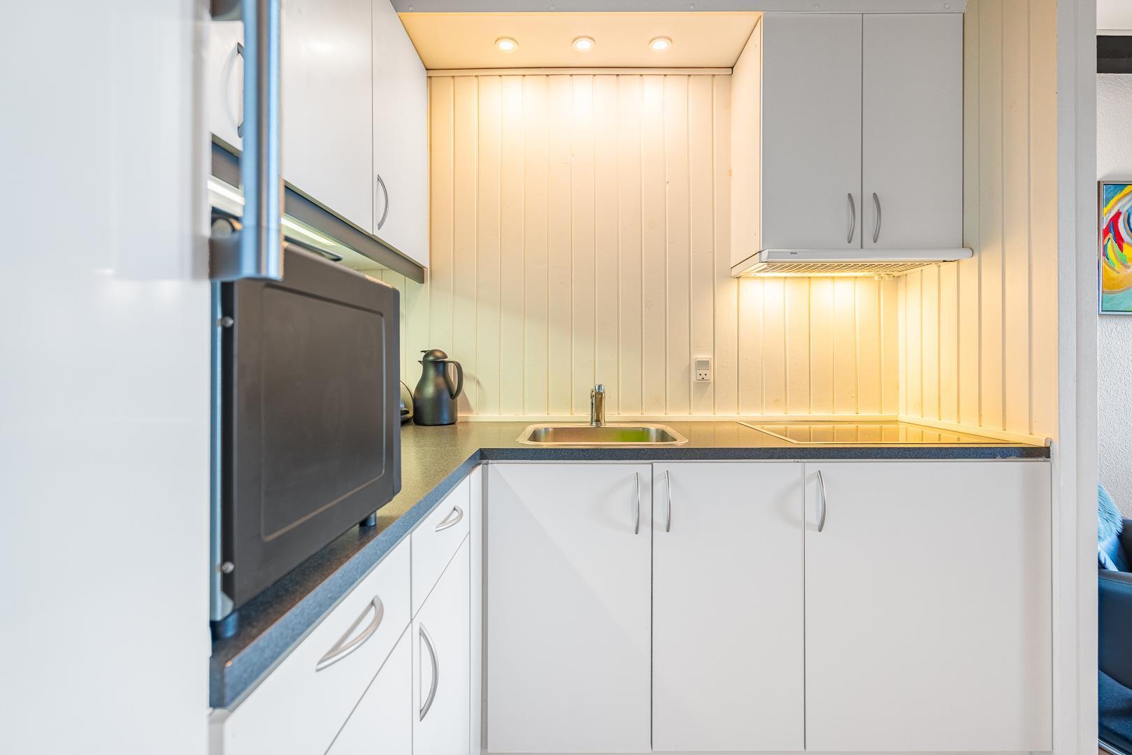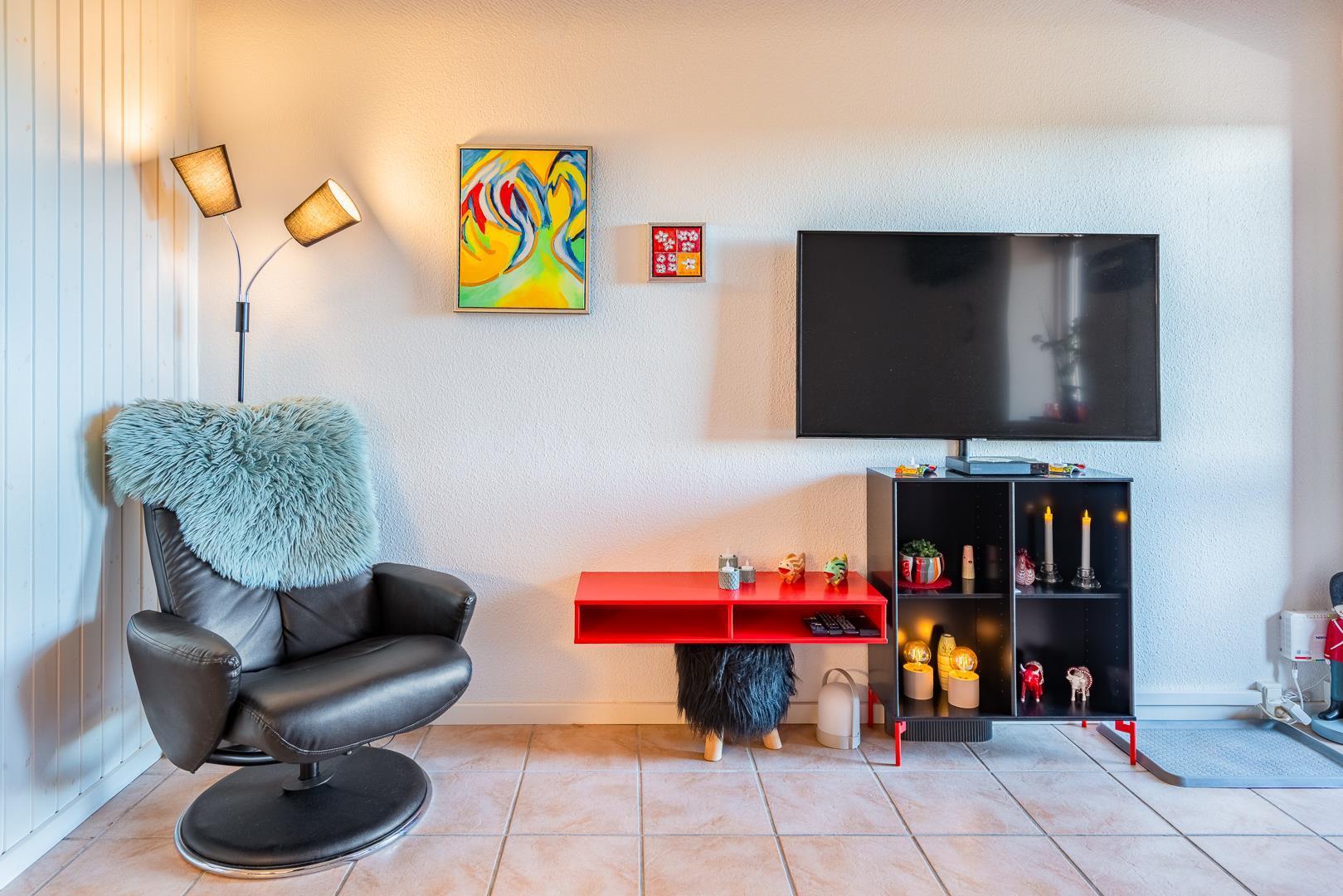 Die Wohnung ist geräumig und mit guten Möbeln ausgestattet. Modern eingerichtetes Wohnzimmer mit integrierter Küche und Essecke. Schönes Badezimmer.