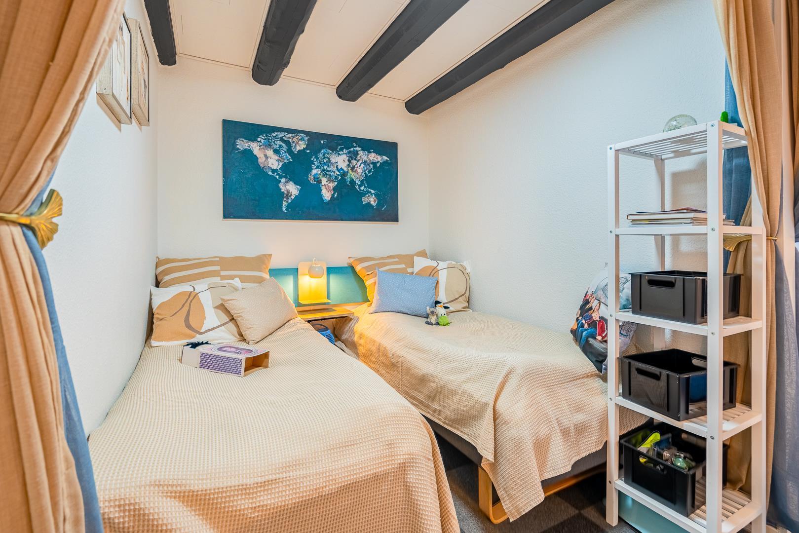 Bettengrösse: 1 Doppelbett 160 x 200 cm + 2 Einzelbetten 90 x 200 cm.