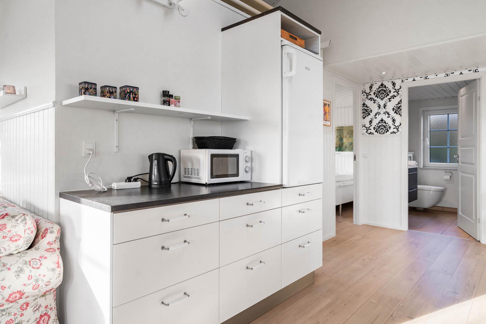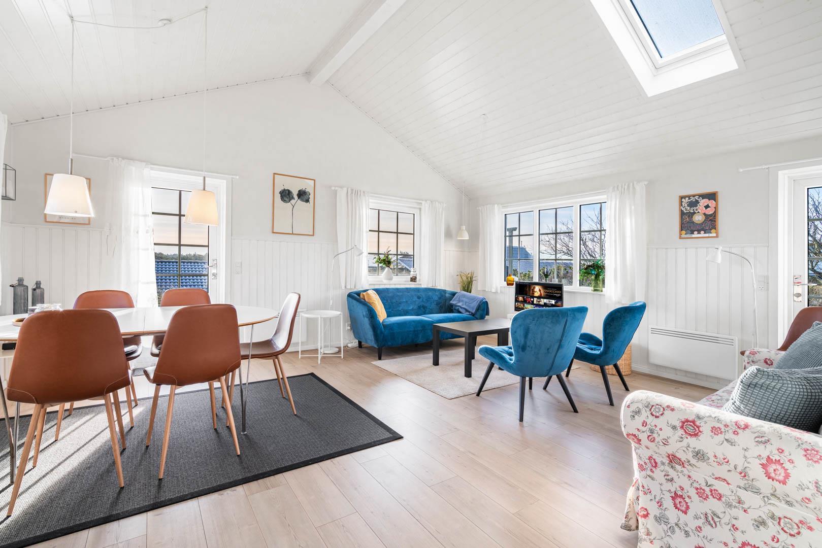 Auf einem schönen Grundstück an einer Sackgasse nahe am Wasser und mit wundervoller Aussicht über die Umgebung, liegt dieses schöne Ferienhaus, welches komplett renoviert ist. Das Haus har eine neue Küche, welche offen verbunden ist mit der Stube. 2 schöne neue Badezimmer mit Dusche, in dem einen ist auch eine Sauna. Es gibt 3 helle Schlafzimmer. Alles ist in hellen und freundlichen Farben gestaltet. Rund um das Haus gibt es ungestörte Terrassen, wo man immer die Möglichkeit hat eine windgeschützte Ecke zu finden.