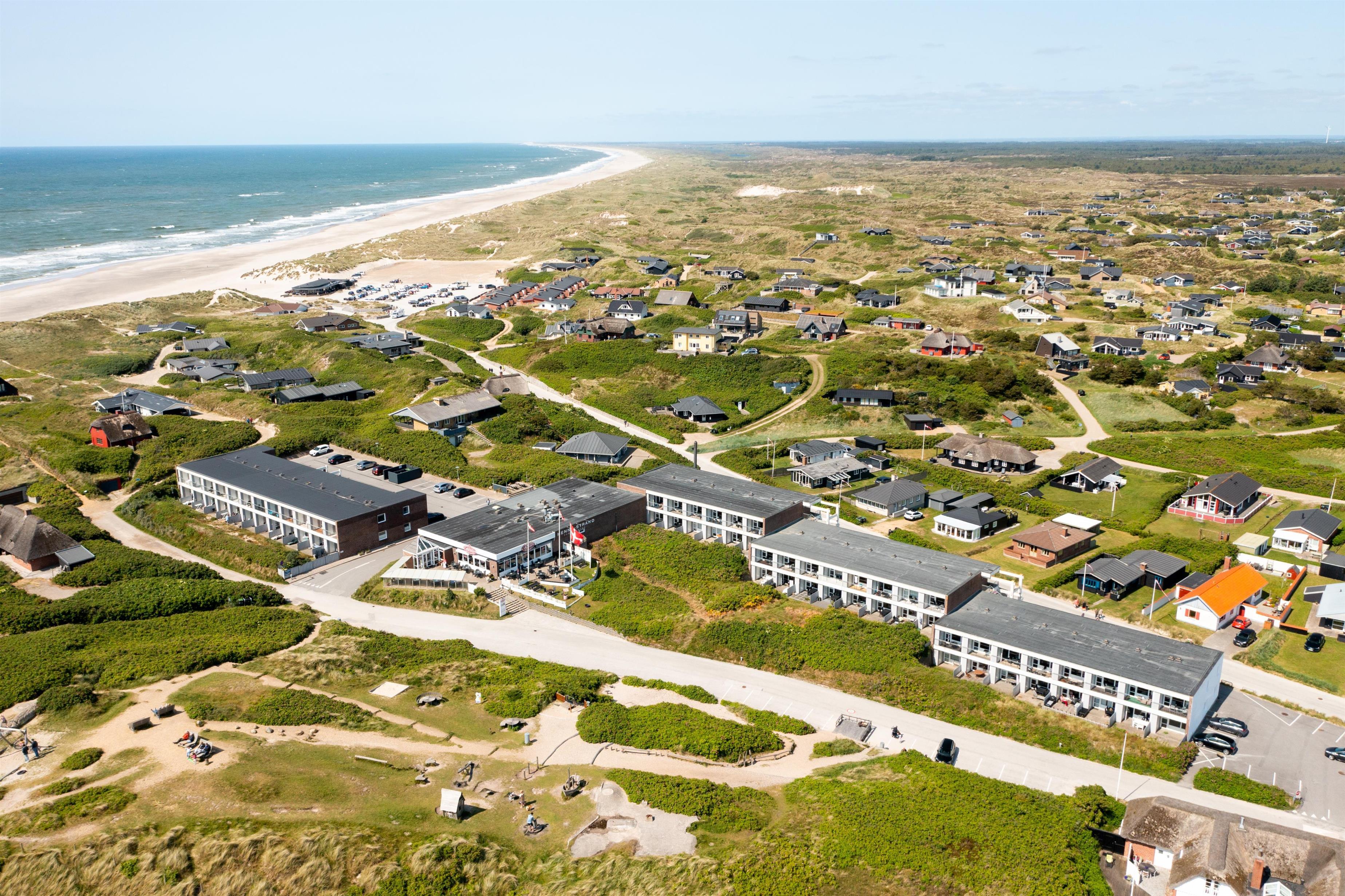 Das Ferienzentrum Henne Strand ist eine schöne Oase mit vielen Möglichkeiten und vielen Restaurants. Egal, ob Sie auf der Suche nach einem echten Strandort mit vielen Einkaufsmöglichkeiten sind, einen aktiven Urlaub verbringen oder einfach nur in der Nähe der Nordsee wohnen möchten, in Henne Strand gibt es alle Möglichkeiten. Im Ferienzentrum selbst gibt es viele Einrichtungen. Wenn Sie Golf spielen, gibt es in Henne By einen 18-Loch-Golfplatz – nur 3 km von der Wohnung entfernt. Hier gibt es auch ein Geschäft mit Bernstein, ein Reitzentrum und Henne Kirkeby Kro, ein einzigartiges Michelin-Gourmet-Erlebnis. In Blåbjerg Plantage gibt es eine fantastische Mountainbike-Route und schöne markierte Wege, die bei jedem Wetter sowohl zu Fuß als auch mit dem Fahrrad genutzt werden können. Das restaurierte Filsø liegt südöstlich von Henne Strand und bietet ein einzigartiges Naturerlebnis der Extraklasse. Außerdem ist die Nordsee 100-200 m von den Wohnungen entfernt. Ein Erlebnis, das jeden Tag im Jahr neue malerische Eindrücke bietet.