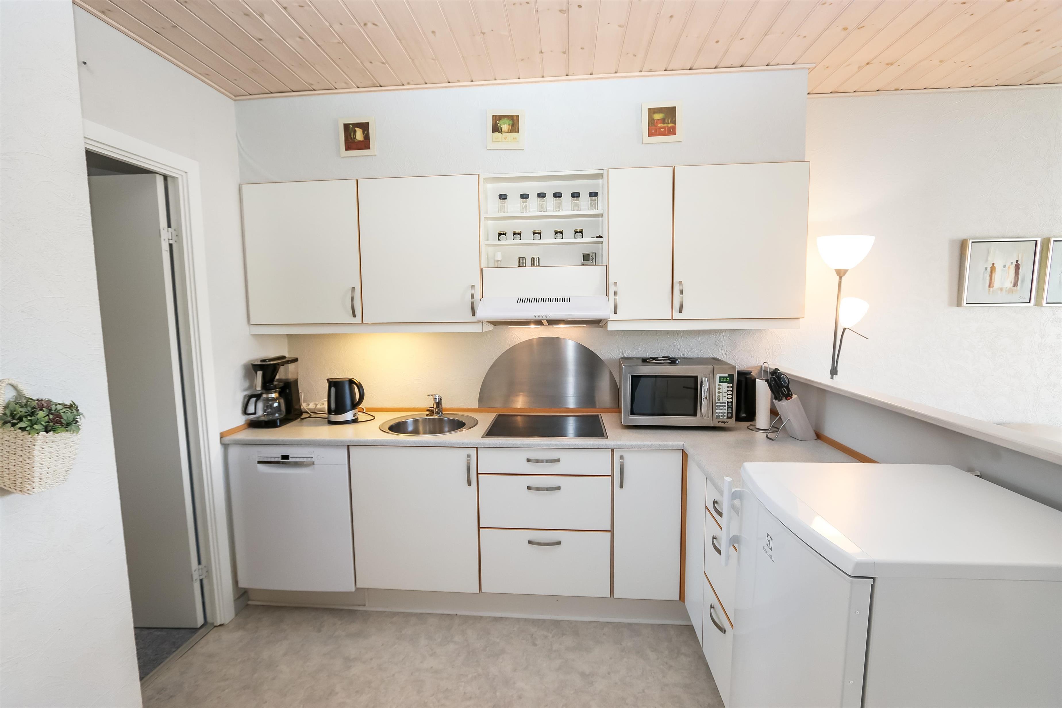 Neu renovierte Ferienwohnung für 4 Personen im 1. Stock. Sie verfügt über ein Schlafzimmer mit einem Doppelbett und einem Einzelbett sowie über eine kombinierte Küche und Wohnzimmer. Das Wohnzimmer ist mit Polster- und Ledermöbeln, Schlafsofa, Radio und TV sowie neuen Esszimmerstühlen eingerichtet. Die Küche ist ausgestattet mit einem keramischen Elektrokochfeld, einem großen Kühlschrank mit Gefrierfach, Dunstabzugshaube und einem neuen Einbauofen. Badezimmer mit Toilette, Waschbecken, Duschkabine und Fußbodenheizung.
