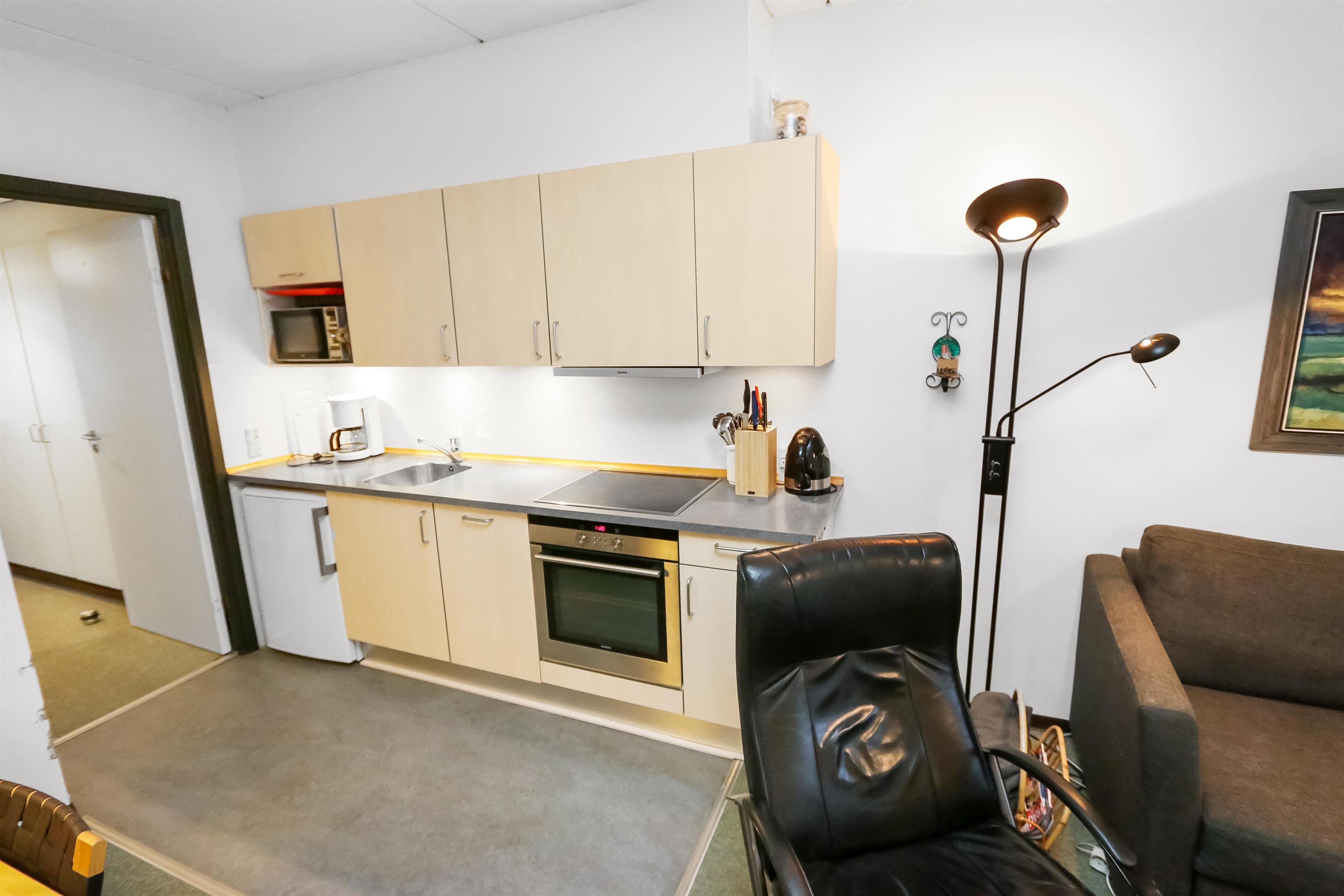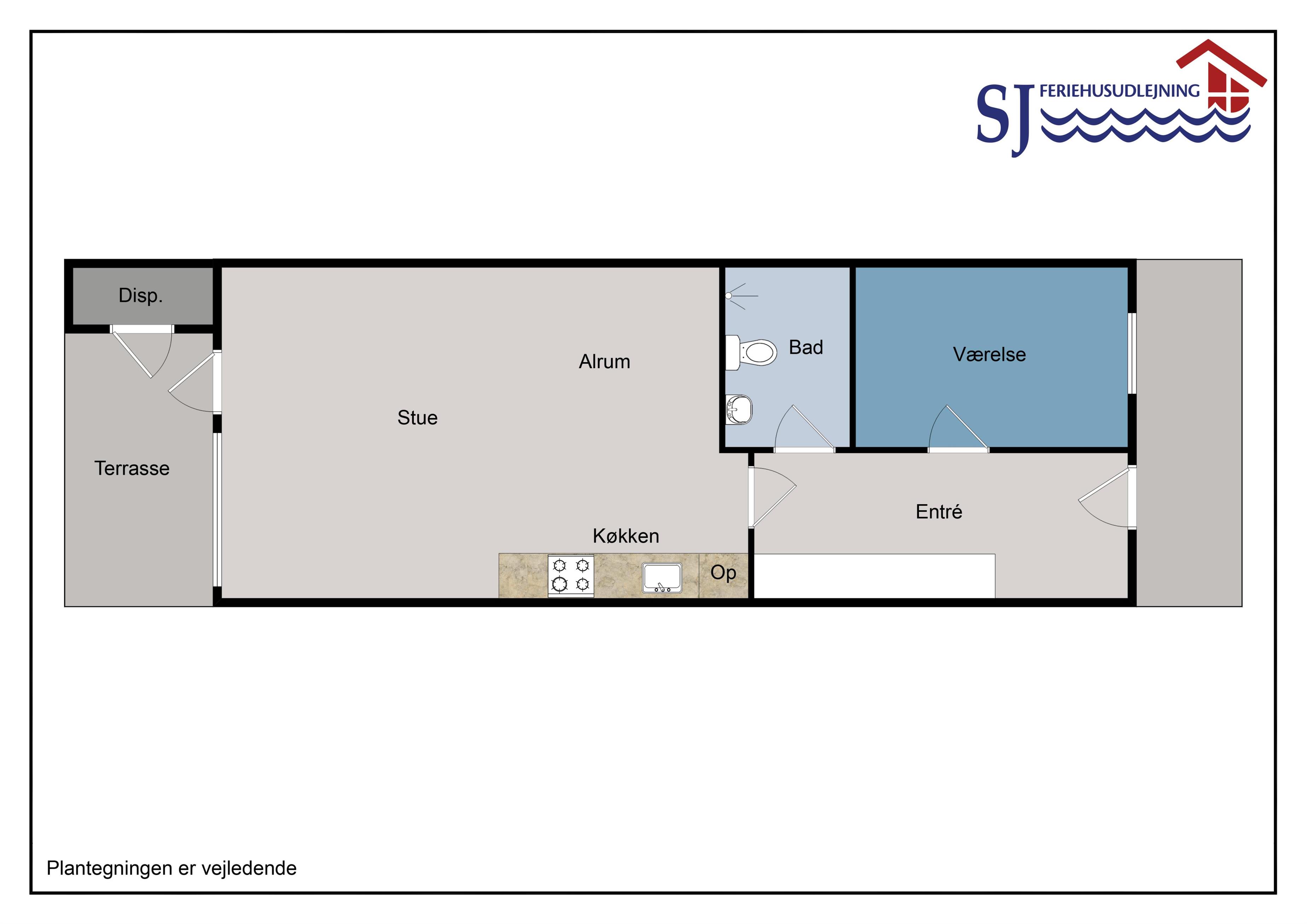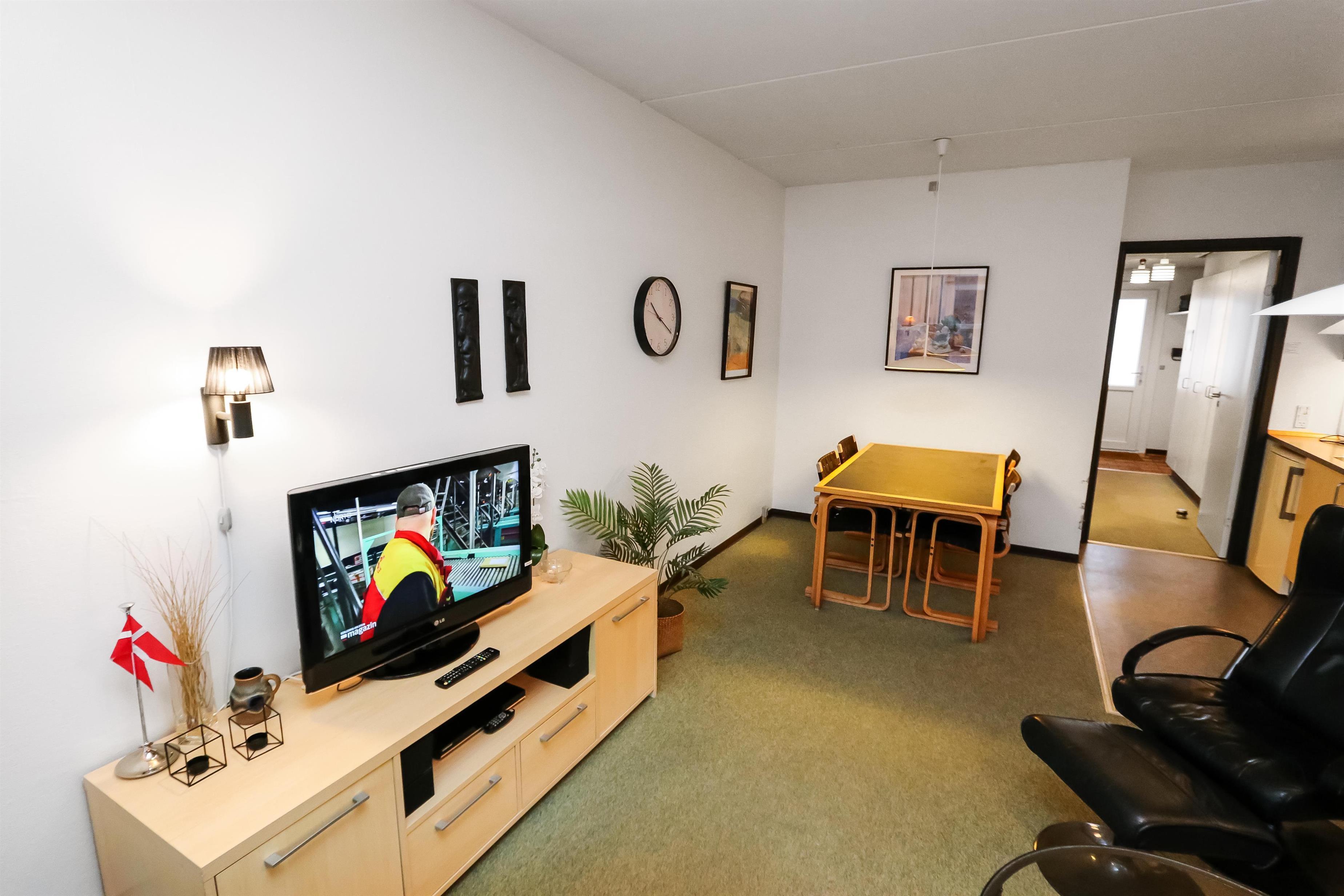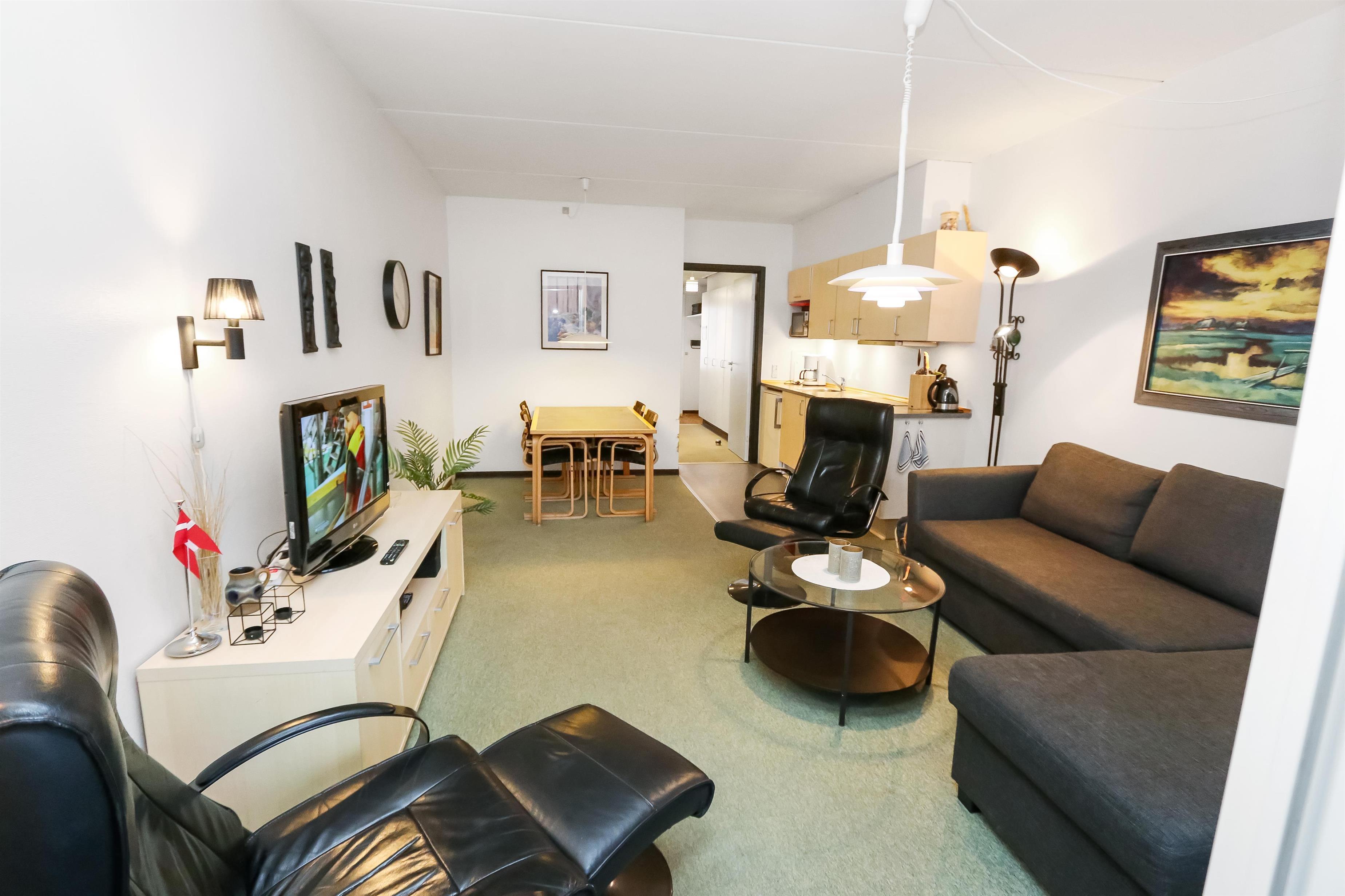 Schön eingerichtete Ferienwohnung mit Platz für 4 Personen. 1 Schlafzimmer: 1 DB + 1E sowie Teppich auf dem Fußboden. Kombiniertes Wohnzimmer und Küche mit Teppich im Wohnzimmer und Linoleum in der Küchenabteilung. Das Wohnzimmer ist mit Polster- und Ledermöbel eingerichtet und das Sofa kann ausgeschlagen werden, dass für 2 Personen Platz ist, Kabel-TV, DVD. Die Küche ist mit Glasskeramischem Herd, Abzugshaube, Kühlschrank mit kleiner Frostbox, Spülmaschine und Mikrowelle eingerichtet. Badezimmer mit Toilette, Waschbecken und Dusche. Vom Wohnzimmer ist der Ausgang zu einer schönen kleinen teilweiseüberdeckten und eingezäunten Terrasse mit Gartenmöbel.