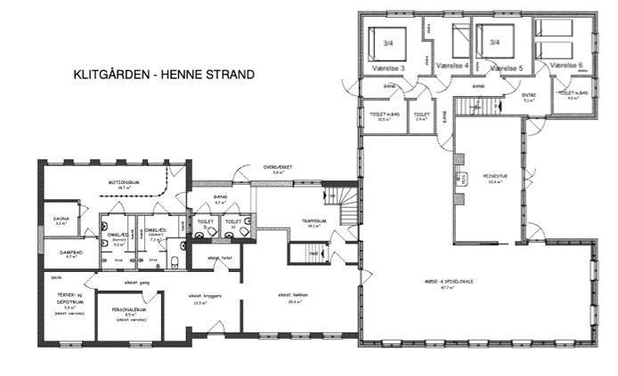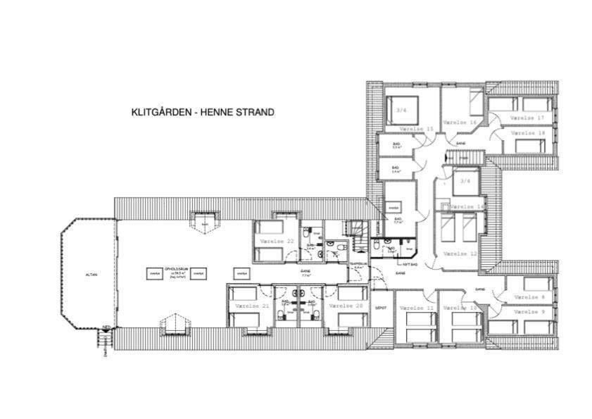 Klitgården, der Ort wo Altes und Neues Hand in Hand gehen, hat eine attraktive Lage am Henne Strand, und es sind nur 10 Minuten zu Fuß zum Strand und zum pulsierenden Stadtleben, Restaurants und Caféatmosphäre. Klitgården wird an große Gruppen mit 30-40 Personen vermietet.