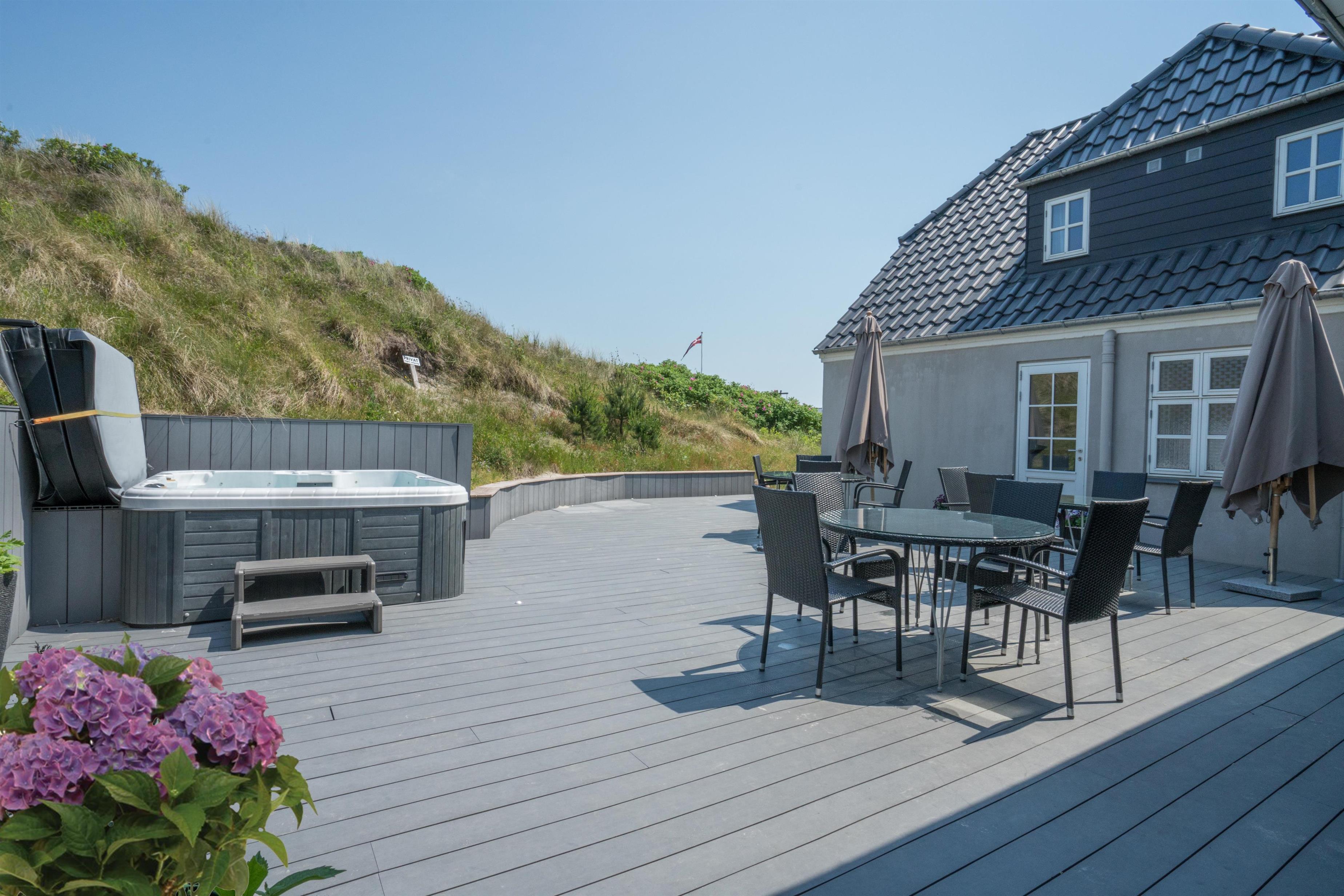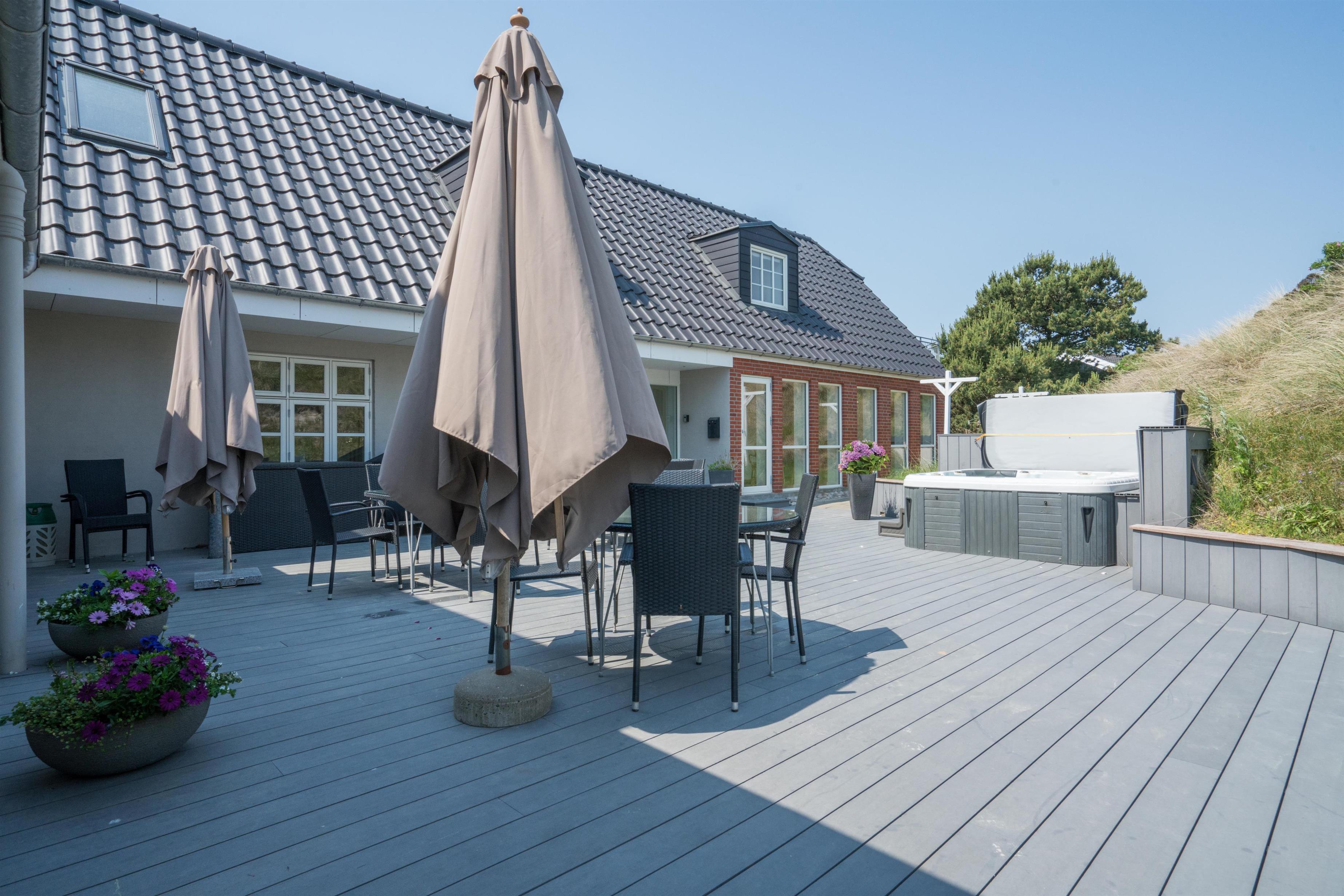 Klitgården bei Henne Strand bietet ein großes Ferienhaus mit Wellness, Kamin und Nähe zum Strand für erholsame Urlaubstage.