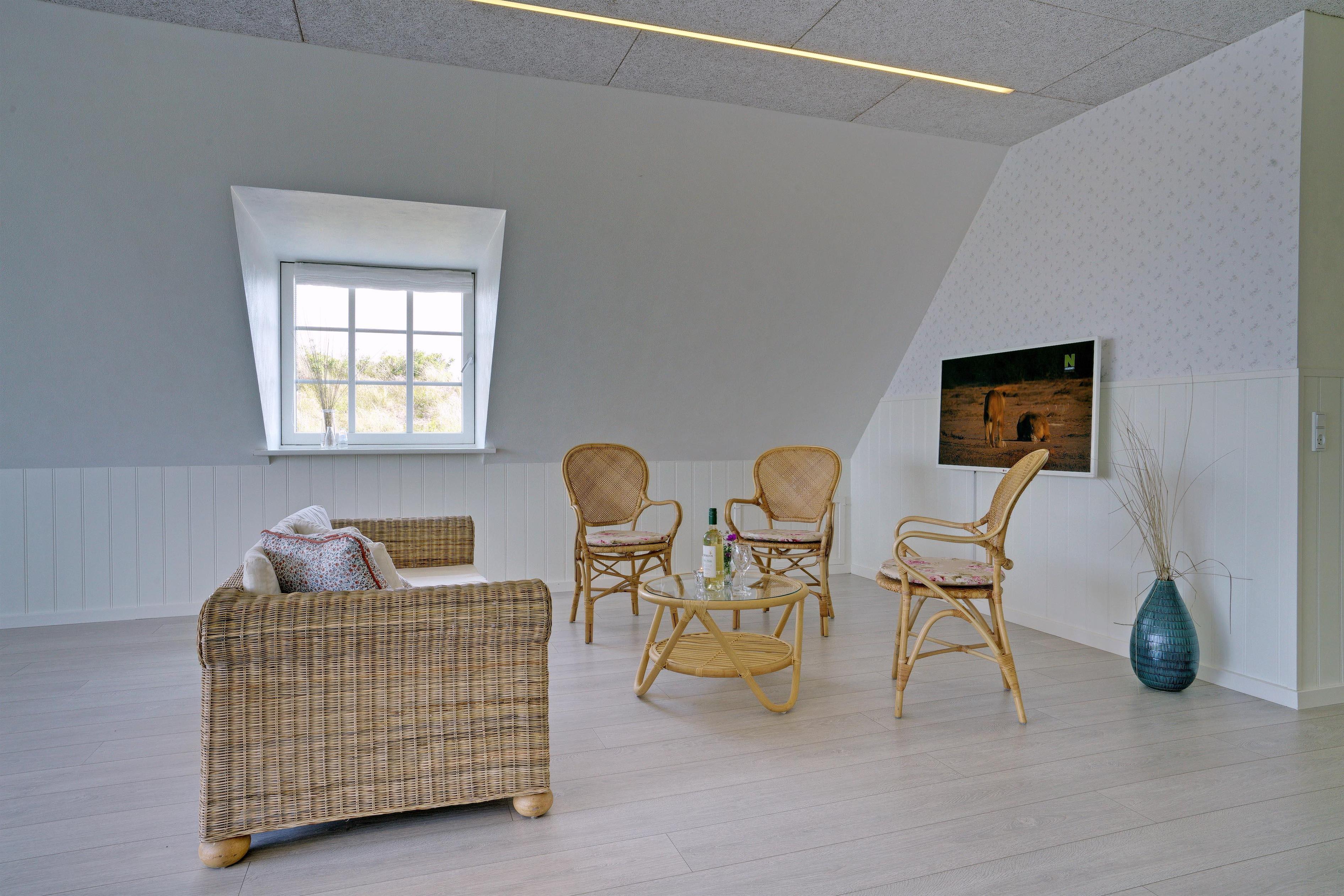 In einem angrenzenden Nebenhaus bieten wir Ihnen die Möglichkeit 5 weitere Doppelzimmer zu mieten, alle mit eigenem Bad, Toilette und kleiner Teeküche, und noch einem angrenzenden Nebenhaus mit 3 Zimmer für 8+2 Personen, sodass insgesamt 50 Personen auf Klitgården übernachten können.