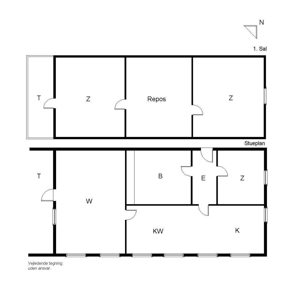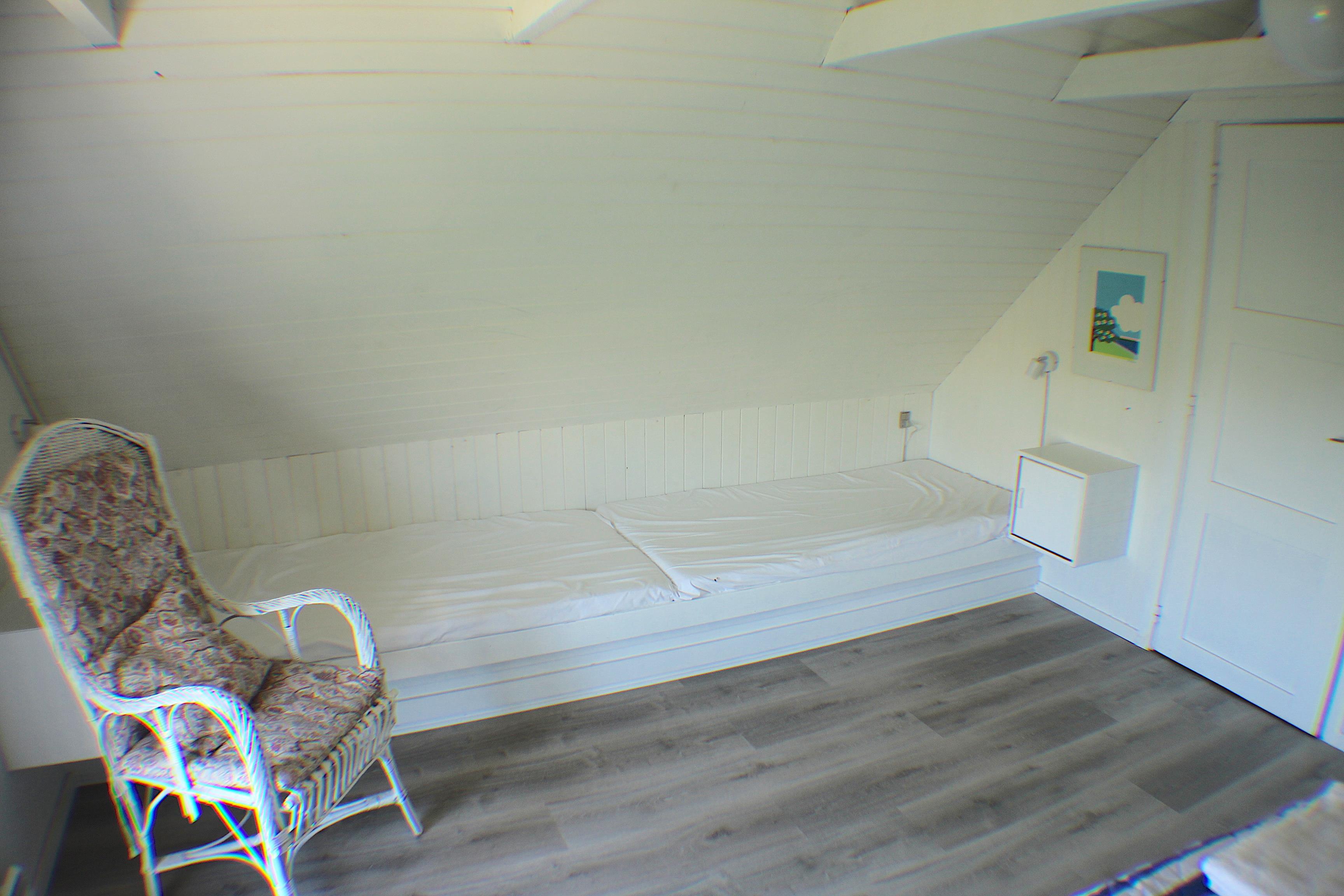 3 zimmer, 2 1 Stock mit Doppelbetten udnd 2 Einzelnbetten sowie ein Zimmer unten mit Einzelbett - das Haus wird für 7 Personen vermietet.