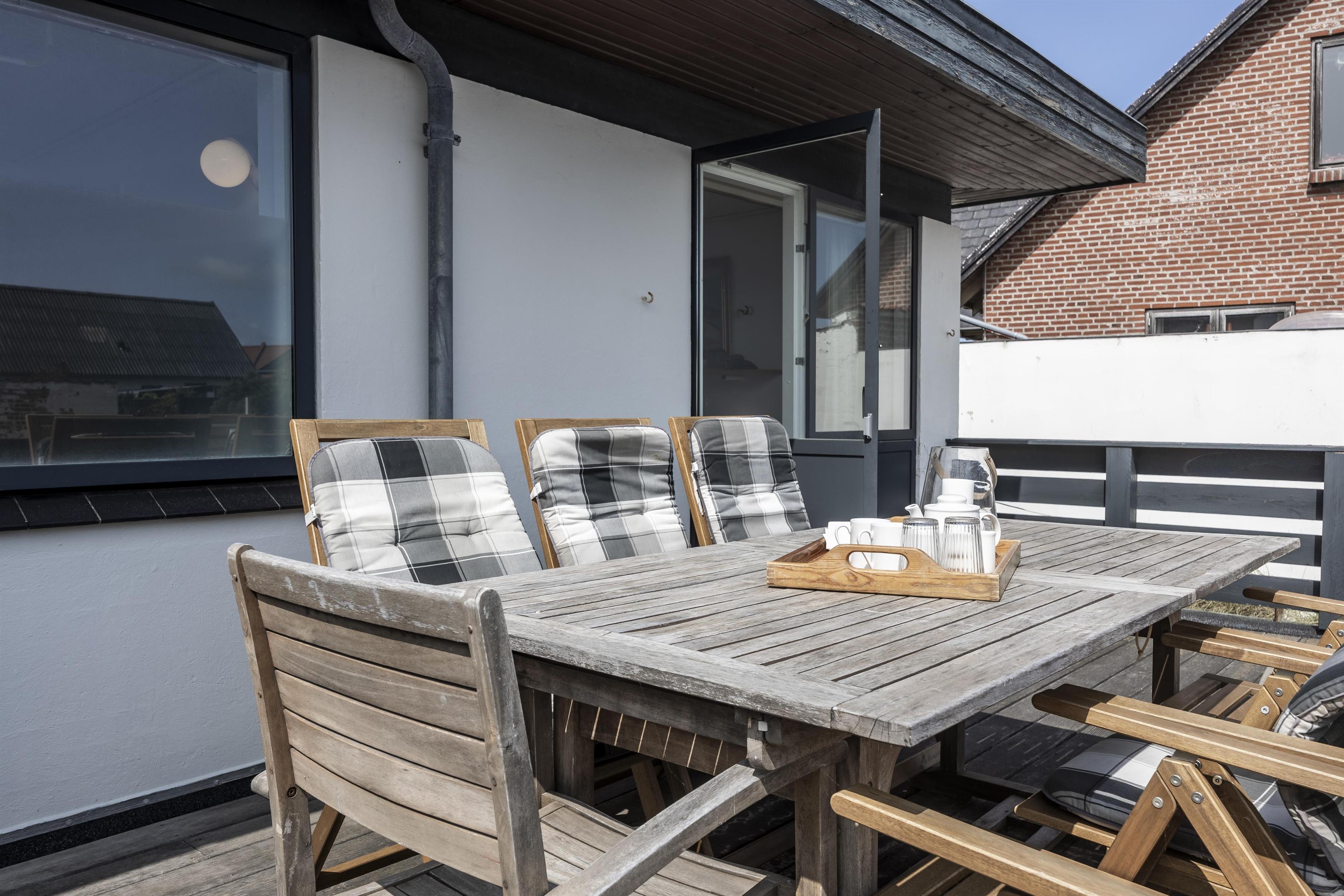 Vom oberen Schlafzimmer haben Sie direkten Zugang zu einer südostgerichteten Terrasse, die über eine Treppe in einen kleiner, eingezäunter Garten führt. Hier können Sie sonnige Tage und lange Sommerabende mit Grill und Blick auf die Nordsee genießen. Sowohl vom Haus als auch von der Terrasse aus haben Sie Meerblick und können den Sonnenuntergang beobachten, der den Himmel über den Dünen in traumhafte Farben taucht – ein unvergessliches Küstenerlebnis.