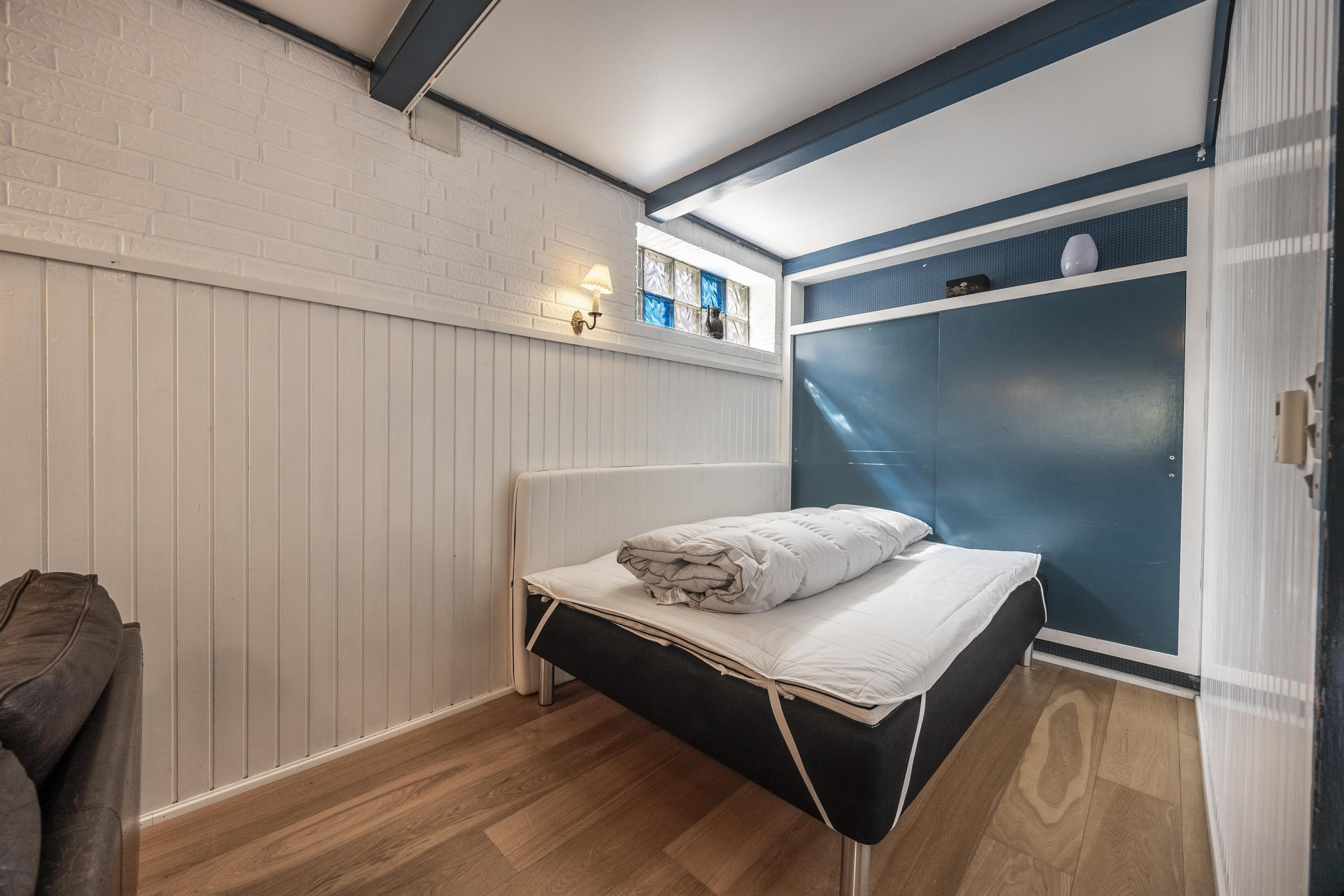 Eine Treppe führt ins Obergeschoss, wo zwei helle Schlafzimmer und ein Badezimmer mit Badewanne auf Sie warten. Im Untergeschoss befinden sich ein weiteres Schlafzimmer, ein Hauswirtschaftsraum sowie ein zusätzlicher Aufenthaltsraum mit Sofas und einer gemütlichen Nische mit Doppelbett – perfekt als kleine private Abteilung.