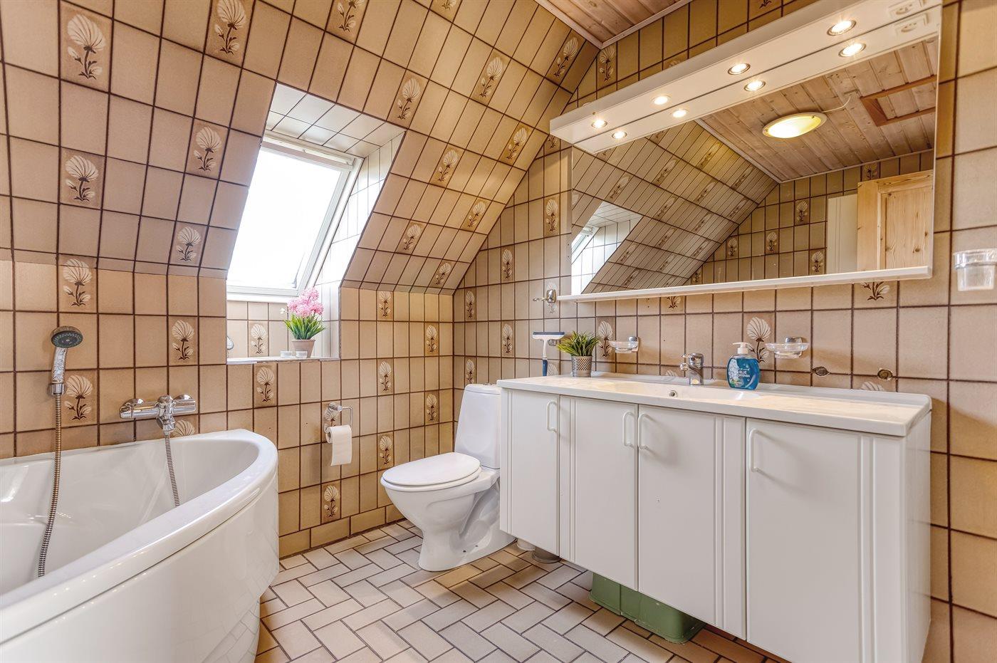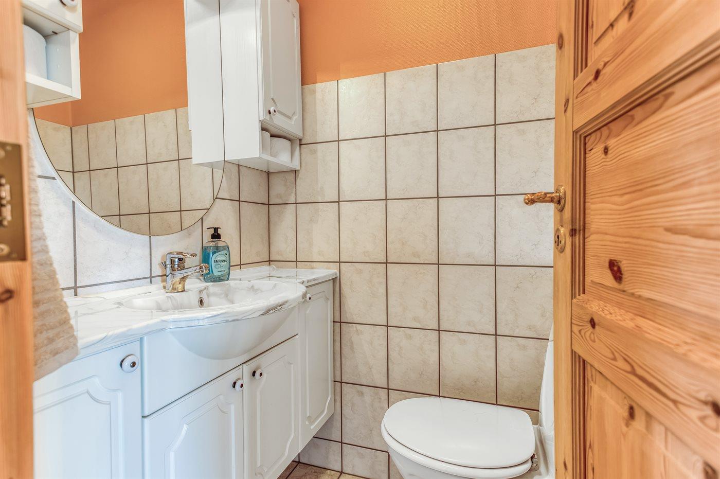 Es gibt 1 Badezimmer mit Duschnische und 2 Toiletten, davon 1 Gästetoilette. Fußbodenheizung in 1 Badezimmer. Fußbodenheizung in der Gästetoilette.