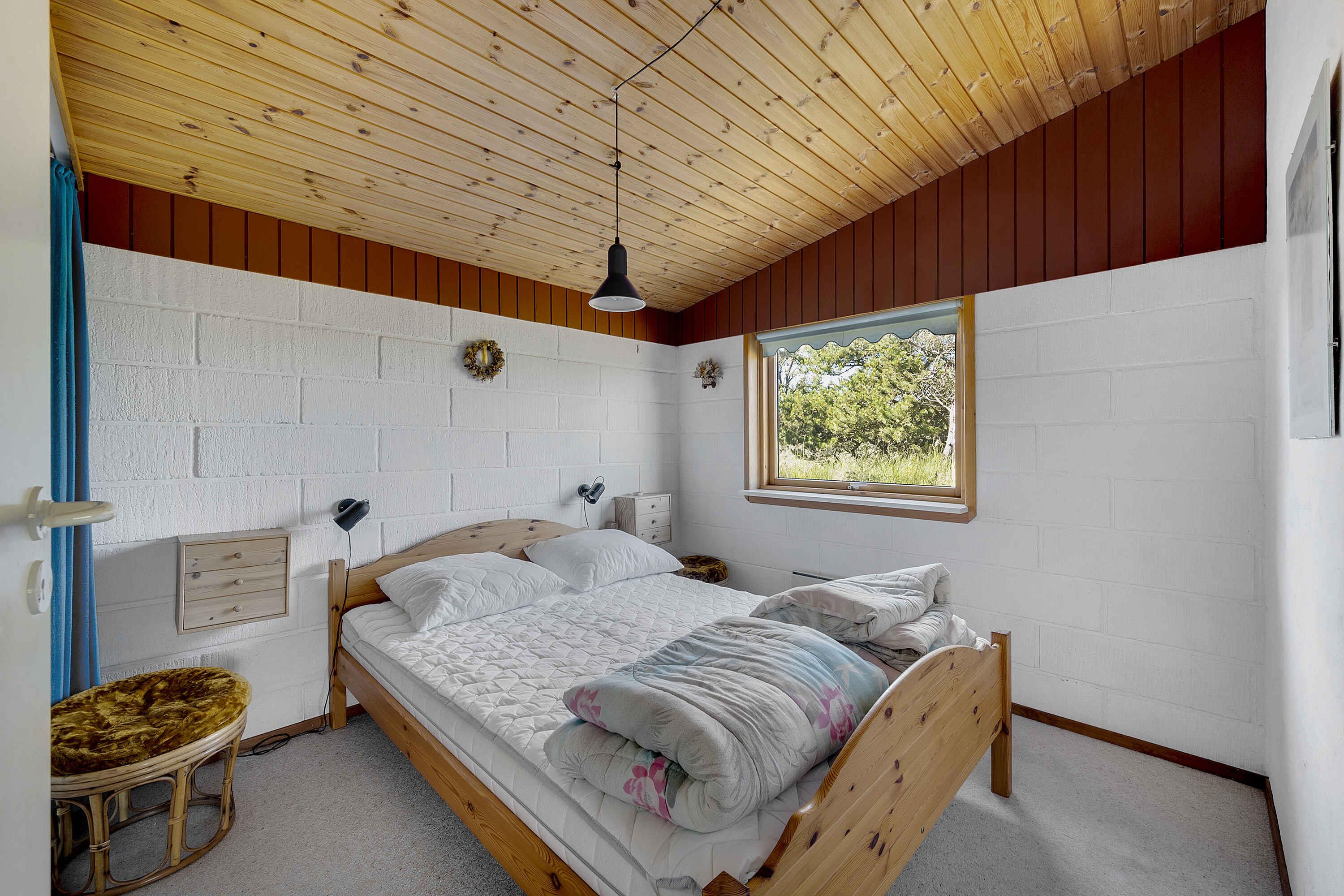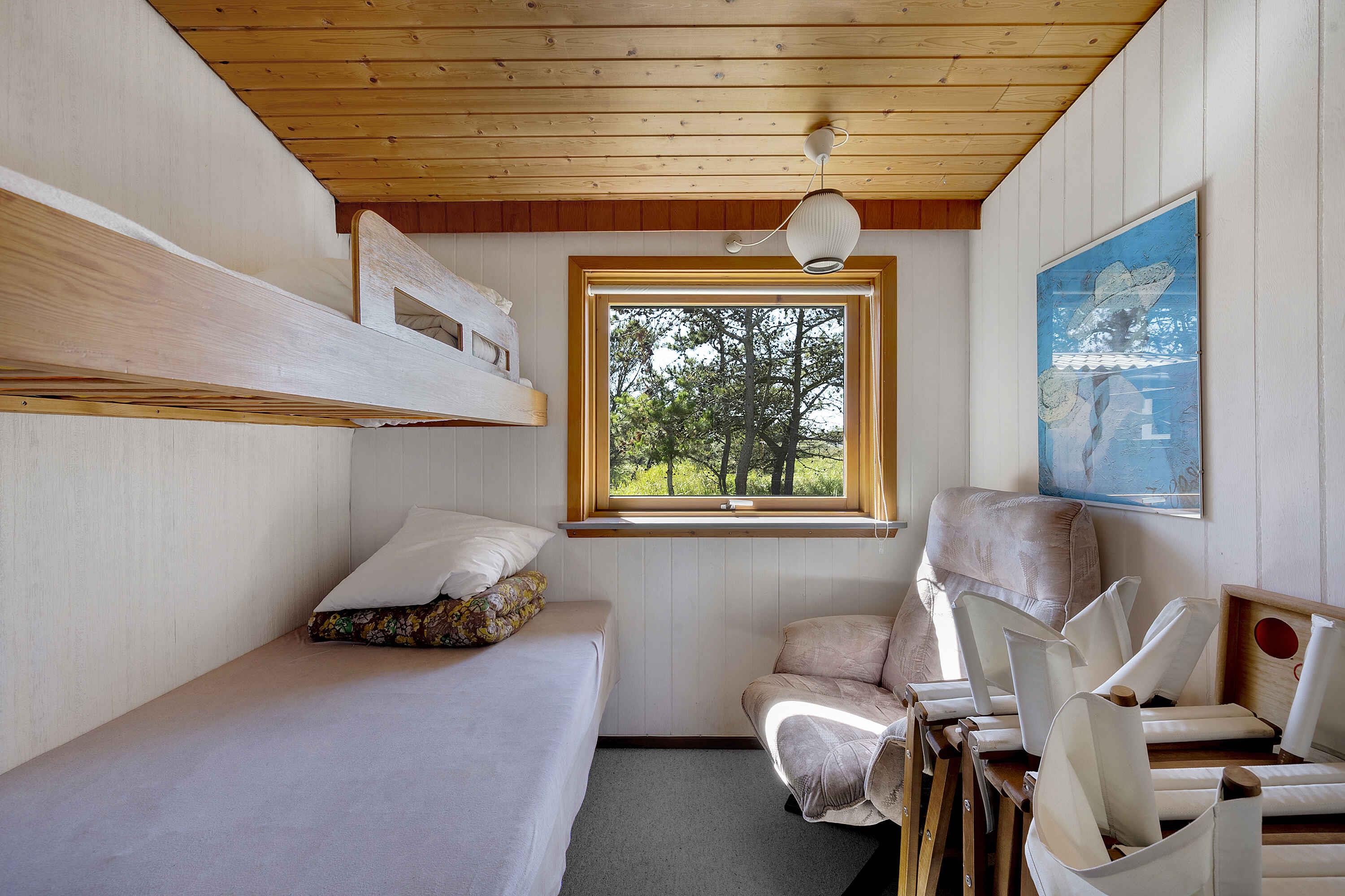 Am Kjul Strand in der Nähe von Hirtshals gelegen, präsentiert sich dieses Ferienhaus im Herzen einer malerischen Oase, nur einen Steinwurf von einem atemberaubenden Sandstrand entfernt. Die Innenharmonie wird durch ein gemütliches Schlafzimmer mit Doppelbett und zwei Schlafzimmer geprägt, in denen jedes einzelne Etagenbett Sie in ein Traumland wiegt. Und vergessen wir nicht das geräumige Doppelschlafsofa im Wohnzimmer, das zusätzlichen Platz für bis zu acht Abenteuerlustige bietet. Ein schöner Toilettenbereich mit Dusche sorgt für Komfort und Bequemlichkeit, während ein Hauswirtschafts-/Waschraum mit einer zusätzlichen Duschkabine für eine mühelose Rückkehr vom Strand sorgt. Genießen Sie Ihr Frühstück in der integrierten Küche und im Wohnzimmer, wo die Sonnenstrahlen hereinströmen und Sie direkt auf eine Südterrasse führen – der ideale Ort zum Aufwachen oder Entspannen nach einem Tag voller Sonne und Wellen. Eine wahre Wohlfühloase liegt direkt vor Ihrer Haustür. Im Umkreis von 50 Metern warten ein charmanter Kiosk und eine Eisdiele darauf, Ihren Gaumen zu verwöhnen. In den Sommermonaten können Sie auf dem nur 800 Meter entfernten Campingplatz einkaufen. Alternativ können Sie eine kurze Fahrt nach Hirtshals unternehmen, einer idyllischen Hafenstadt in nur 5 km Entfernung, wo zahlreiche Einkaufsmöglichkeiten für jeden Bedarf und Wunsch zur Verfügung stehen. Genießen Sie sonnige Tage am Strand, erkunden Sie die verborgene Schönheit der Gegend oder unternehmen Sie eine Entdeckungsreise nach Hirtshals, wo kulturelle Erlebnisse und spannende Aktivitäten auf Sie warten. Wählen Sie Ihr Abenteuer und lassen Sie dieses Ferienhaus den Rahmen für Ihren idealen Urlaub bilden.