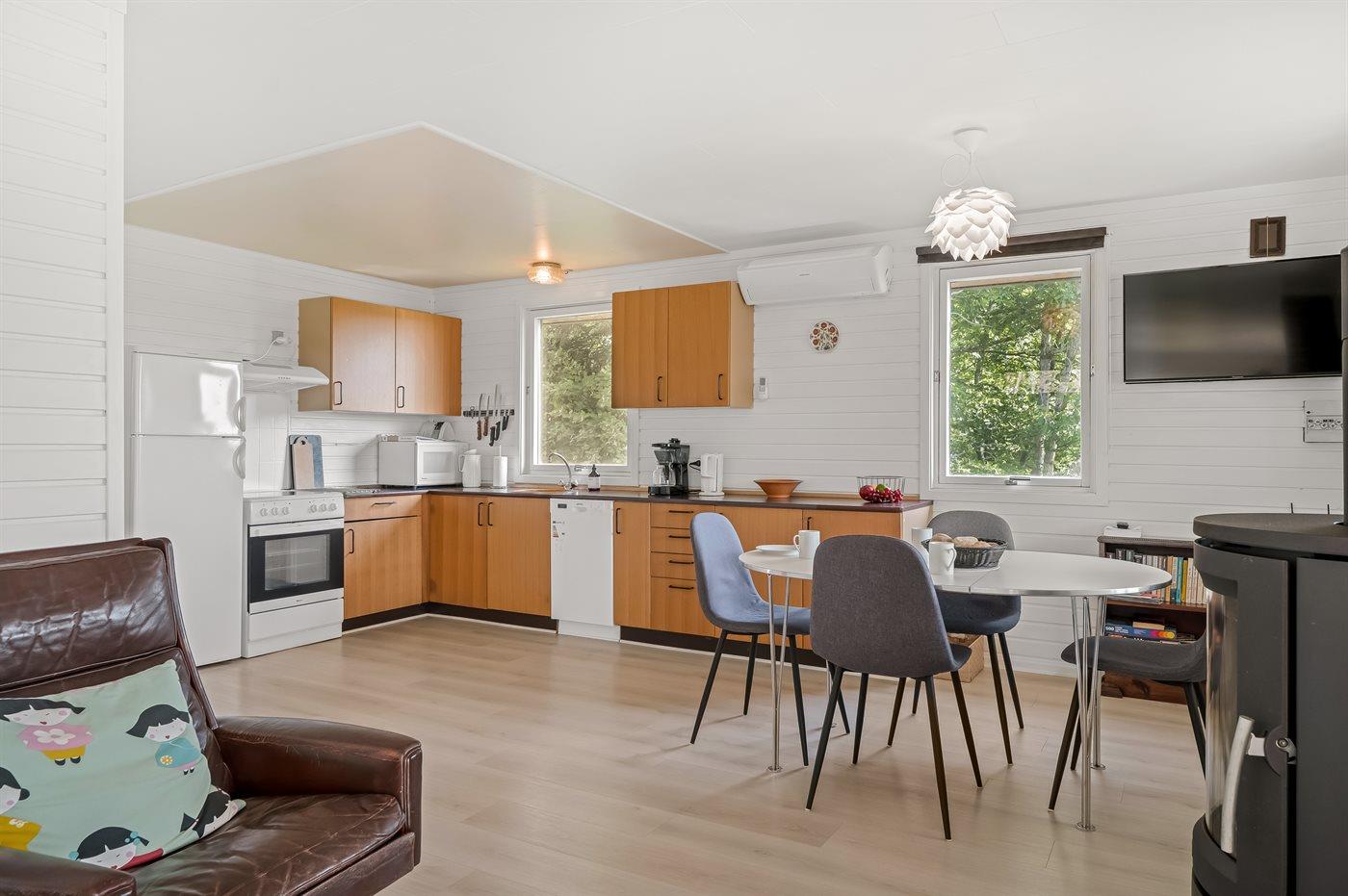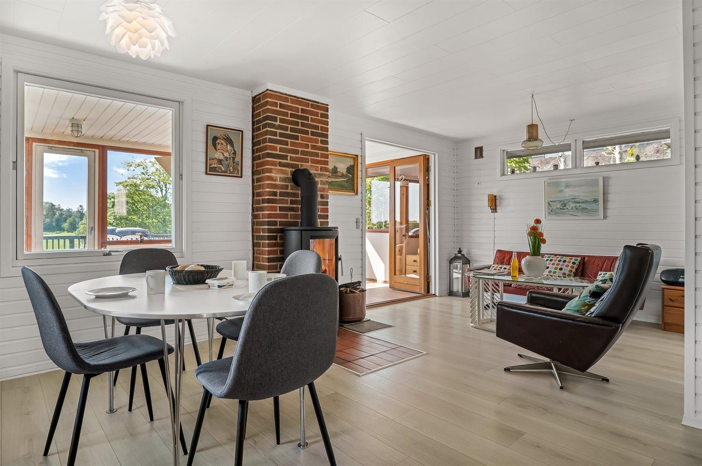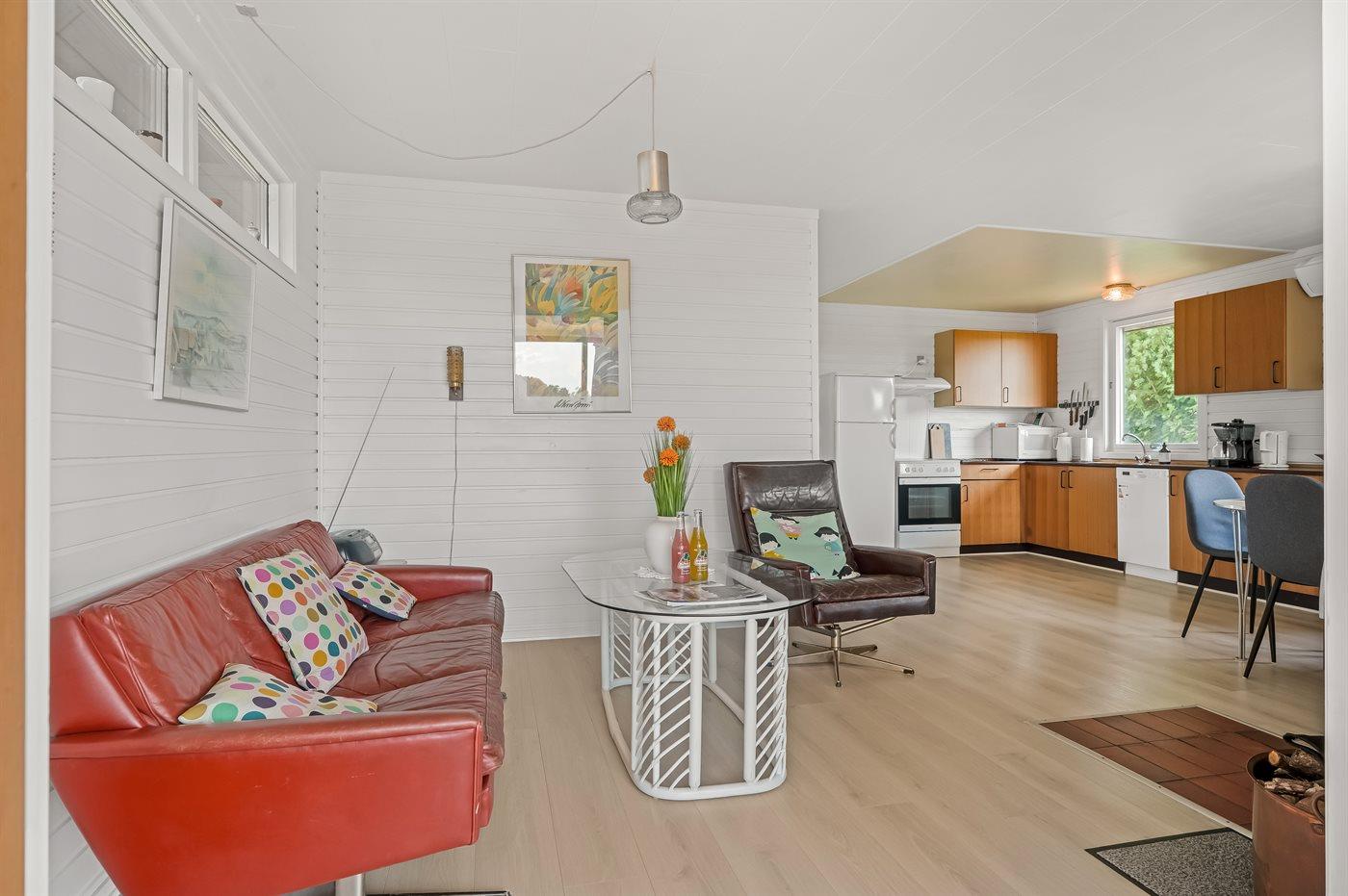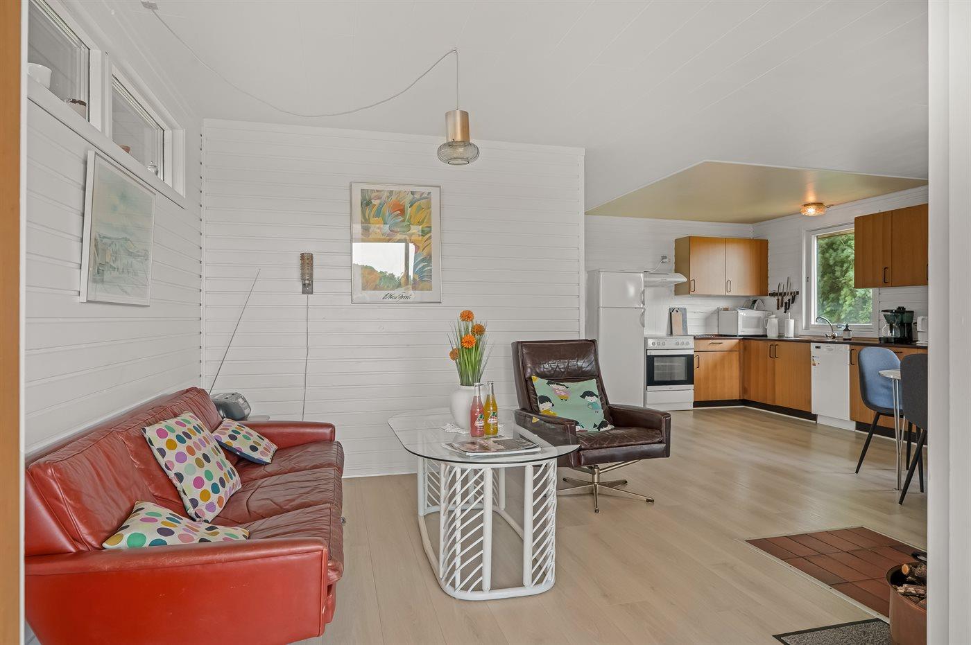 Auf einem ungestört gelegenen, leicht hügeligen Waldgrundstück, nur 200 m vom Fjord entfernt, finden Sie dieses Ferienhaus. Vom Grundstück sowie vom Balkon haben Sie Aussicht über die Landschaft und den Fjord. Übrigens: Eine steile Auffahrt und Treppen führen zum Haus hinauf.