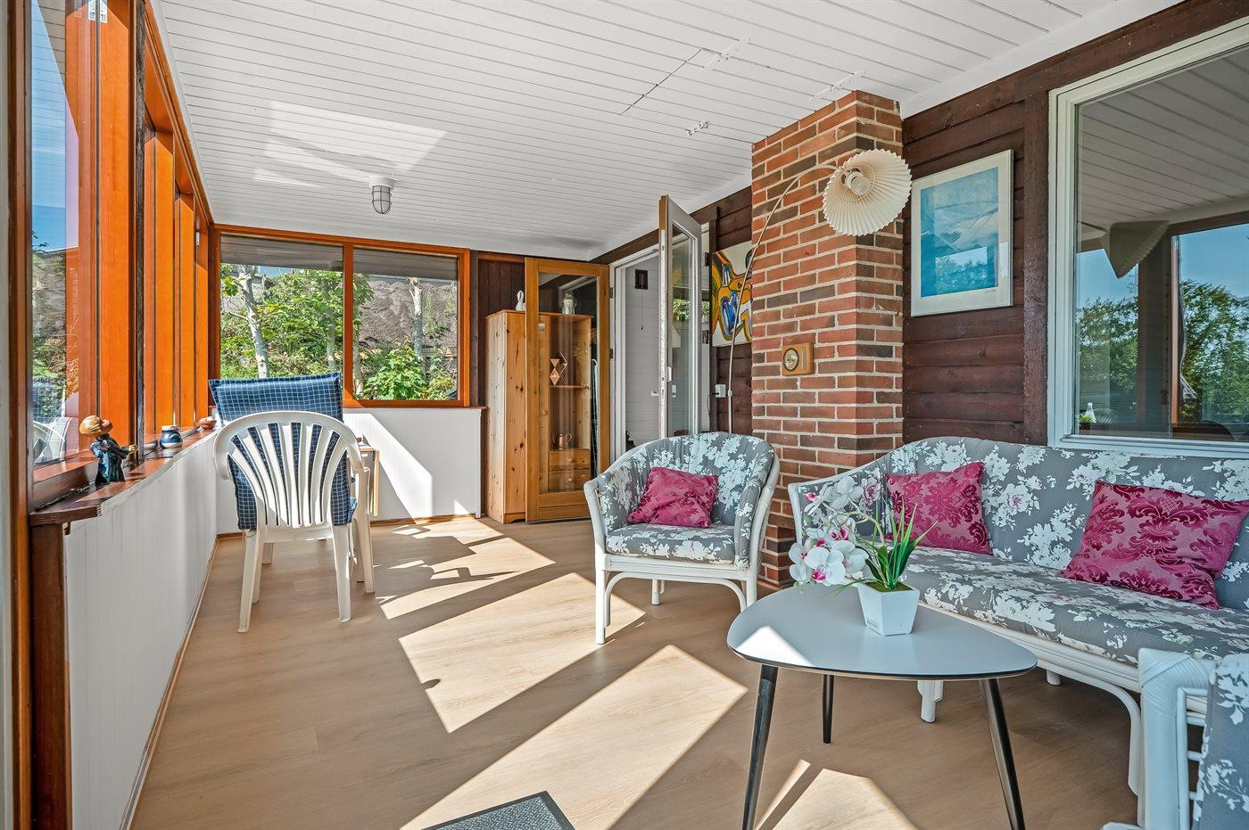 Die Ferienunterkunft liegt auf einem 1800 m² großen Gründstück, das in einem Wald/Plantage liegt. Die Entfernung zum Fjord beträgt 300 m. Die nächste Einkaufsmöglichkeit liegt 3000 m entfernt. Es steht ein 38 m² Terrassenareal zur Verfügung. Zutritt zu einem Wintergarten. Parkplatz auf dem Grundstück.