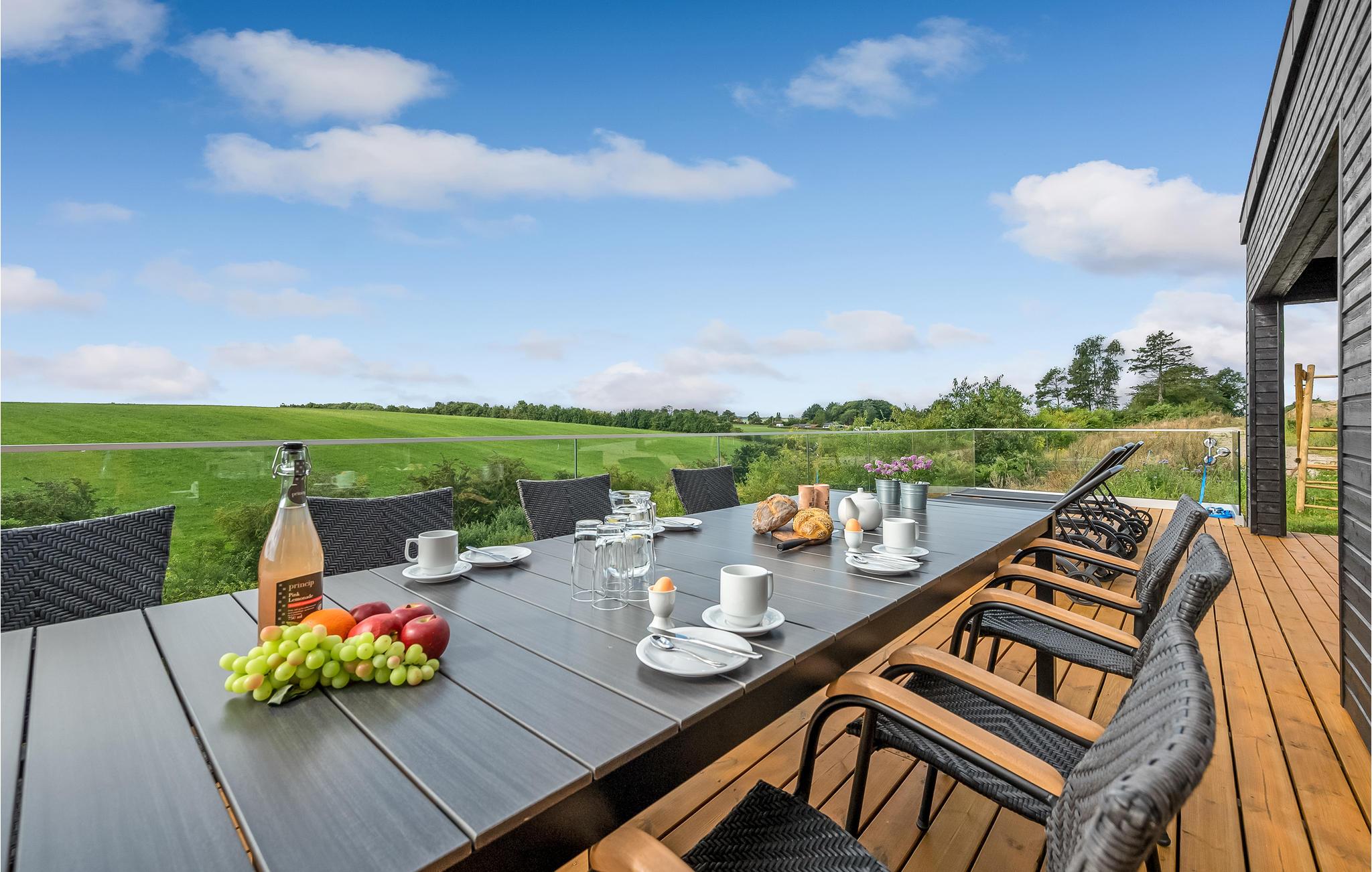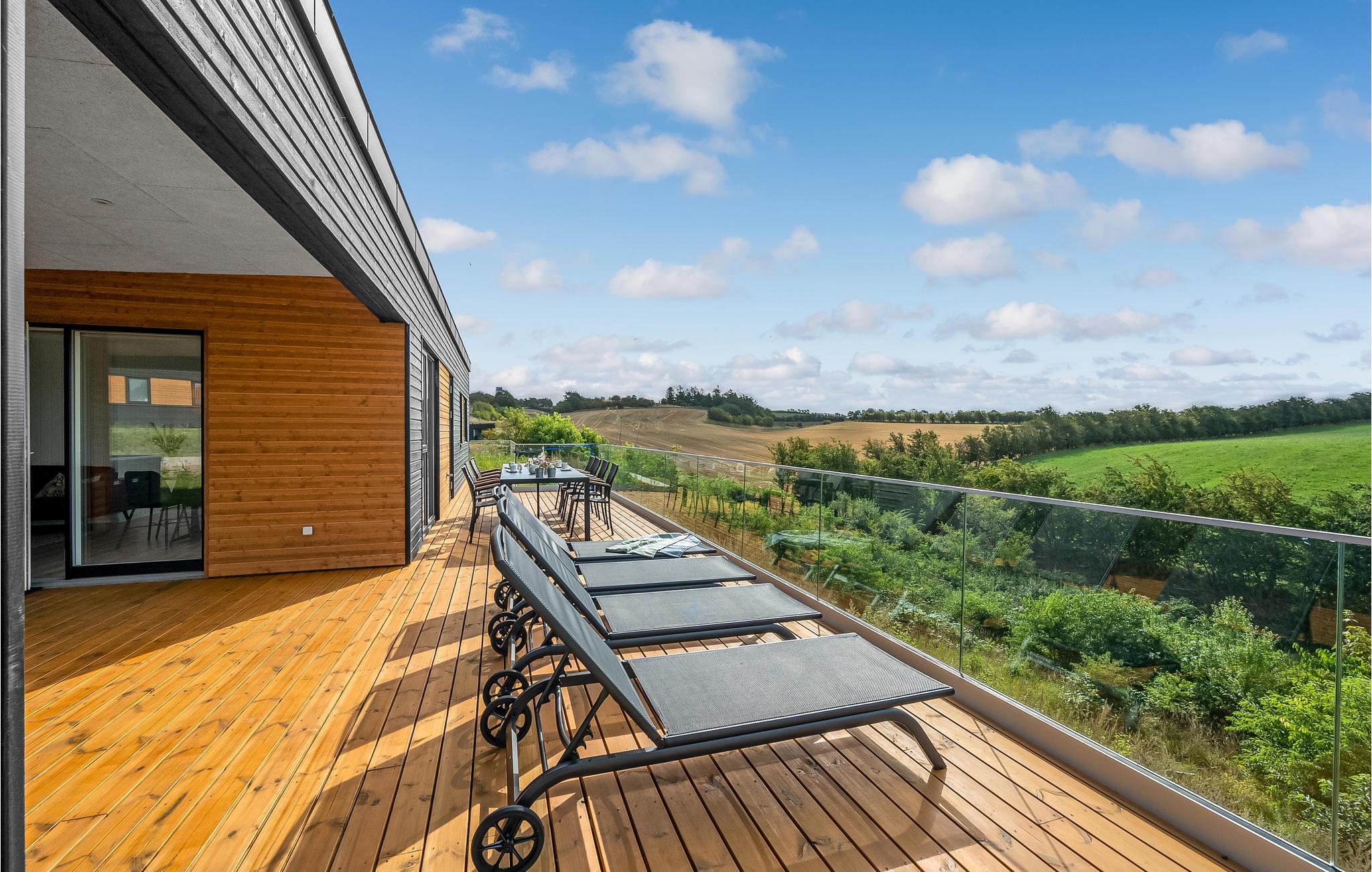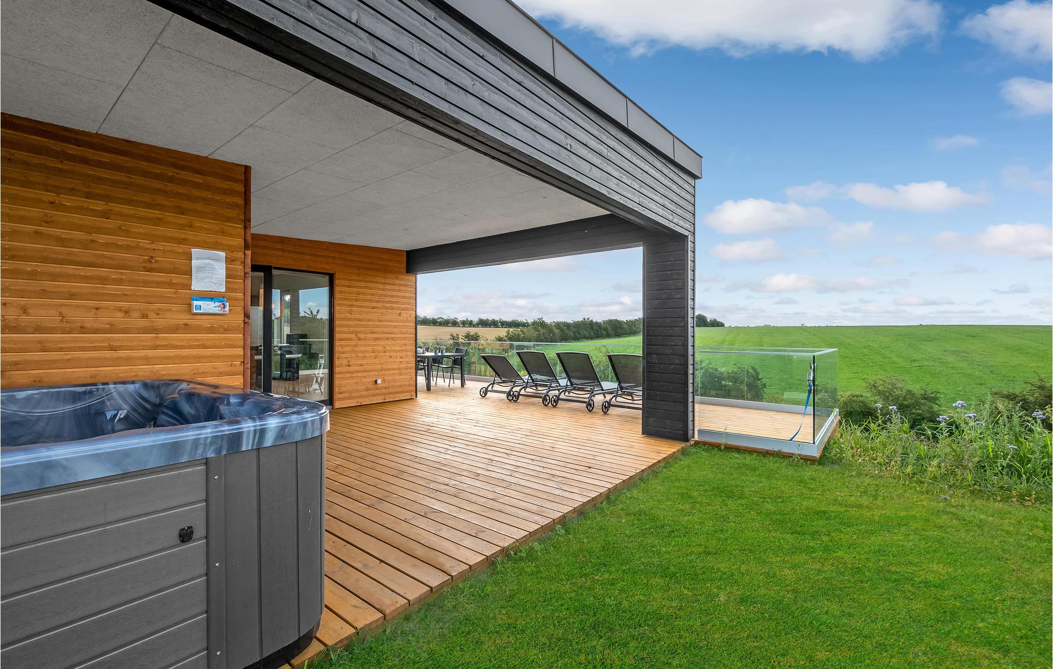 Genießen Sie Ihren Urlaub in diesem modernen Ferienhaus mit Whirlpool und herrlichem Landschaftsblick in Dänemark.