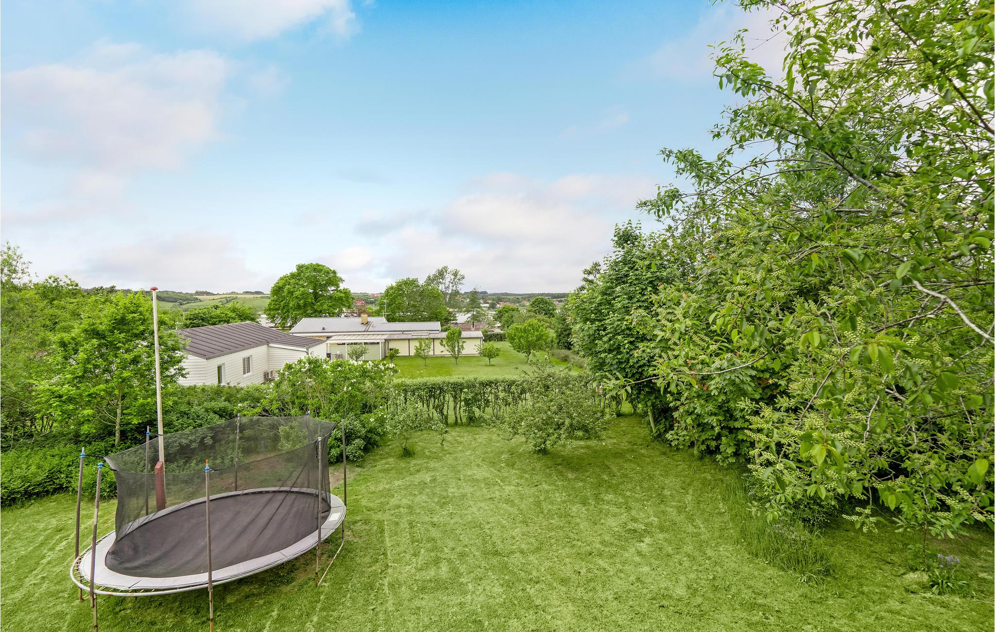 Gemütliches Ferienhaus mit Kamin, Terrasse und Fjordblick in Løgstrup, ideal für erholsame Tage in Dänemark.
