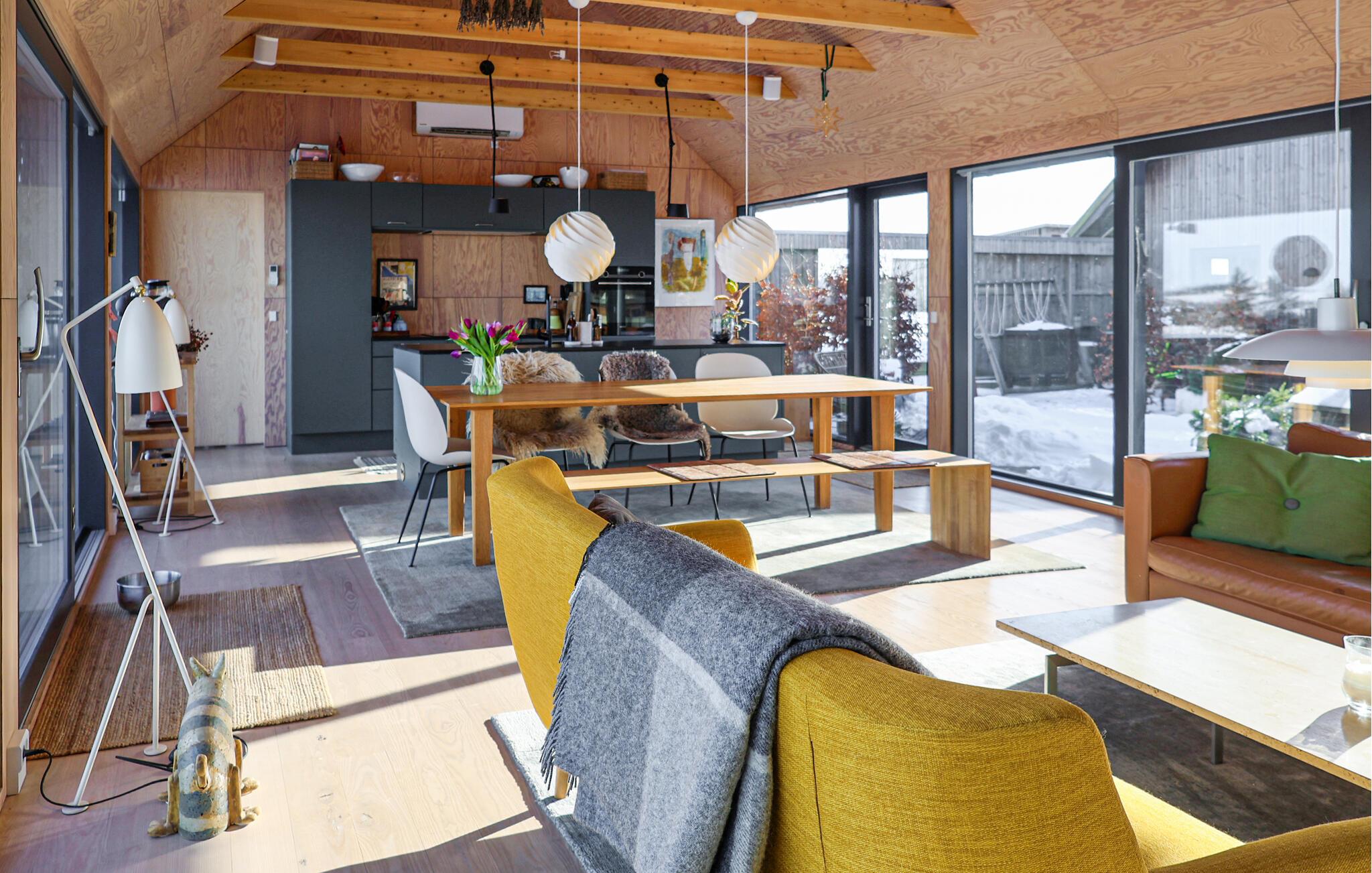Dieses Haus besticht durch seine moderne Atmosphäre mit viel Holz und großzügigen Fensterfronten, die den Blick ins Grüne freigeben. Plaudern Sie gemütlich bei einer Tasse Kaffee im lichtdurchfluteten Wohnbereich und genießen Sie dabei die schöne Aussicht. Verbringen Sie entspannte Fernsehabende auf dem Sofa oder kochen Sie gemeinsam in der modernen Küche und lassen Sie den Tag in geselliger Runde ausklingen.