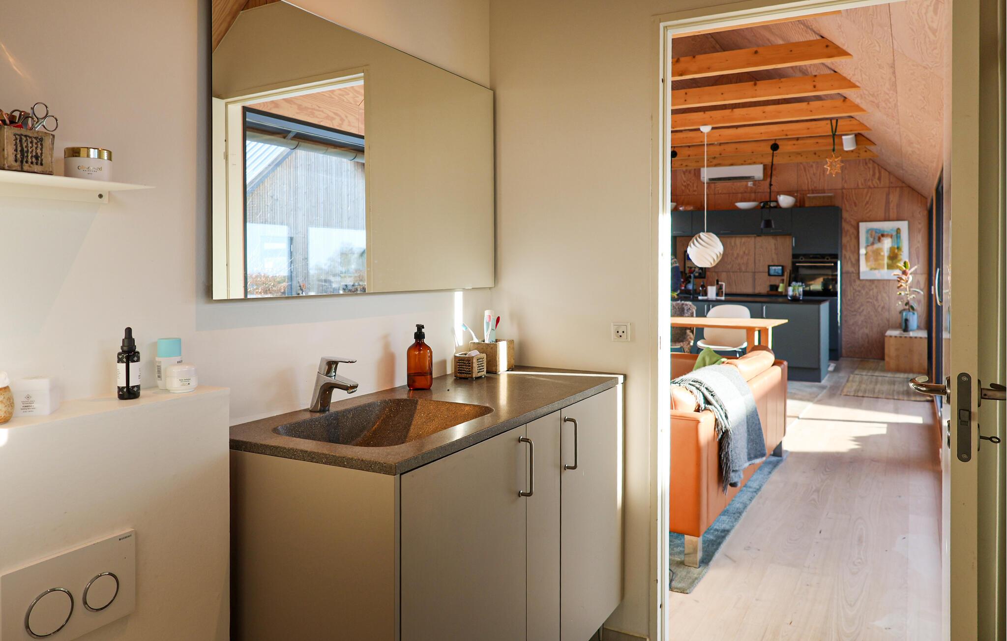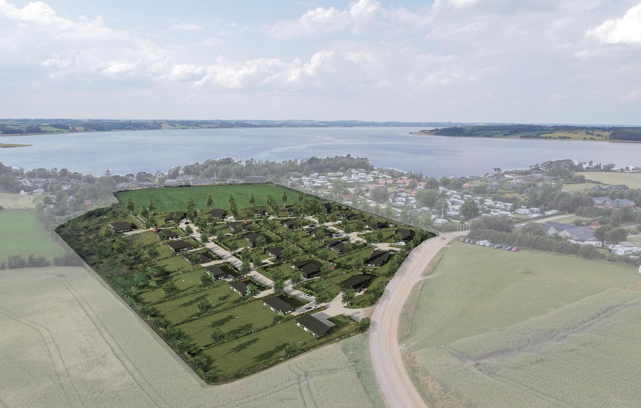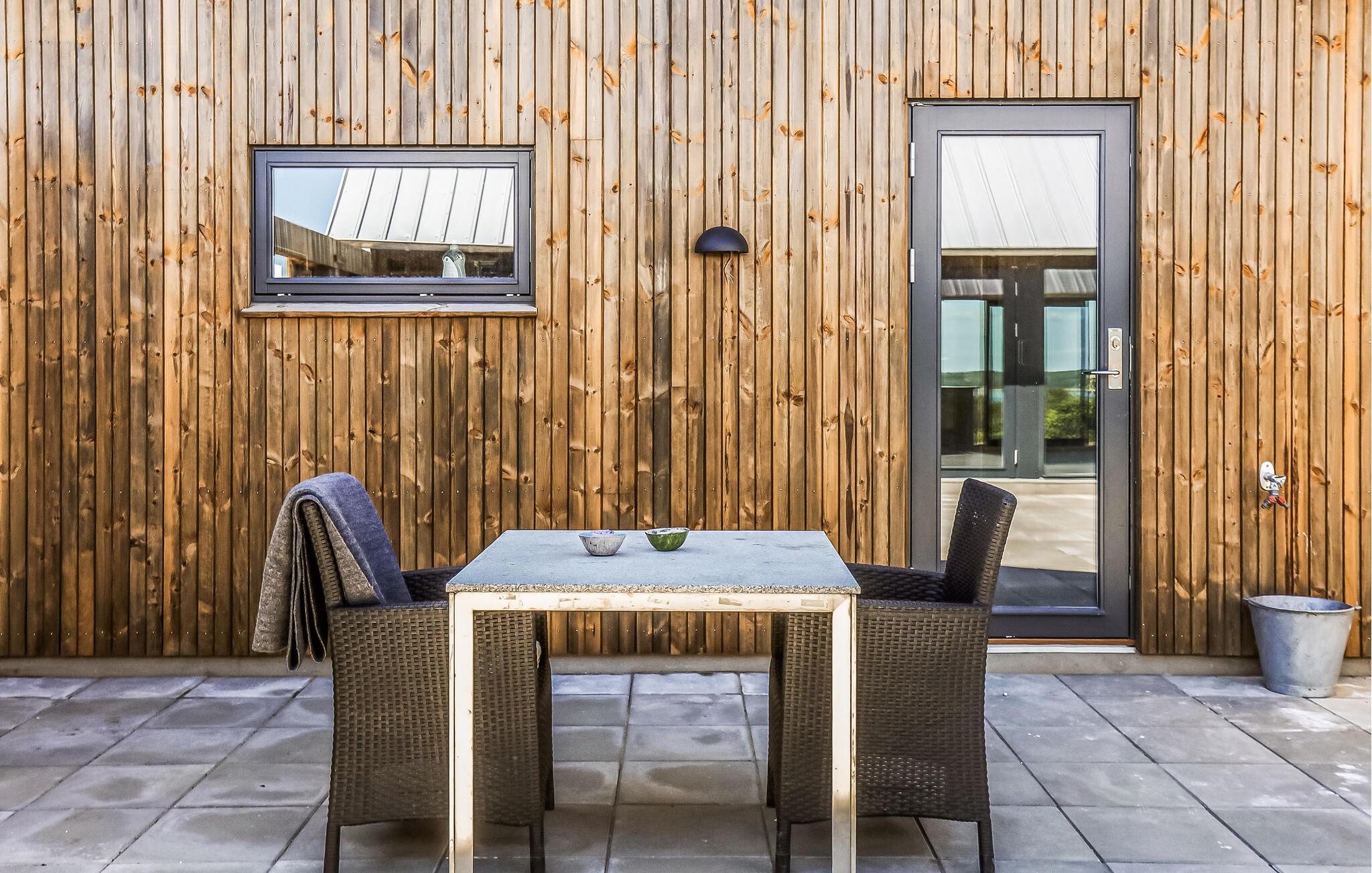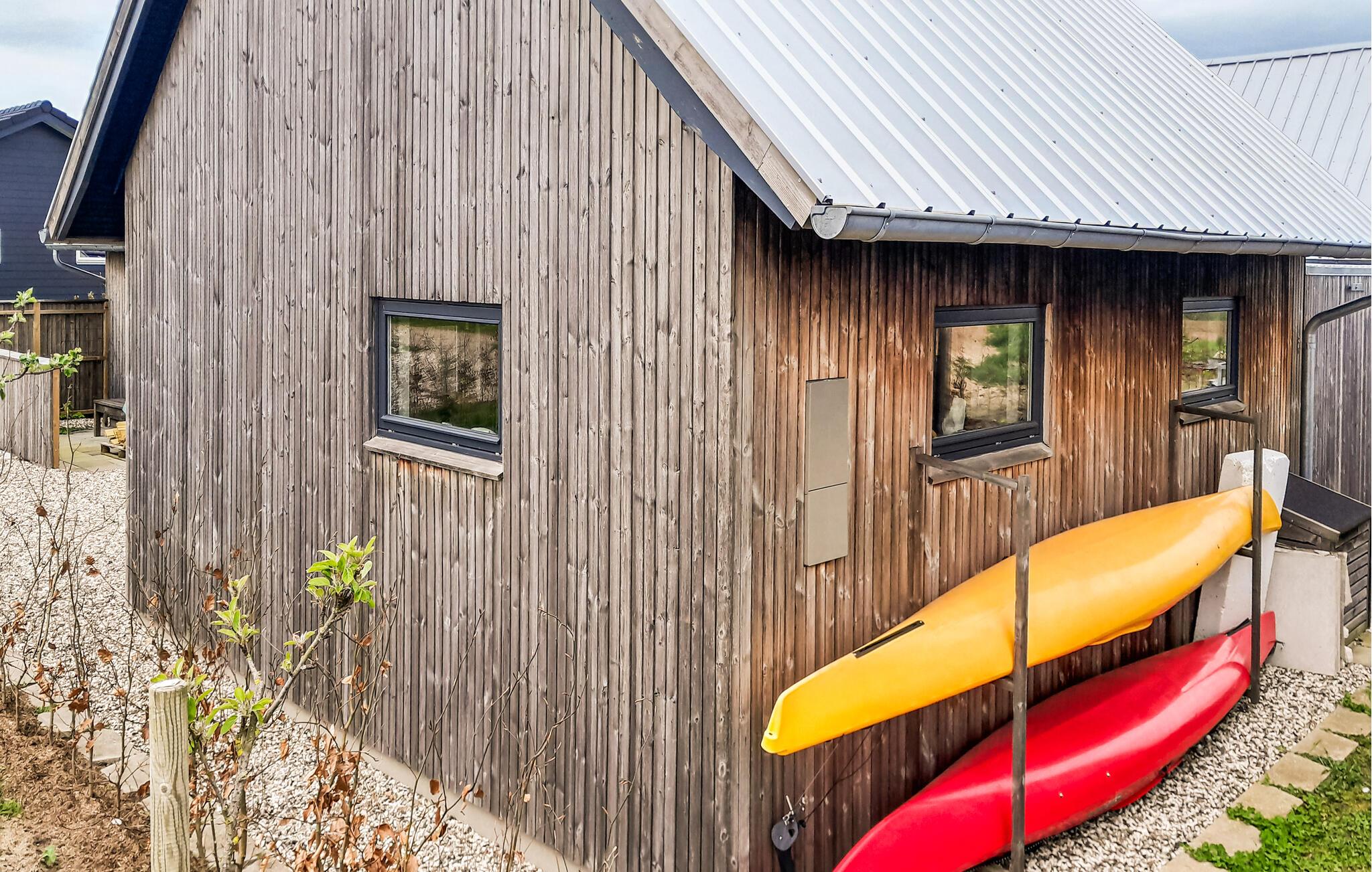 Modernes Ferienhaus mit Holzdesign nahe Hjarbæk Strand, ideal für erholsame Tage am Fjord.