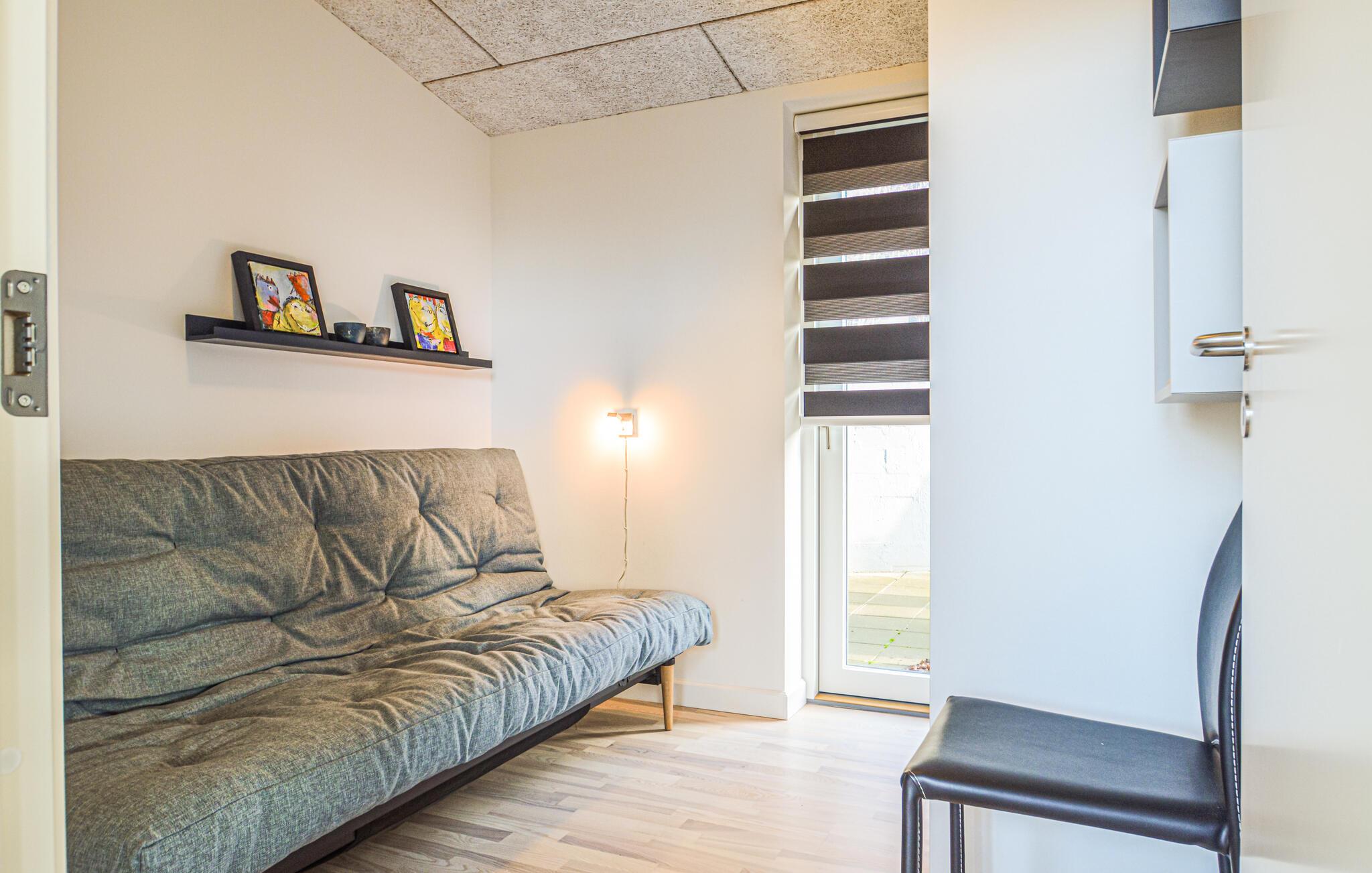 Dieses einladende Ferienhaus bezaubert durch seine fantastische Lage mit direktem Blick auf den Fjord. Große Fensterfronten lassen zudem viel warmes Tageslicht ins Innere, was einen harmonischen Übergang zur Natur schafft. Entspannen Sie sich auf dem stilvollen Sofa, plaudern Sie am Esstisch bei einem Glas Wein oder verbringen Sie einen lustigen Spieleabend im Kreise Ihrer Lieben.