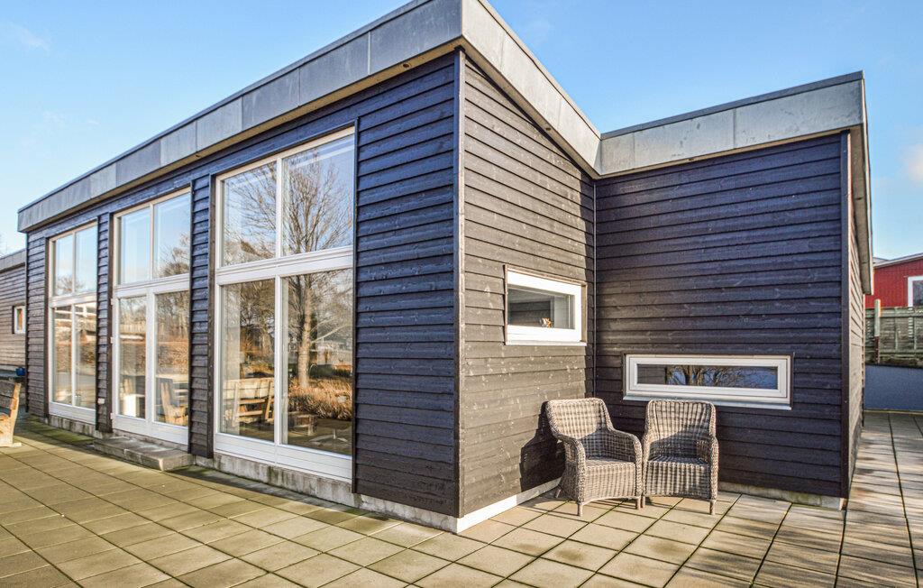 Genießen Sie ein modernes Ferienhaus mit Panoramablick auf den Fjord in Løgstrup, Dänemark, ideal für entspannte Urlaubstage.